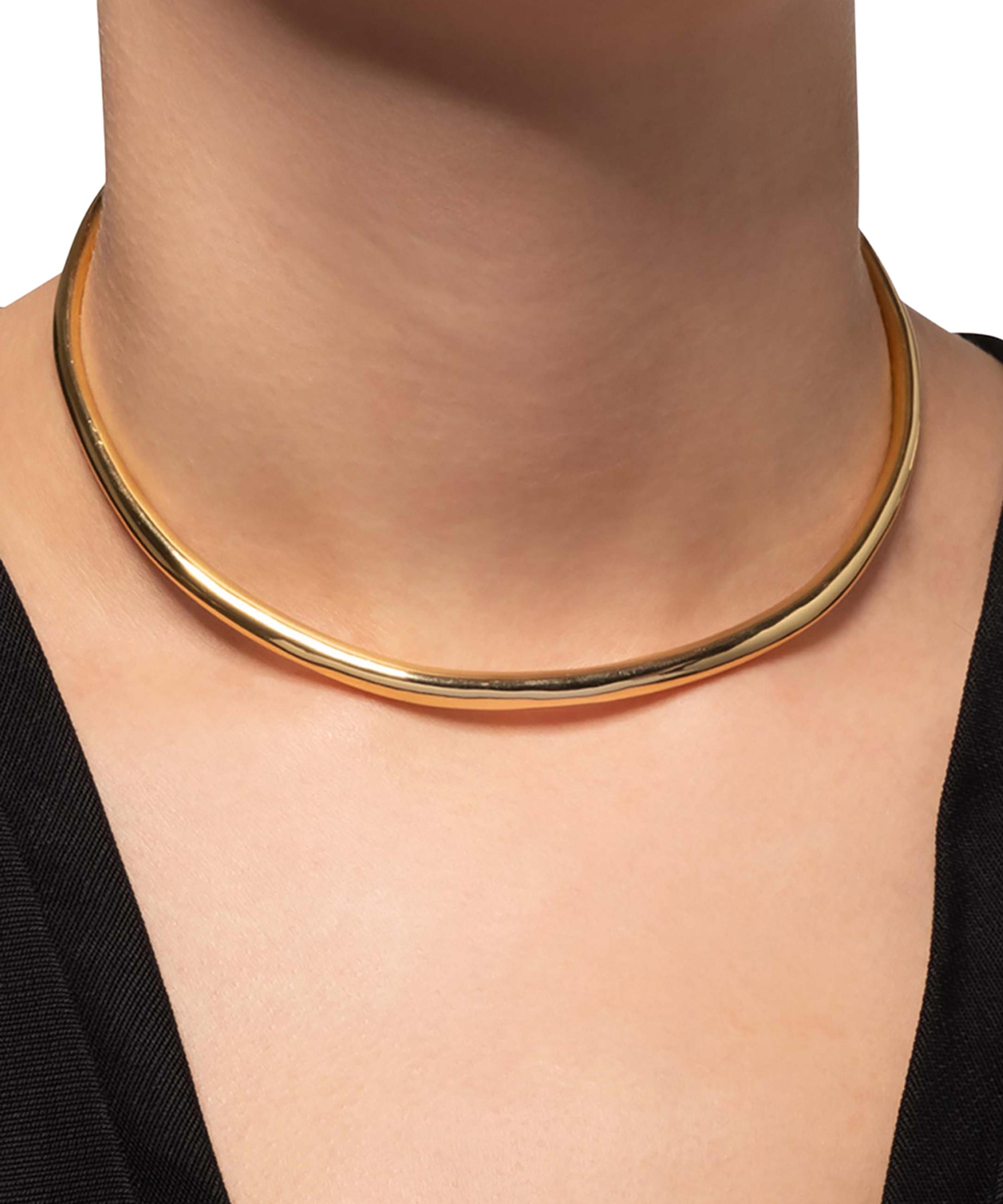 A highly contemporary piece, this thin collar necklace by Alexis Bittar will infuse your curation with the effortlessly edgy aesthetic that the brand is known for. Crafted from 14ct gold-plated brass, this necklace features a sleek and simple collar in a high-polished finish. Boasting a fresh alternative to classic chains, style it solo, team it with a chunky choker or a layered stack of thin links.