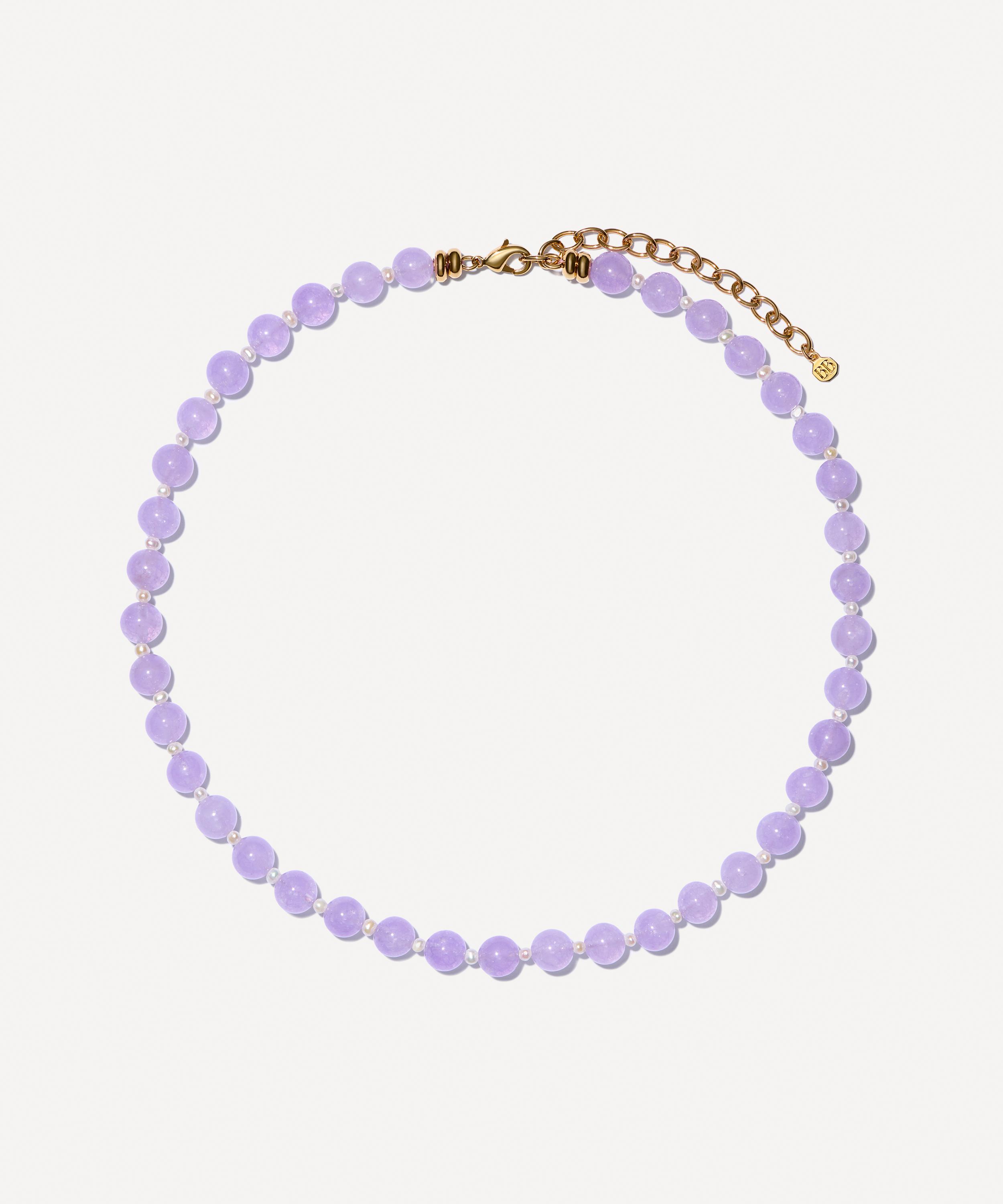 Add a playful pop of colour to your outfit and draw all eyes on you with this mood-boosting bead necklace from Bon Bon Jewellery Club. Handcrafted from brass plated in 14ct gold vermeil, it features a single thread knotted with lustrous freshwater pearls and jade beads – a gemstone believed to bring good luck, a symbol of purity, harmony, and balance. Style it as a solo piece, stack it with contrasting gold chains and pendant necklaces or layer it with other beaded designs from the brand for a unique take on dopamine dressing.