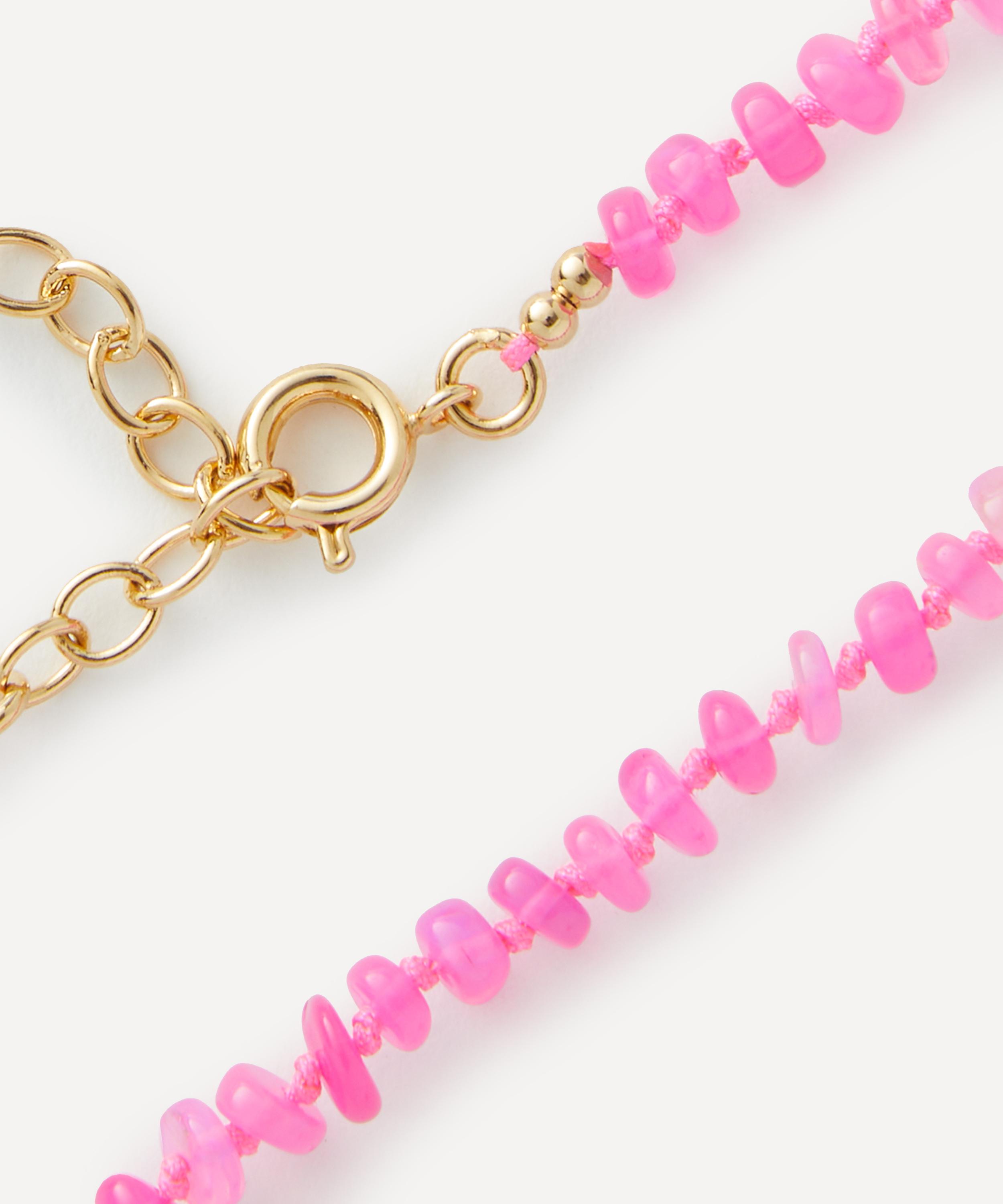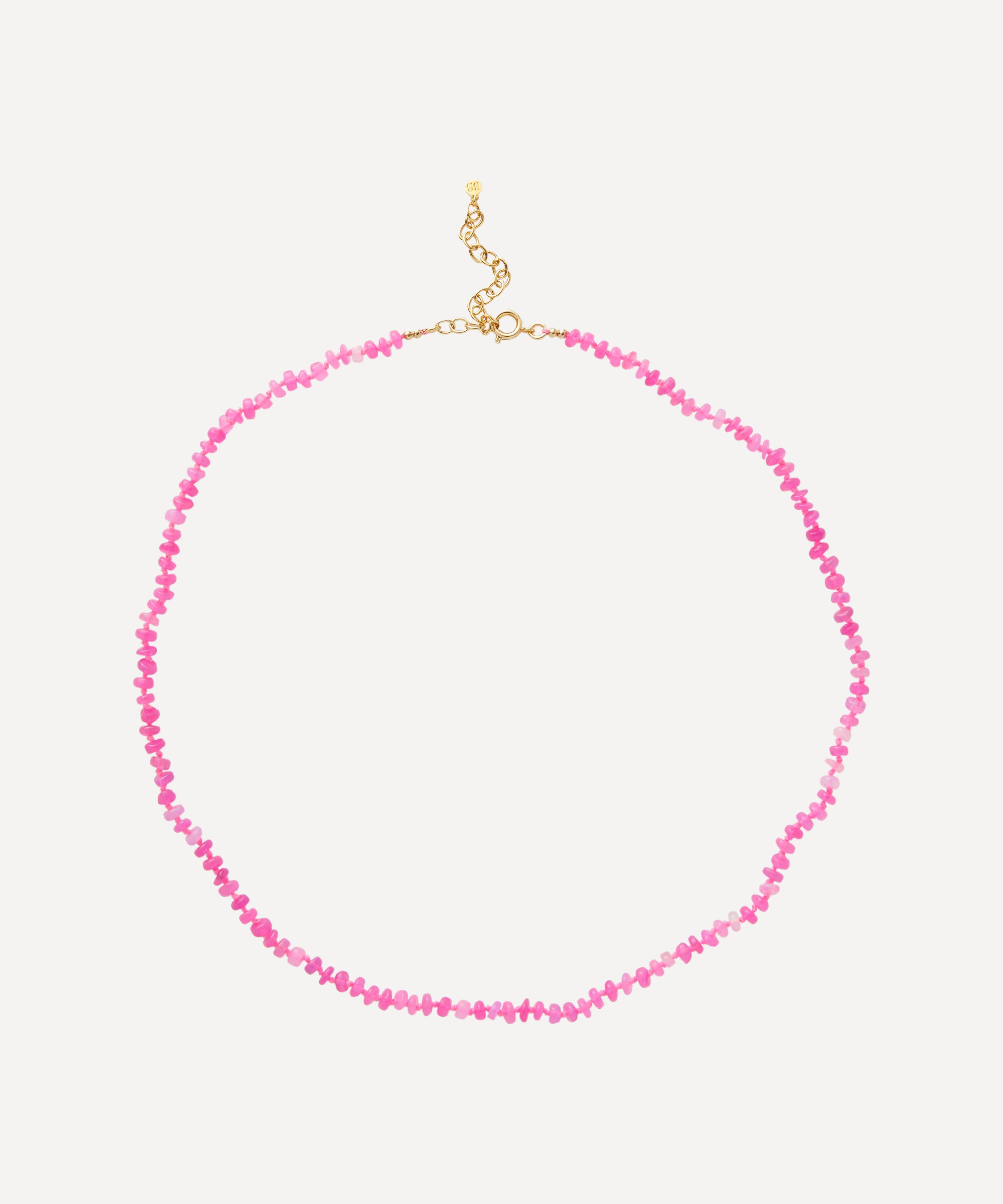 Draw all eyes on you and add a playful pop of colour to any outfit with this mood-boosting beaded necklace from Bon Bon Jewellery Club. Handcrafted from sterling silver plated in 14ct gold vermeil, it features a delectable neon pink string knotted with fire opal beads – a gemstone which amplifies vibrational energy and inspire hope, optimism and positivity. Style it as a solo piece, stack it with contrasting gold chains and pendant necklaces or layer it with other beaded designs from the brand for a take on dopamine dressing.