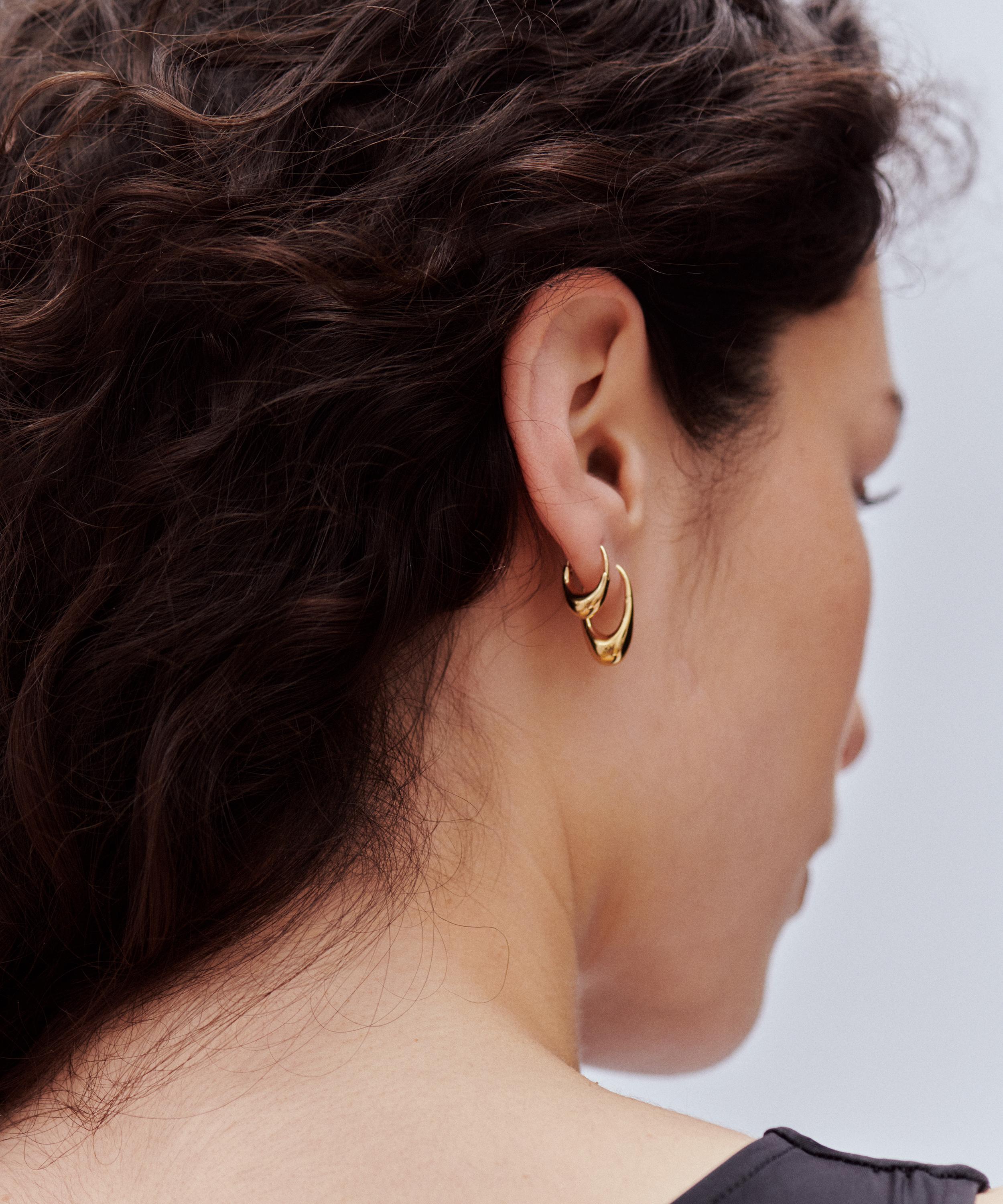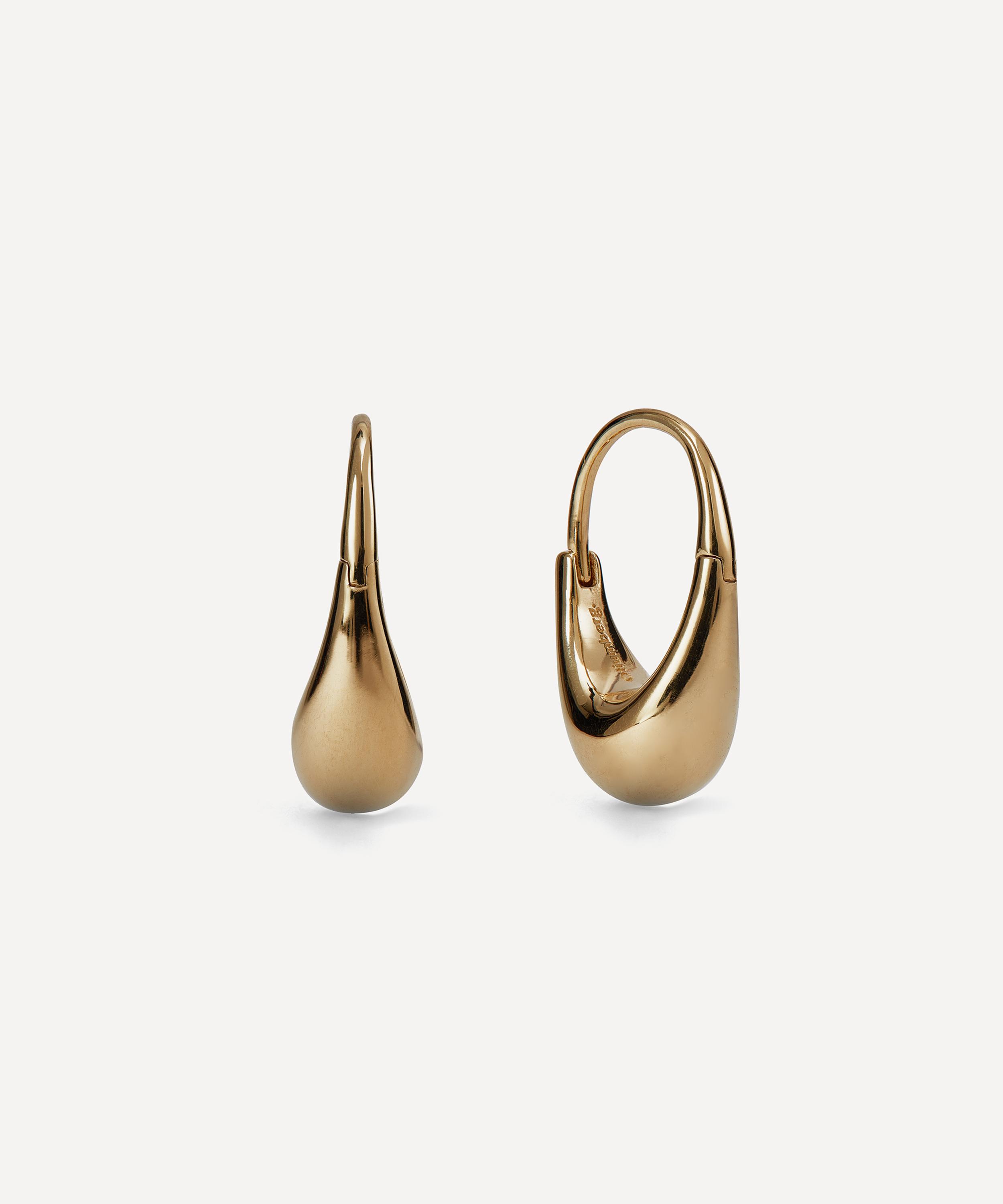 Otiumberg's Roscida Drop hoop earrings showcase an elegant design, characterised by their sculptural silhouette. Handcrafted from sterling silver plated in 14 carat gold vermeil, this versatile pair feature a high-polished finish, beautifully accentuating their fluid forms and sleek, curved lines - pair with smaller hoop earrings for a graduated ear curation.