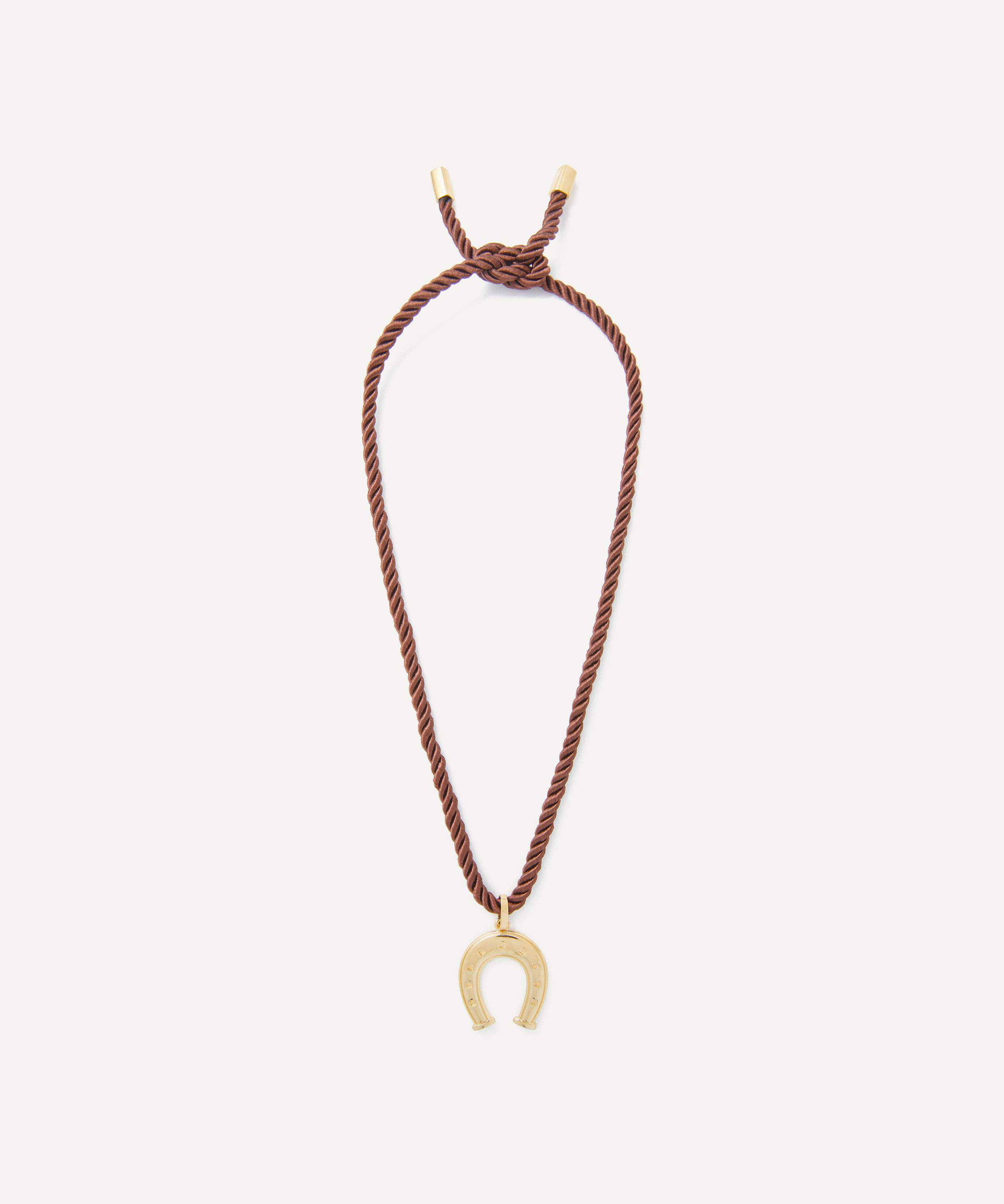 Add a statement finish to round off your outfit with the Wish Me Luck pendant necklace from Martha Calvo. Composed of twisted brown silk thread, it stands out with a 14ct gold-plated horseshoe pendant – a symbol of good luck and protection. Offering adjustable length, it can be worn short or long - style it as a solo piece, stack it with a selection of your favourite necklaces or partner it with beaded styles from the brand for a contrasting effect.