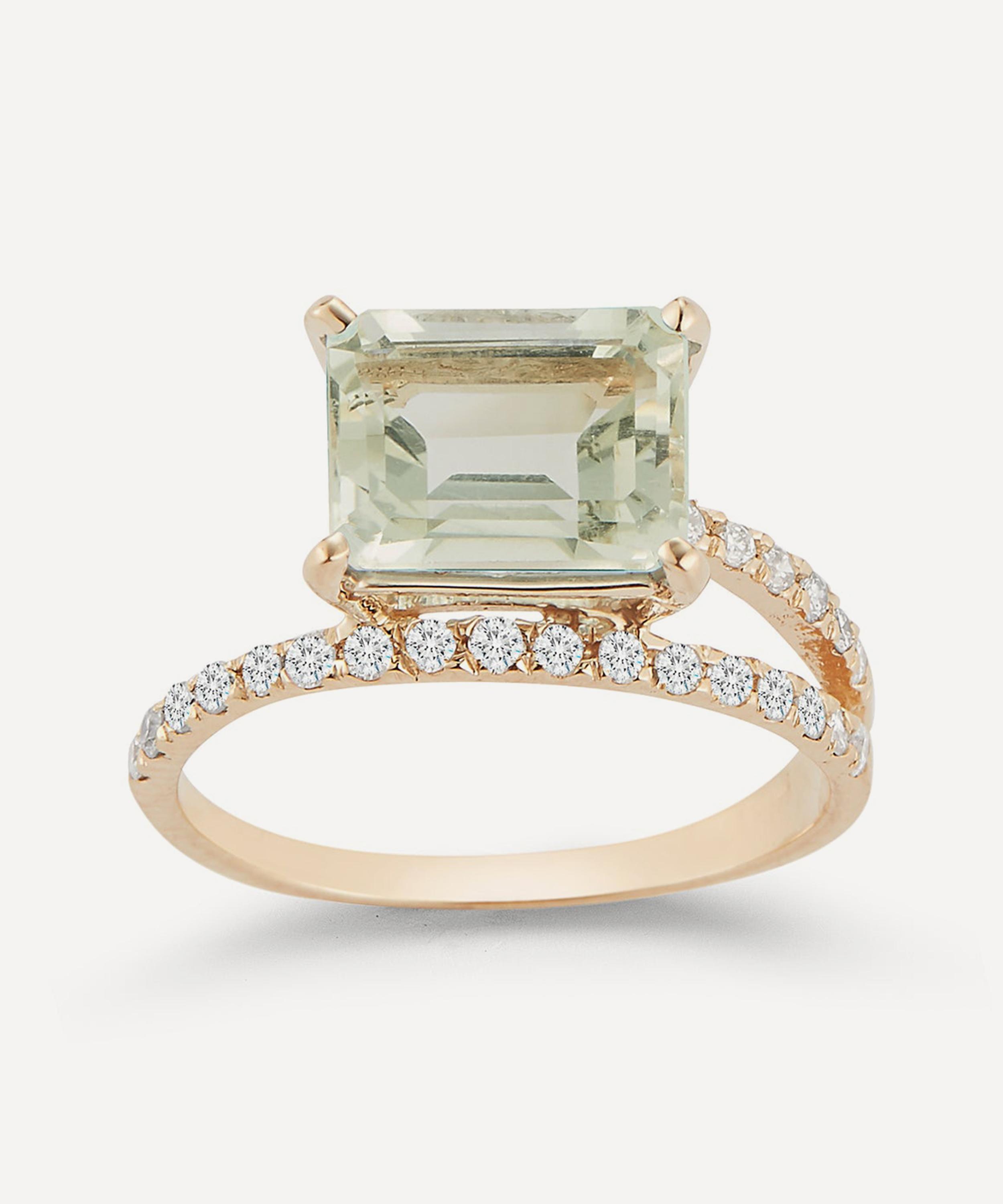 14ct Gold Point of Focus Green Amethyst Band Ring