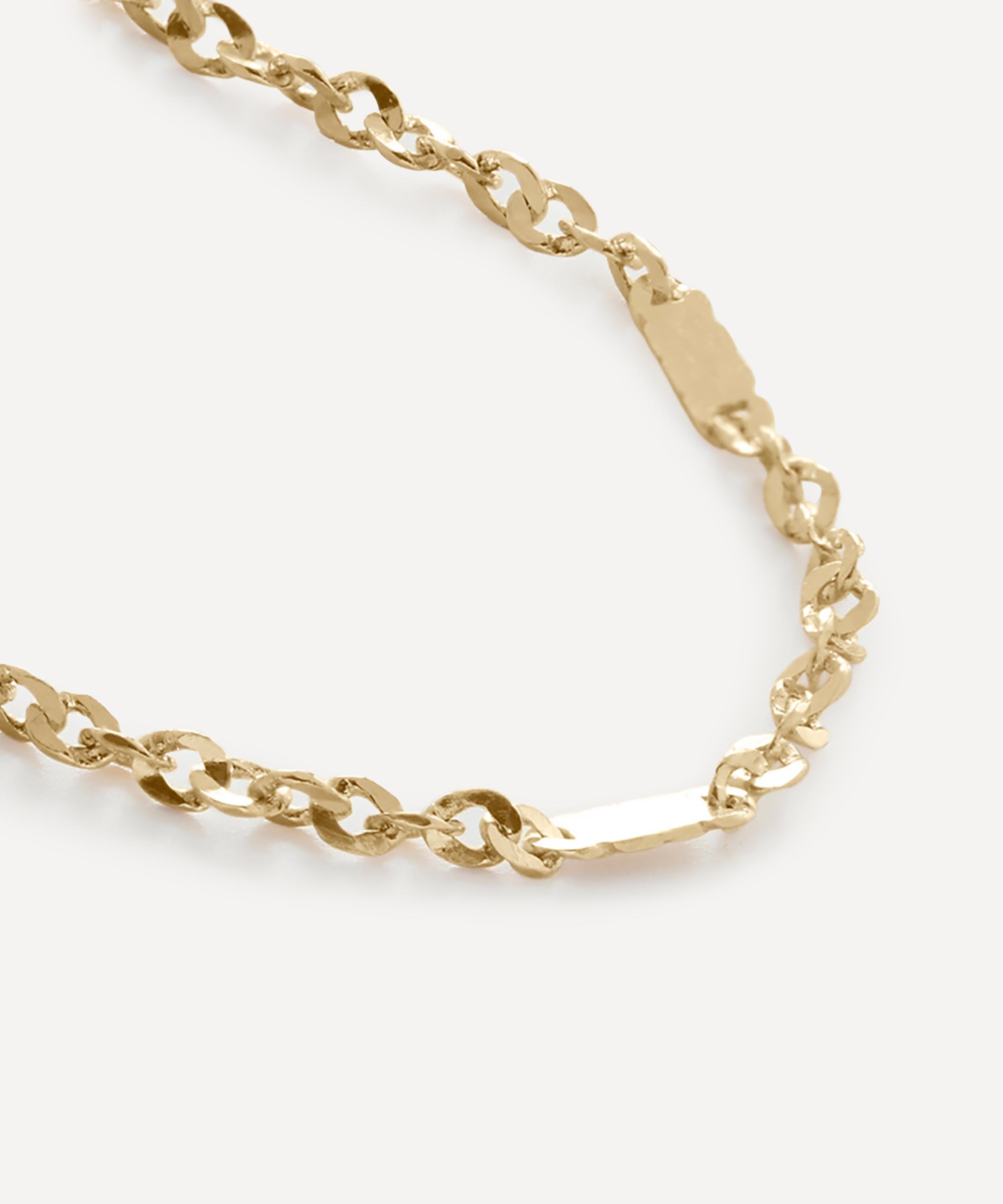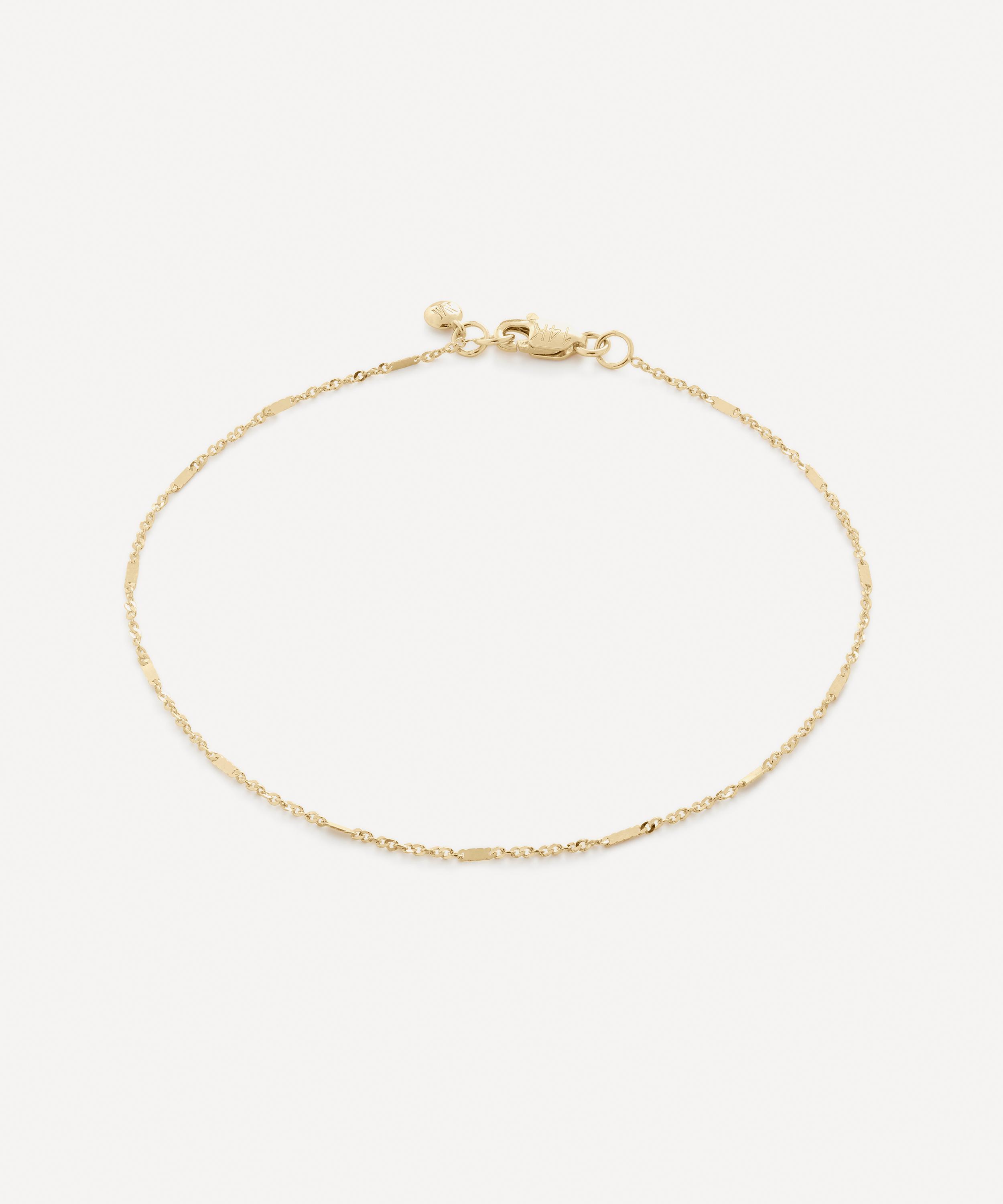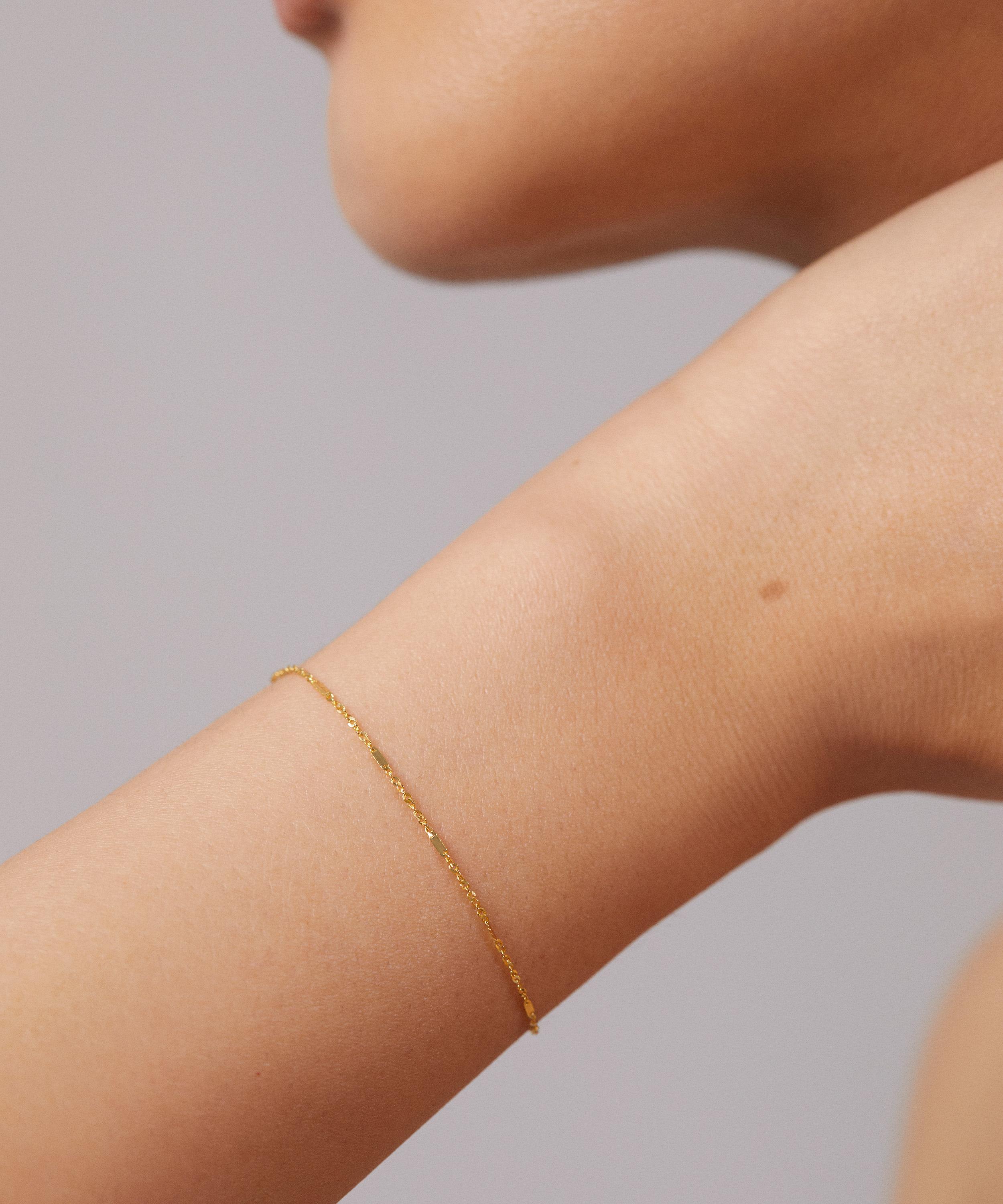 An elegant addition to your everyday line-up, this chain bracelet is crafted from 14ct solid gold and features a delicate trace chain with alternating, rectangular links – perfect for layering, wear it with additional chains or pair it with a sparkling piece for a contrasting effect.