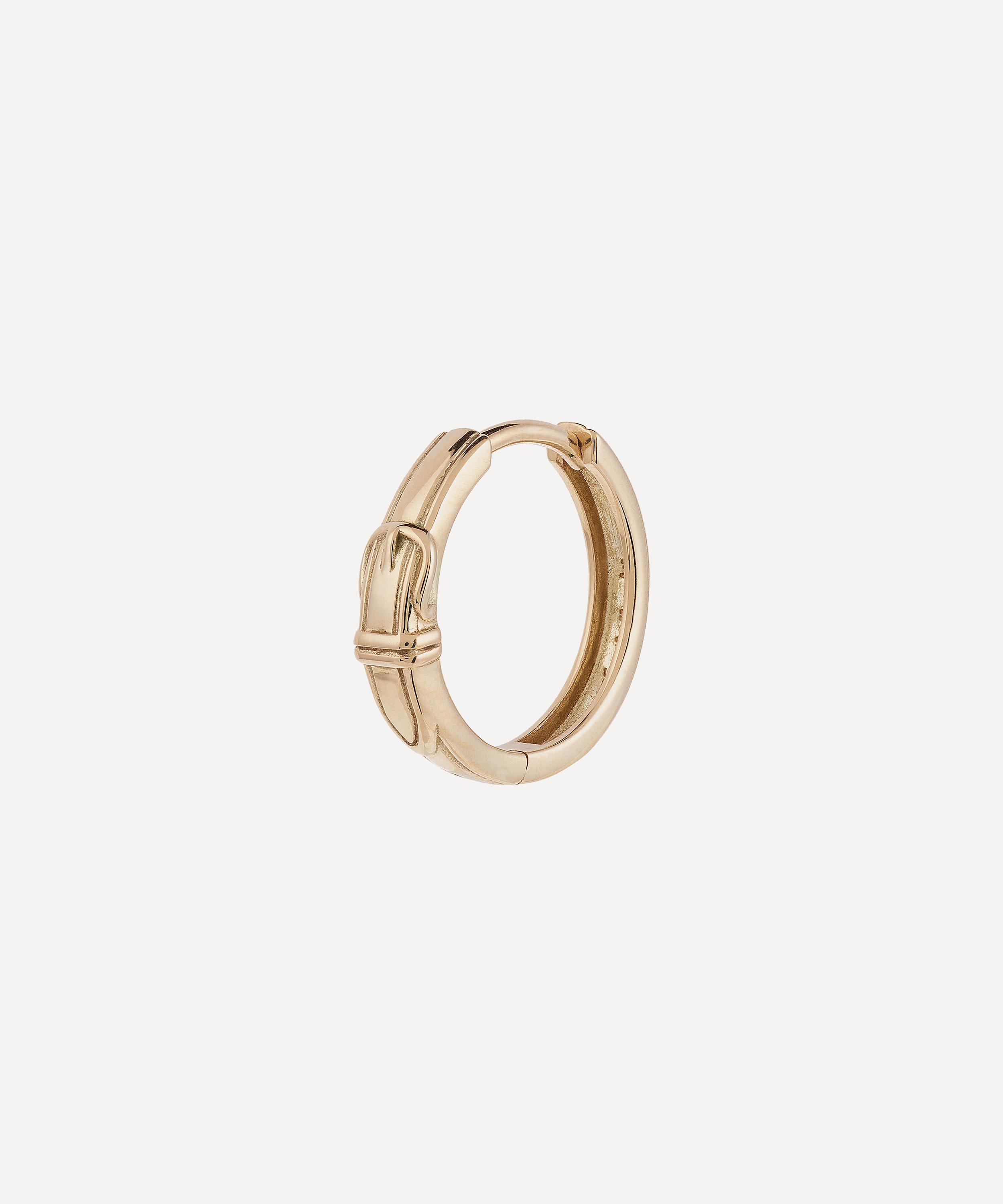 Handcrafted from 14 carat gold, this hoop earring boasts a minimal design, complete with a buckle detail and a high-polish finish – incorporate it into a mixed ear stack with other hoops and studs for a trend-led finish, or get two for a matching pair.