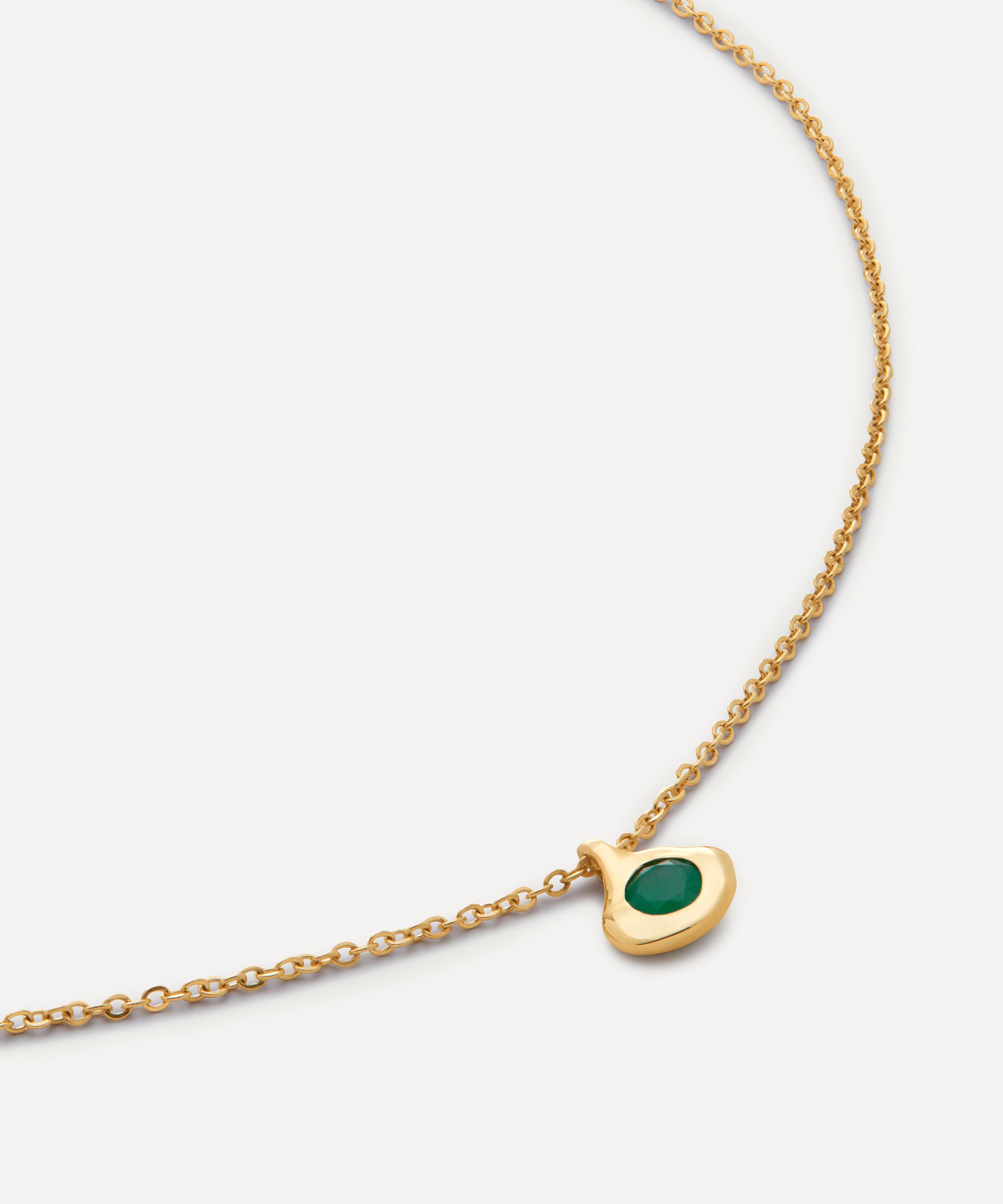 Perfect for stacking or styling alone, it features a fine link chain in 14ct gold, adorned with a vibrant green emerald in an organically shaped setting. Designed with both style and versatility in mind, try layering it with additional chains, or pair it with the coordinating bracelet and hoop earrings for a matching finish.