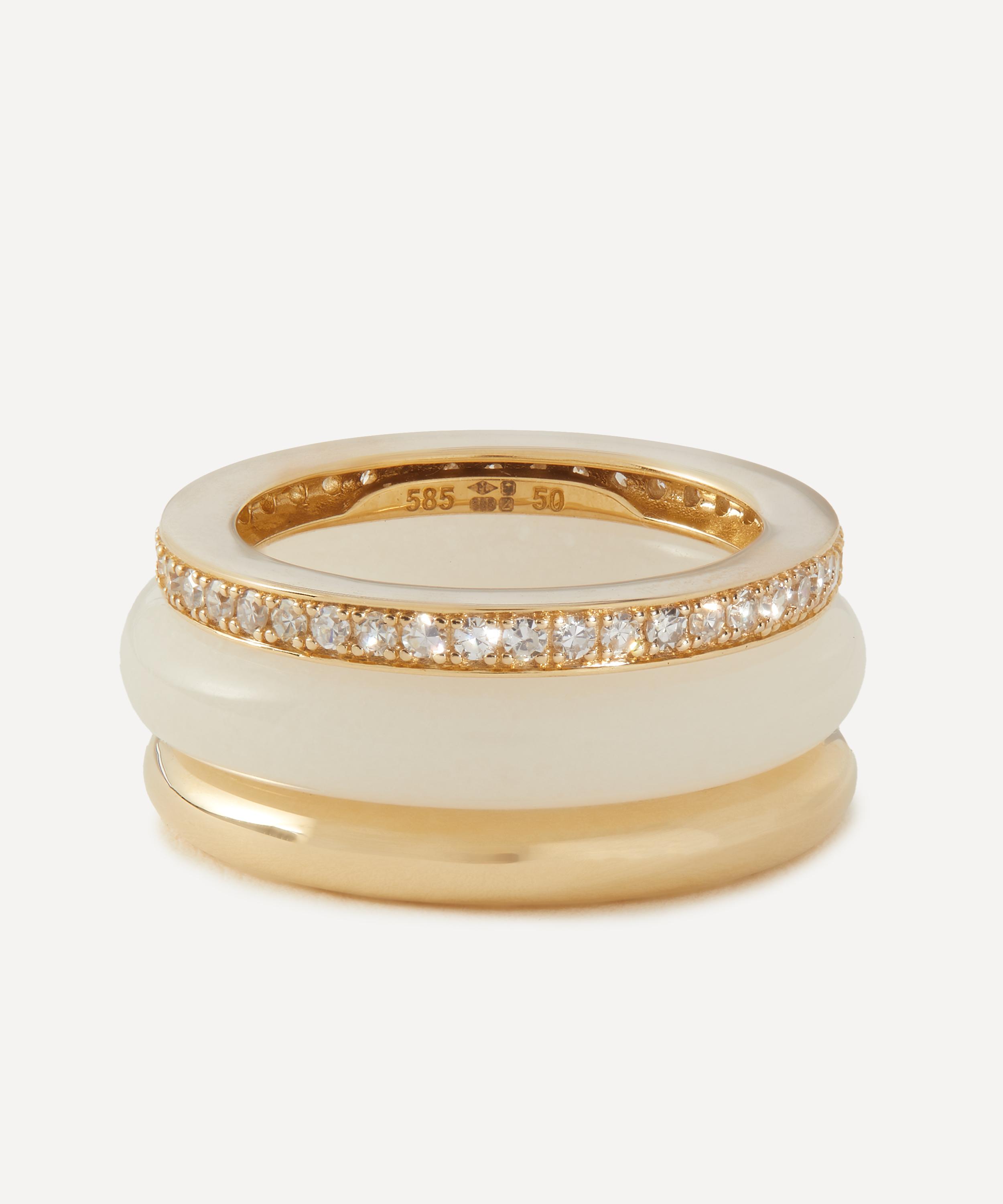 14ct Gold Slim Classic Trilogy Stack White Jasper Ring