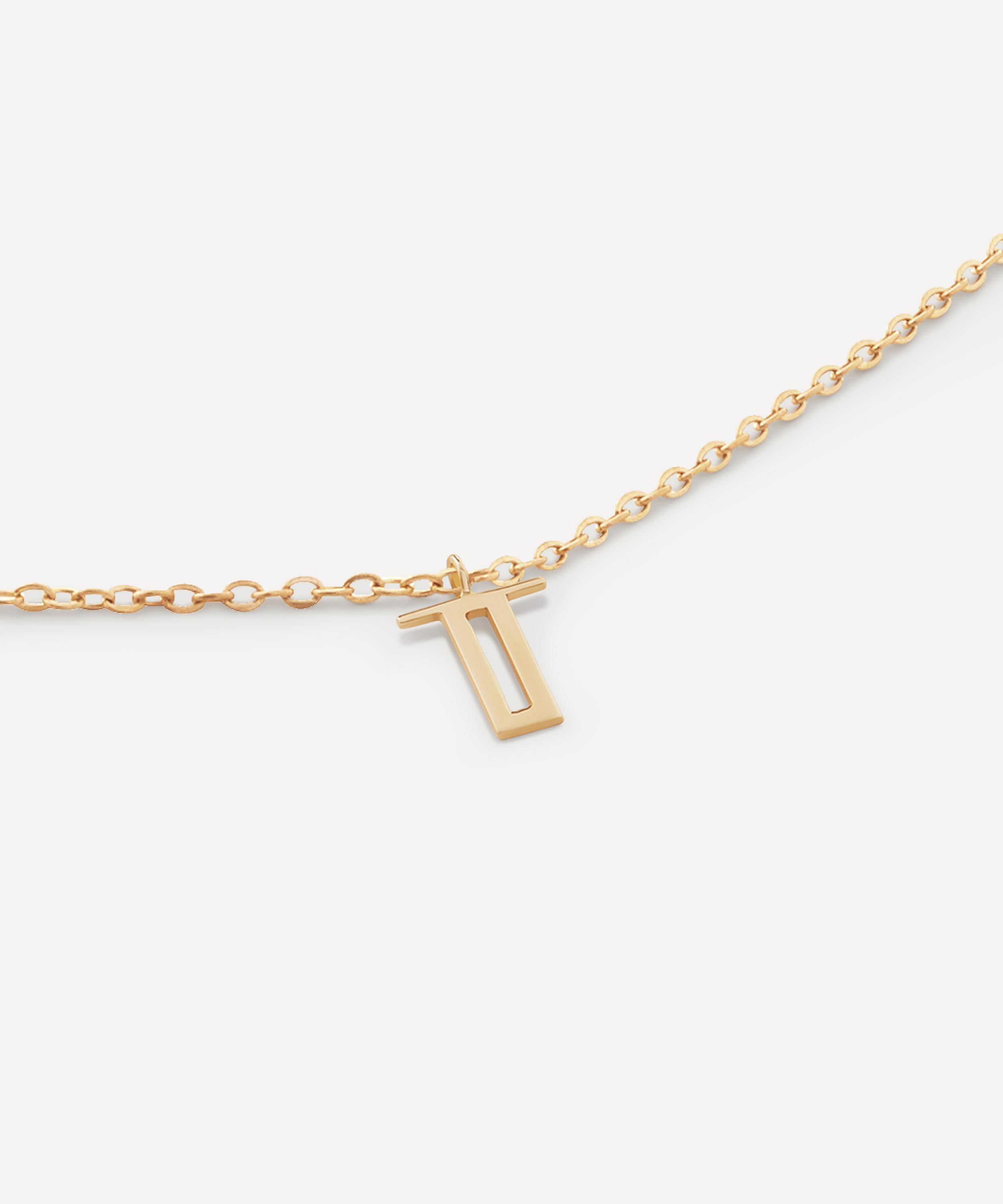 Personalise your jewellery curation with Monica Vinader’s initial pendant necklace - a signature, forever piece you won't want to take off. Crafted from 14ct solid gold, it features a fine link chain and small T initial styled in an Art Deco typeface. Make it the focal point of your look, or incorporate it into a layered stack for a contemporary finish.