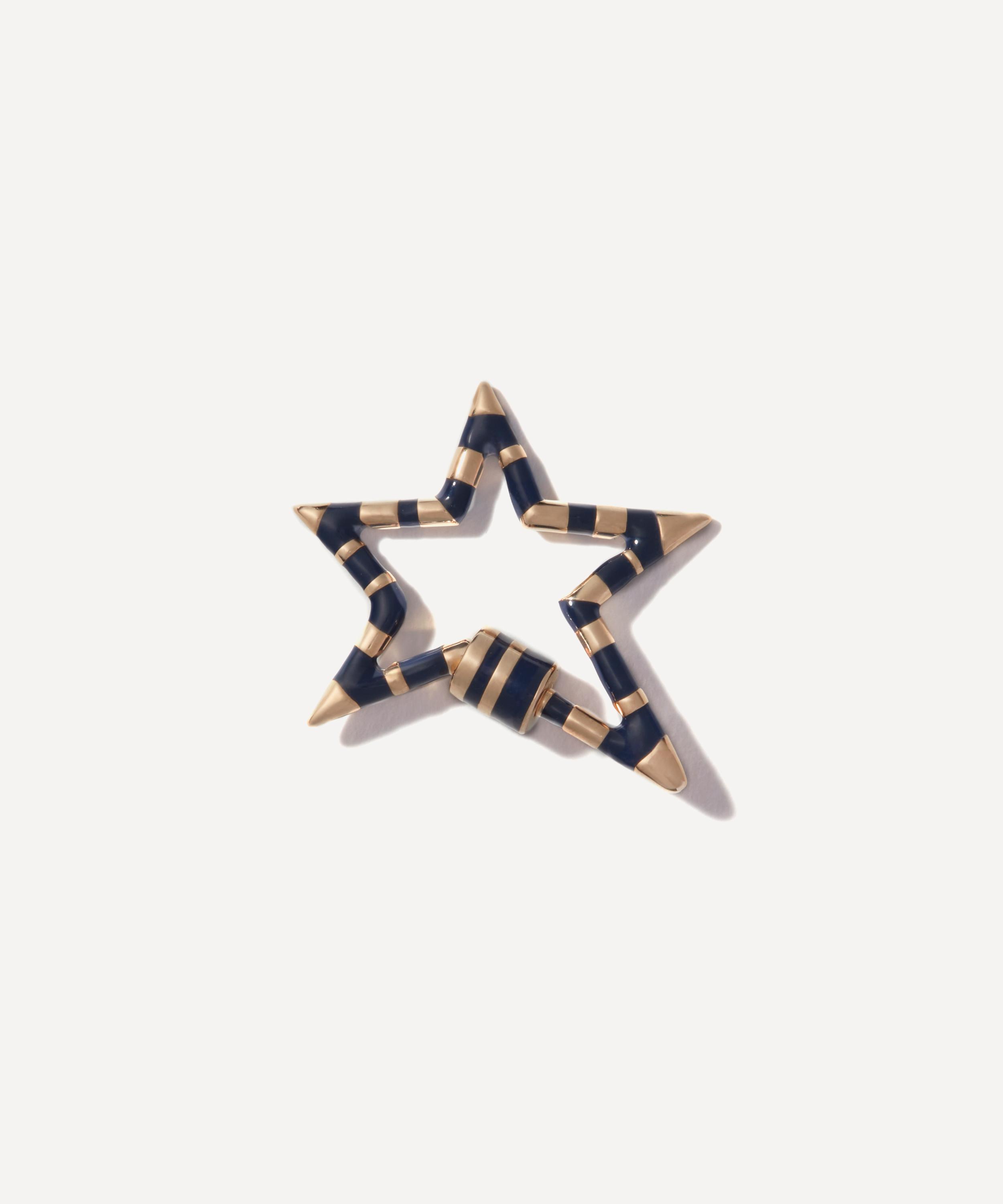 Complete your favourite chain from Marla Aaron with the brand’s playful Starlock clasp. Handmade from 14ct gold, it features Aaron’s signature carabiner lock, shaped into a star and decorated in navy-blue enamel stripes. Designed to be paired with one of the brand’s exceptional chains - it can be used as a connector, a clasp, or a charm holder. Spotlighting functional maximalism with a bold, yet refined look, it boasts endless styling possibilities, ideal for a necklace.