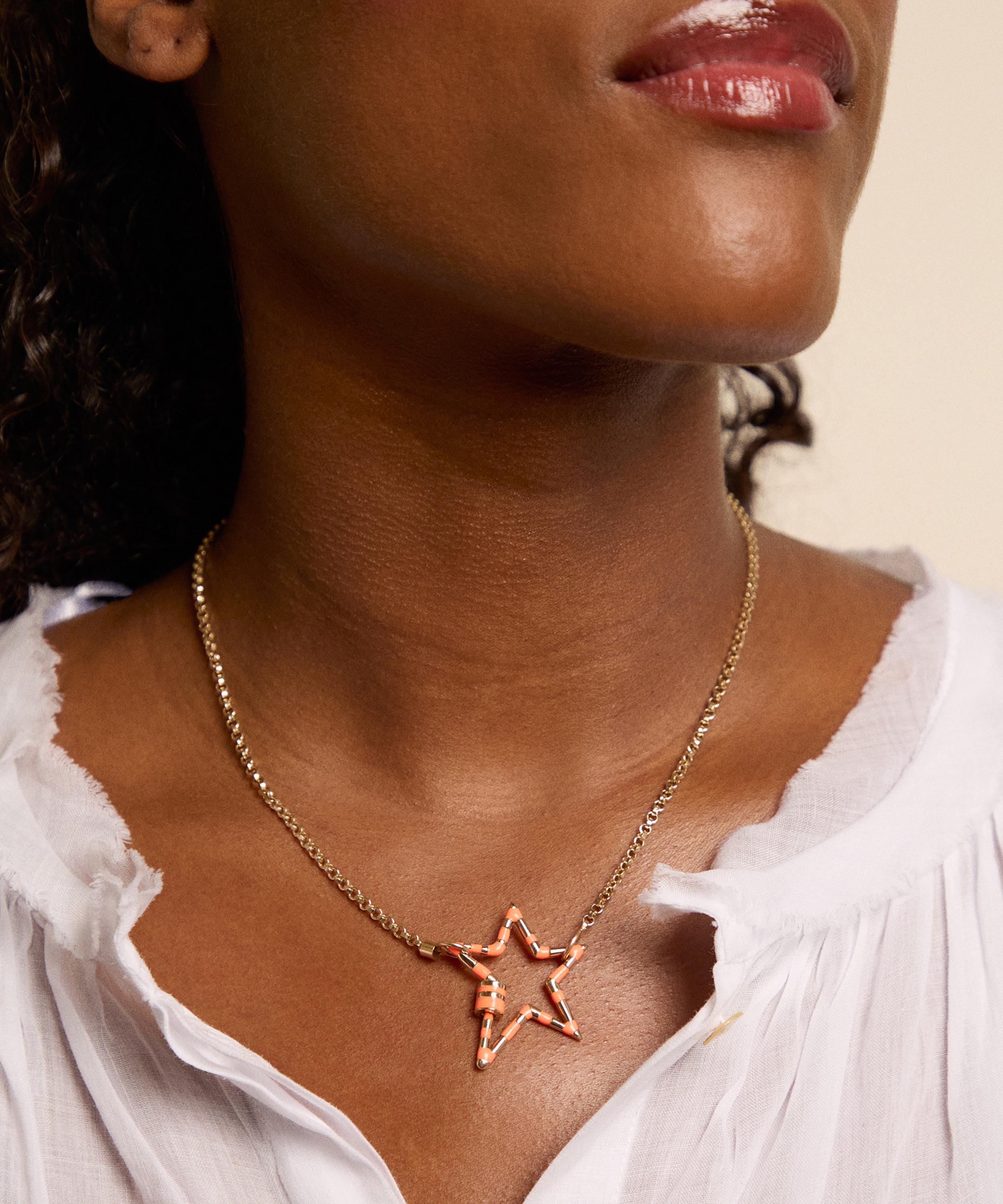 Complete your favourite chain from Marla Aaron with the brand’s playful Starlock clasp. Handmade from 14ct gold, it features Aaron’s signature carabiner lock, shaped into a star and decorated in tacky enamel stripes. Designed to be paired with one of the brand’s exceptional chains - it can be used as a connector, a clasp, or a charm holder. Spotlighting functional maximalism with a bold, yet refined look, it boasts endless styling possibilities, ideal for a necklace.