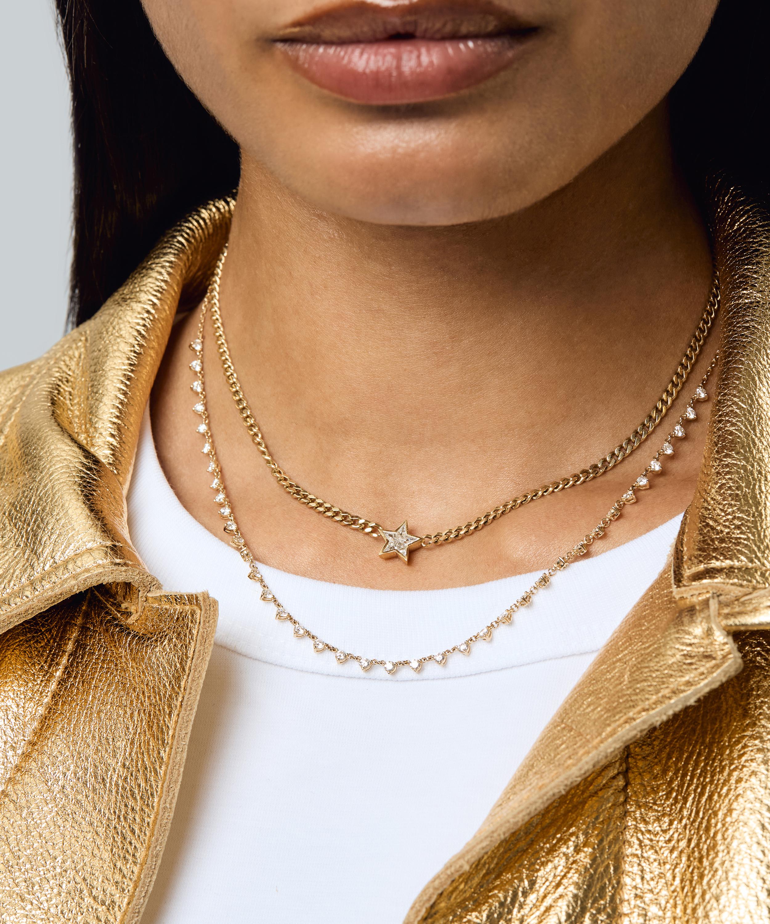 Take a playful approach to everyday dressing with this pendant necklace from Roxanne First. Crafted from 14ct gold, it features a chunky curb chain and diamond star pendant. Style it solo, or stacked.