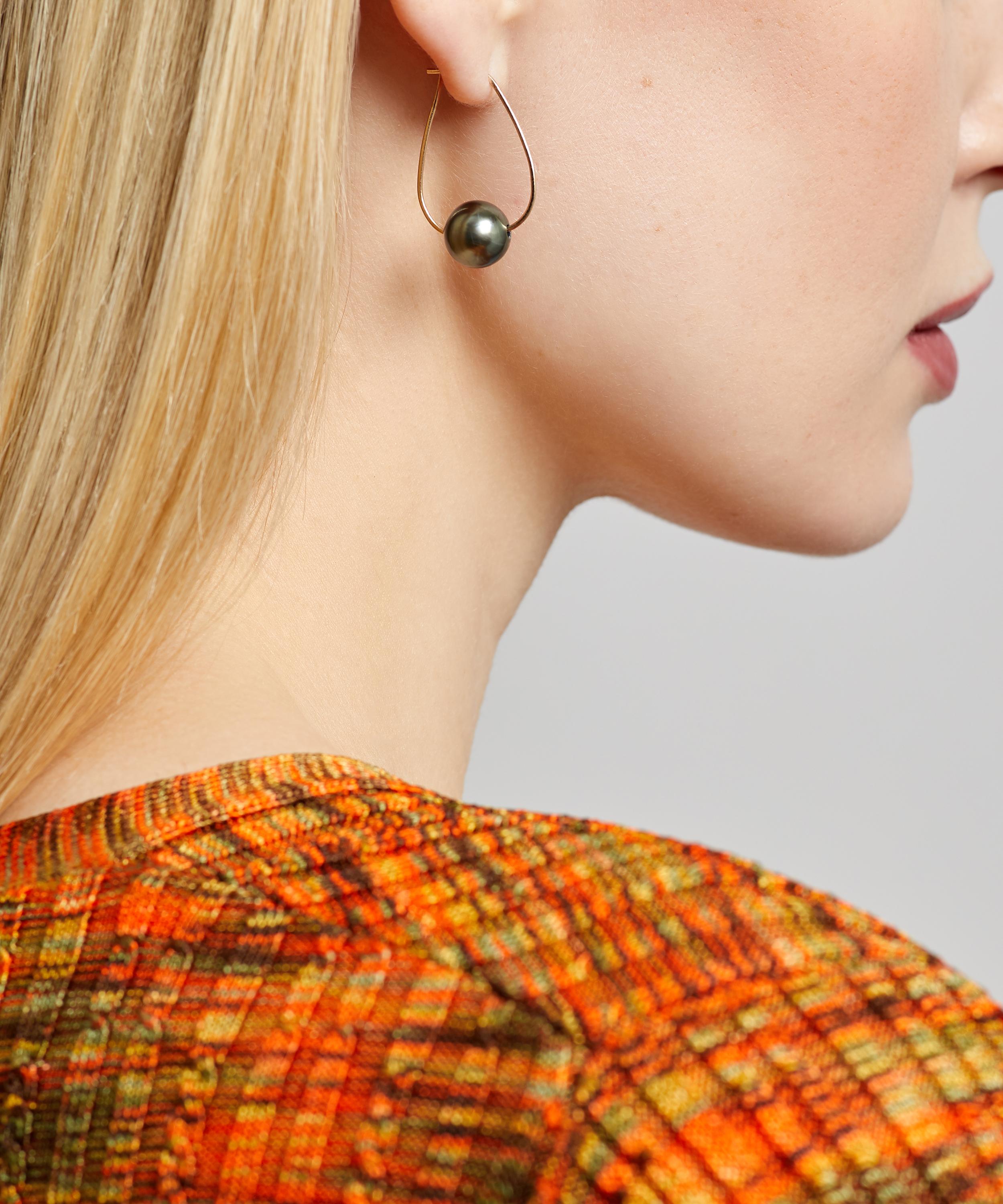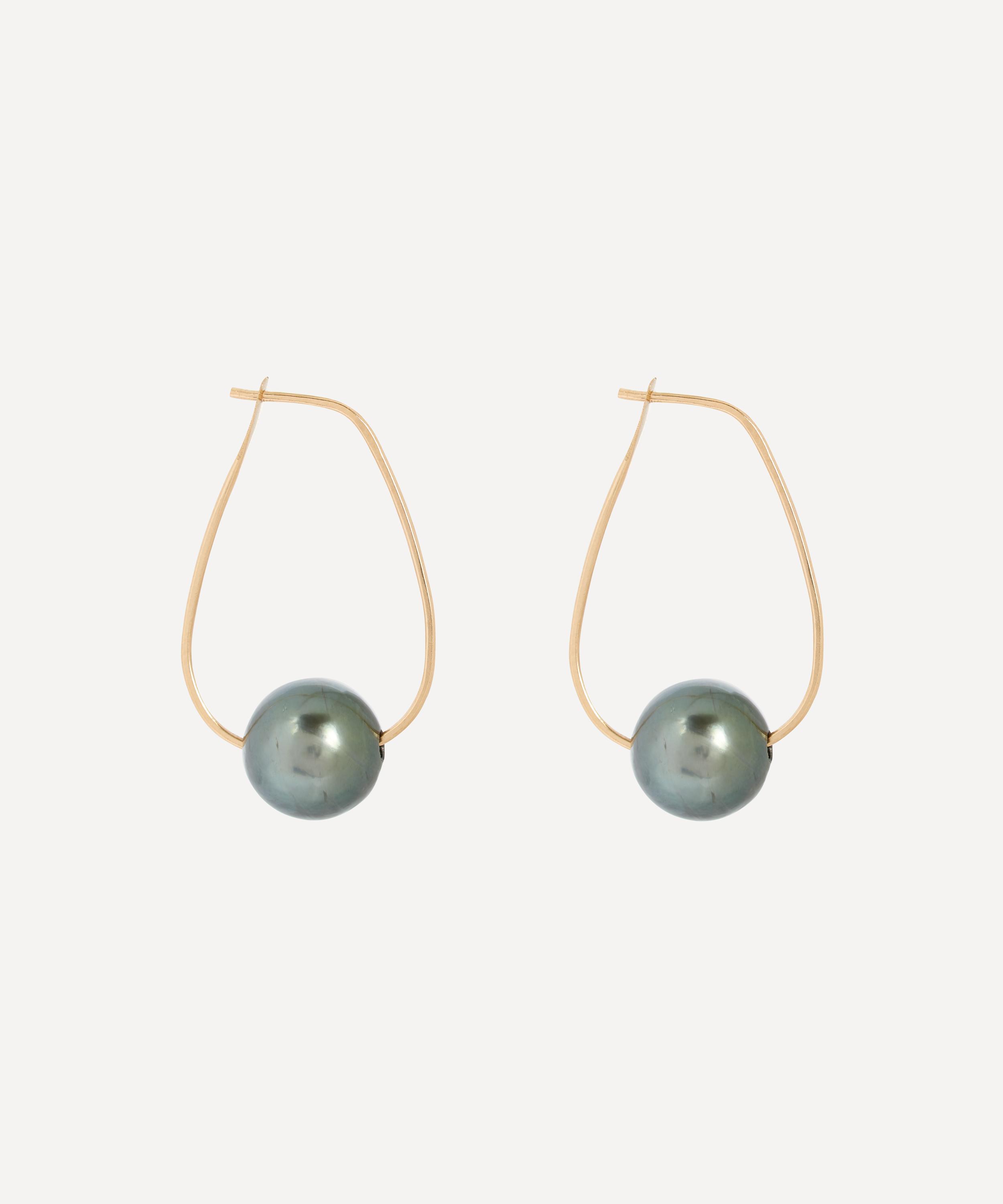 Infuse your daily edit with these opulent hoop earrings by Melissa Joy Manning. Crafted from 14ct solid gold, each earring is characterised by a thin, teardrop-shaped hoop adorned with a black Tahitian pearl drop – offering an elegant look that goes well with trendy updos.