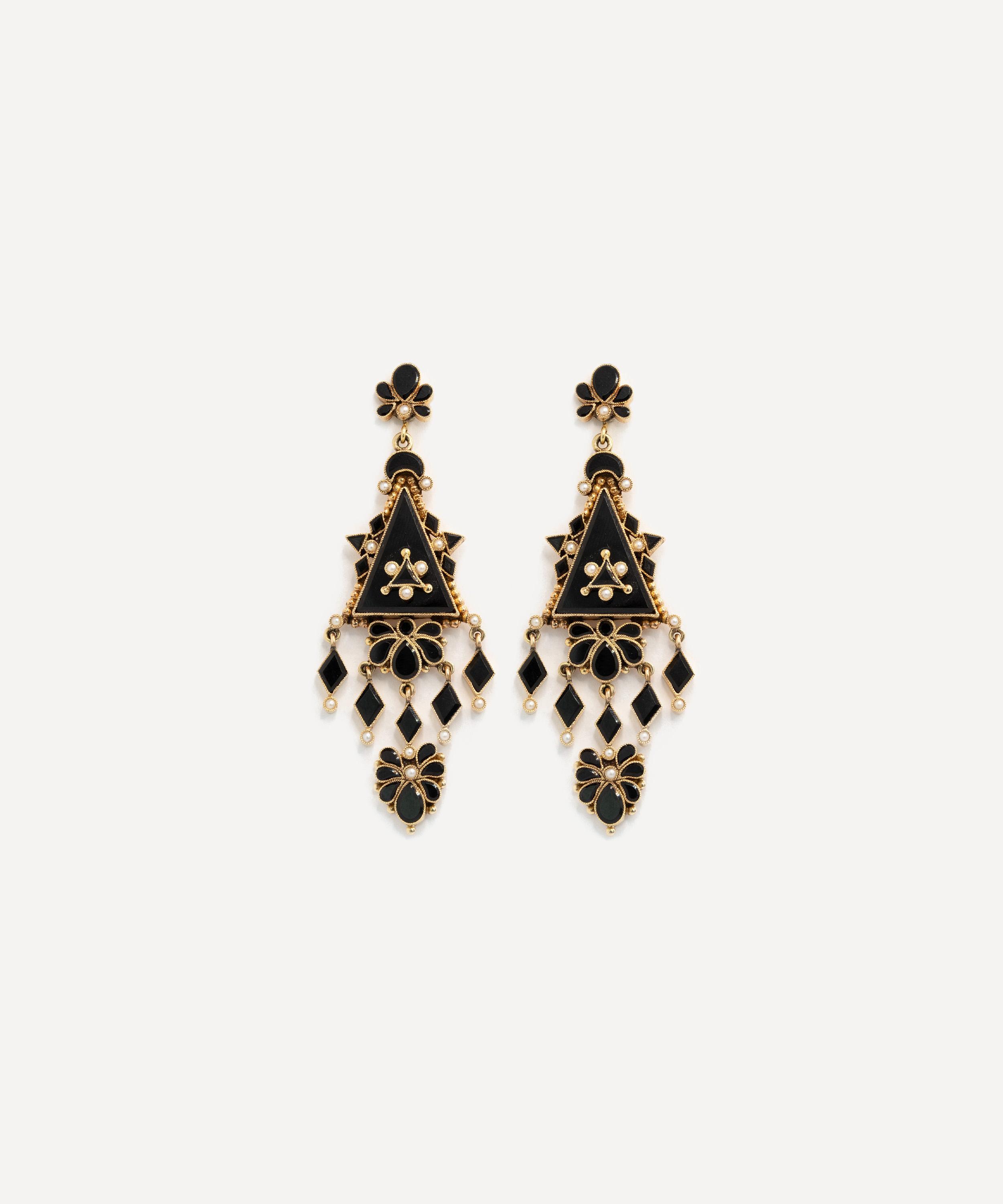 Make a subtle statement and indulge in the allure of a bygone era with these exquisite Victorian drop earrings from antique purveyor Kojis – a true testament to enduring sophistication.