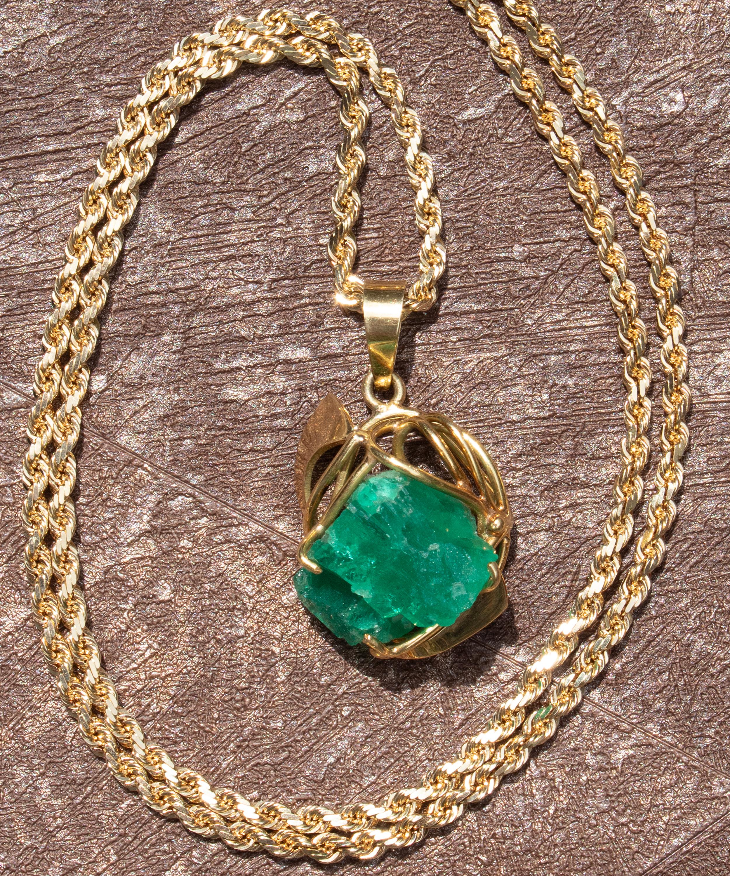 14ct Gold Vintage Rough Emerald Pendant Necklace