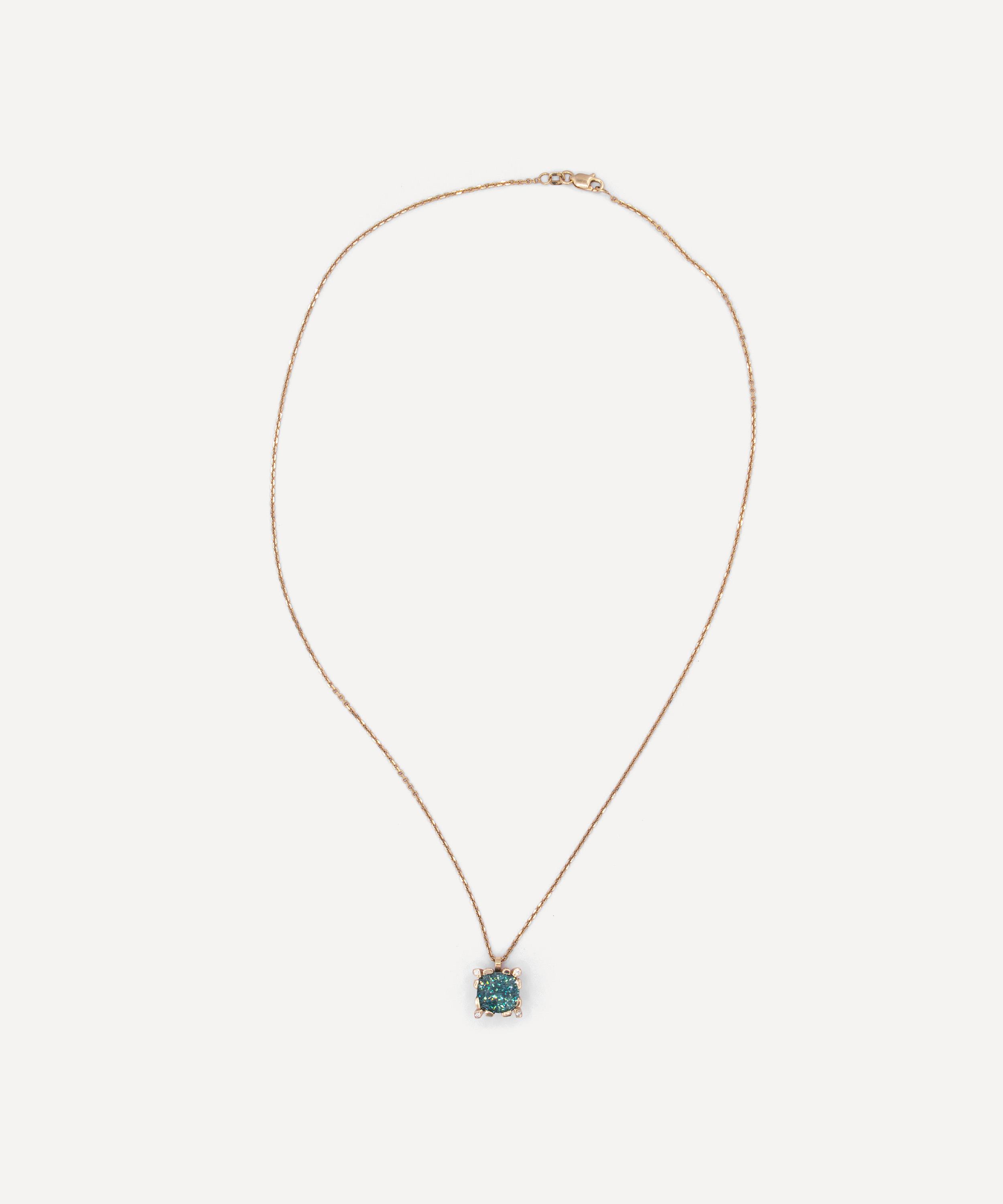 Crafted from 14ct gold, it features a cushion cut, green-blue zircon accented with round brilliant cut diamonds. Whether worn as a statement of refinement or a whisper of vintage charm, it will steal the spotlight and elevate every ensemble with its undeniable presence.
