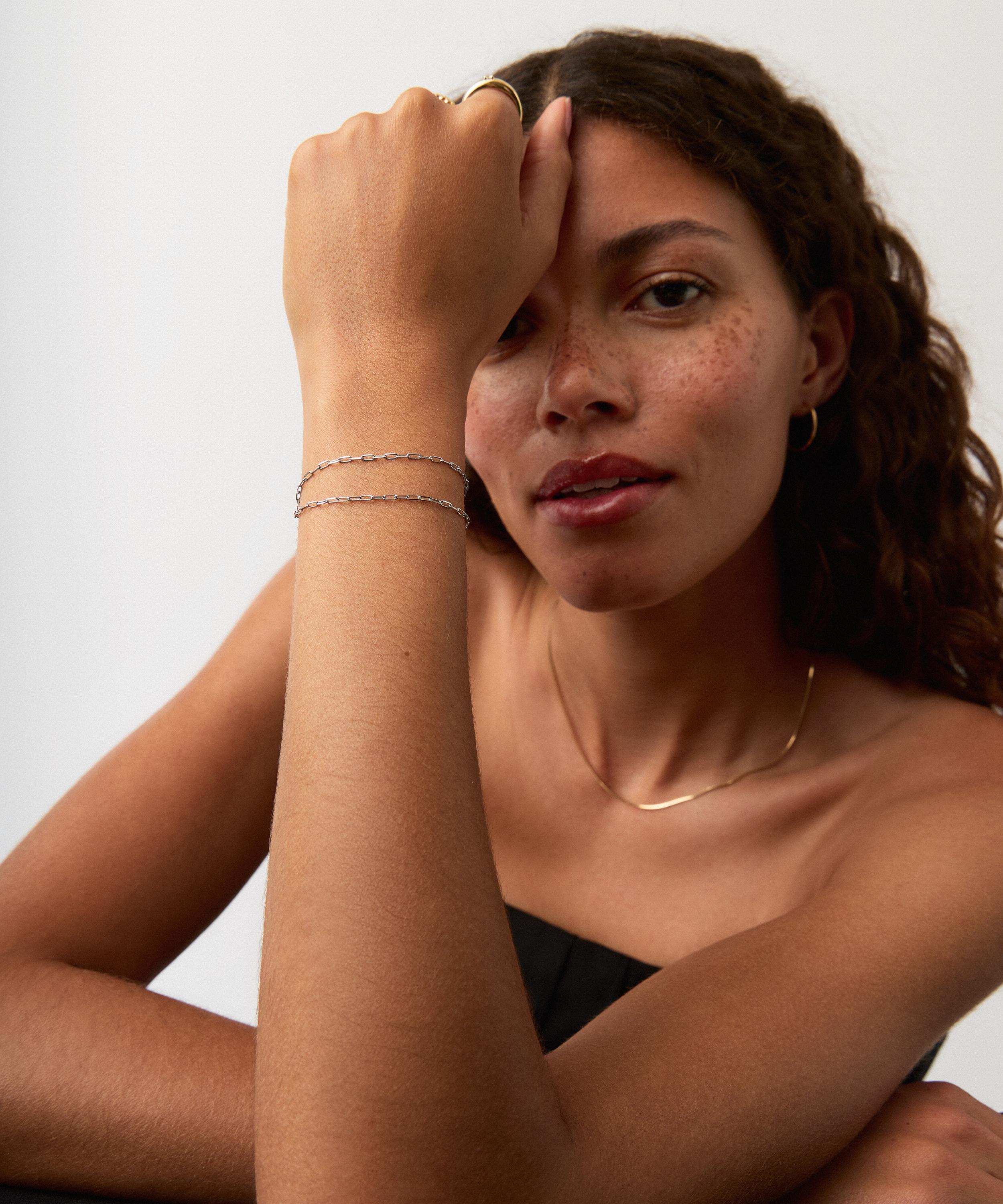 Make every day dressing feel effortless with this subtly elevating chain bracelet from Missoma. Crafted from solid 14ct white gold, it’s made up of classic paperclip links in a polished finish, perfect for any kind of wrist stack curation. Style it with other white gold bracelets or wear solo for a minimal look.
