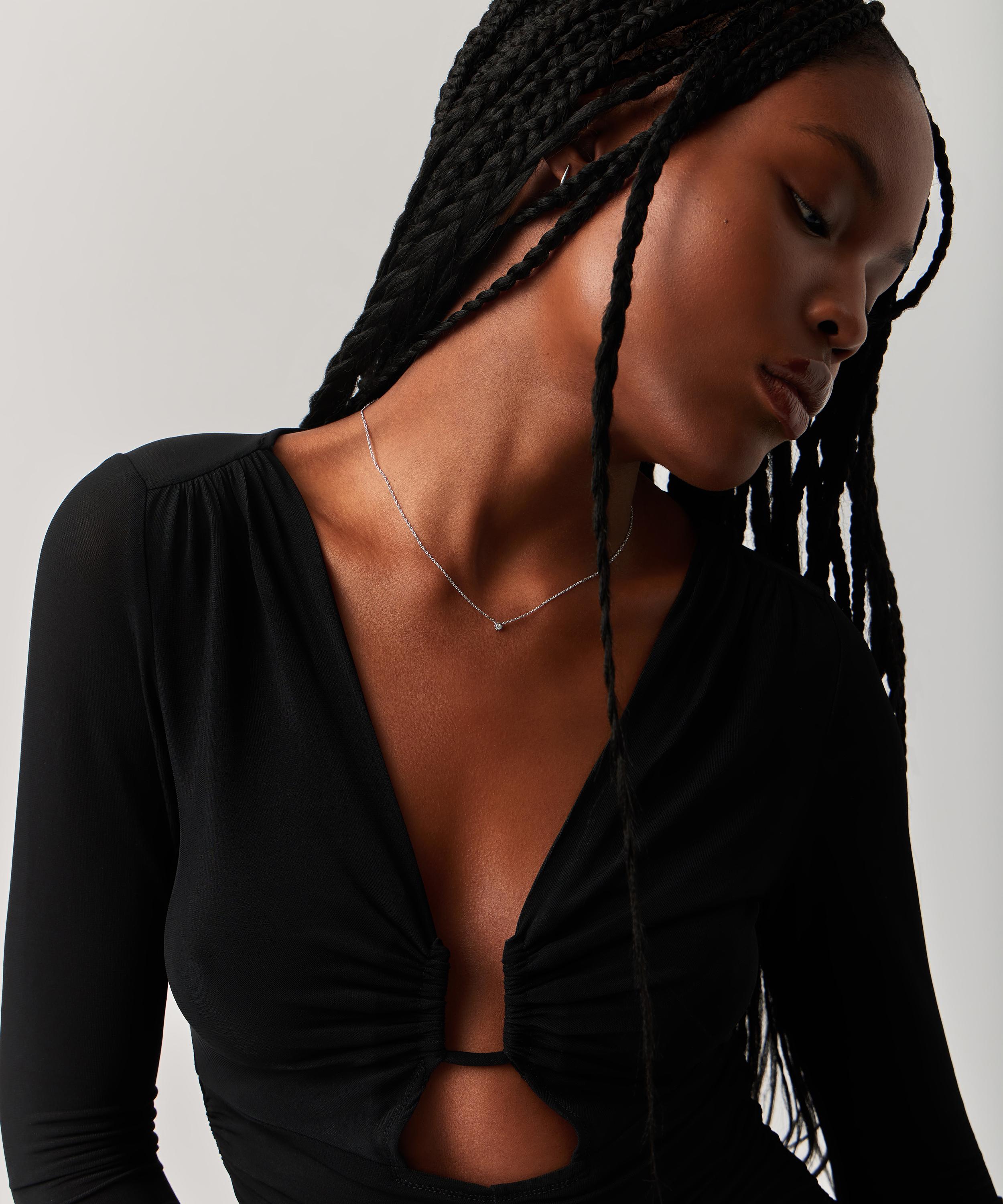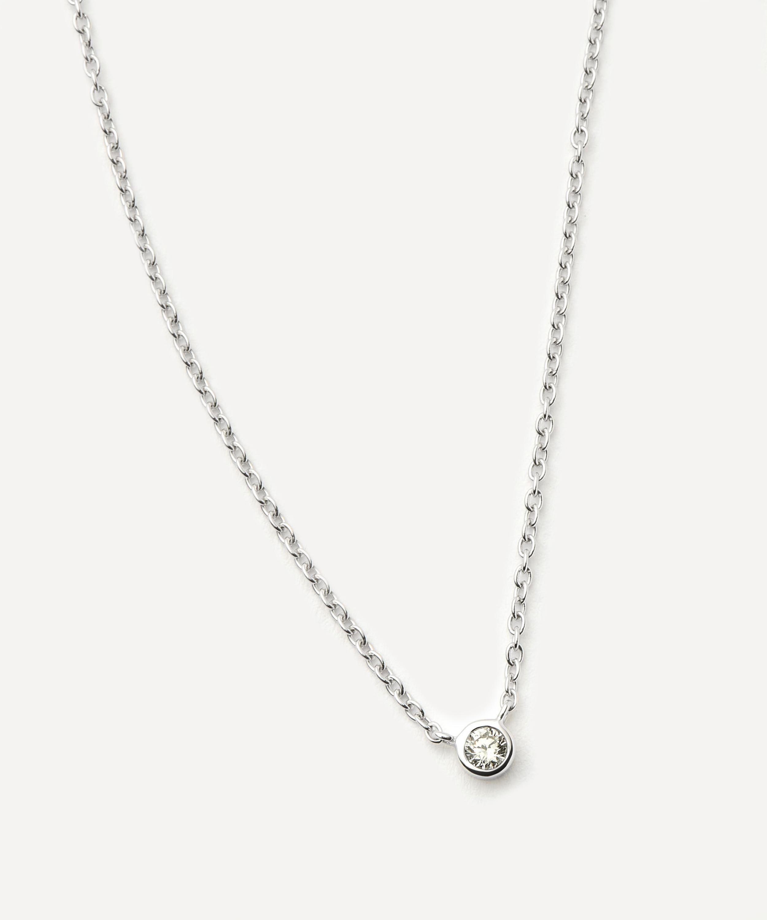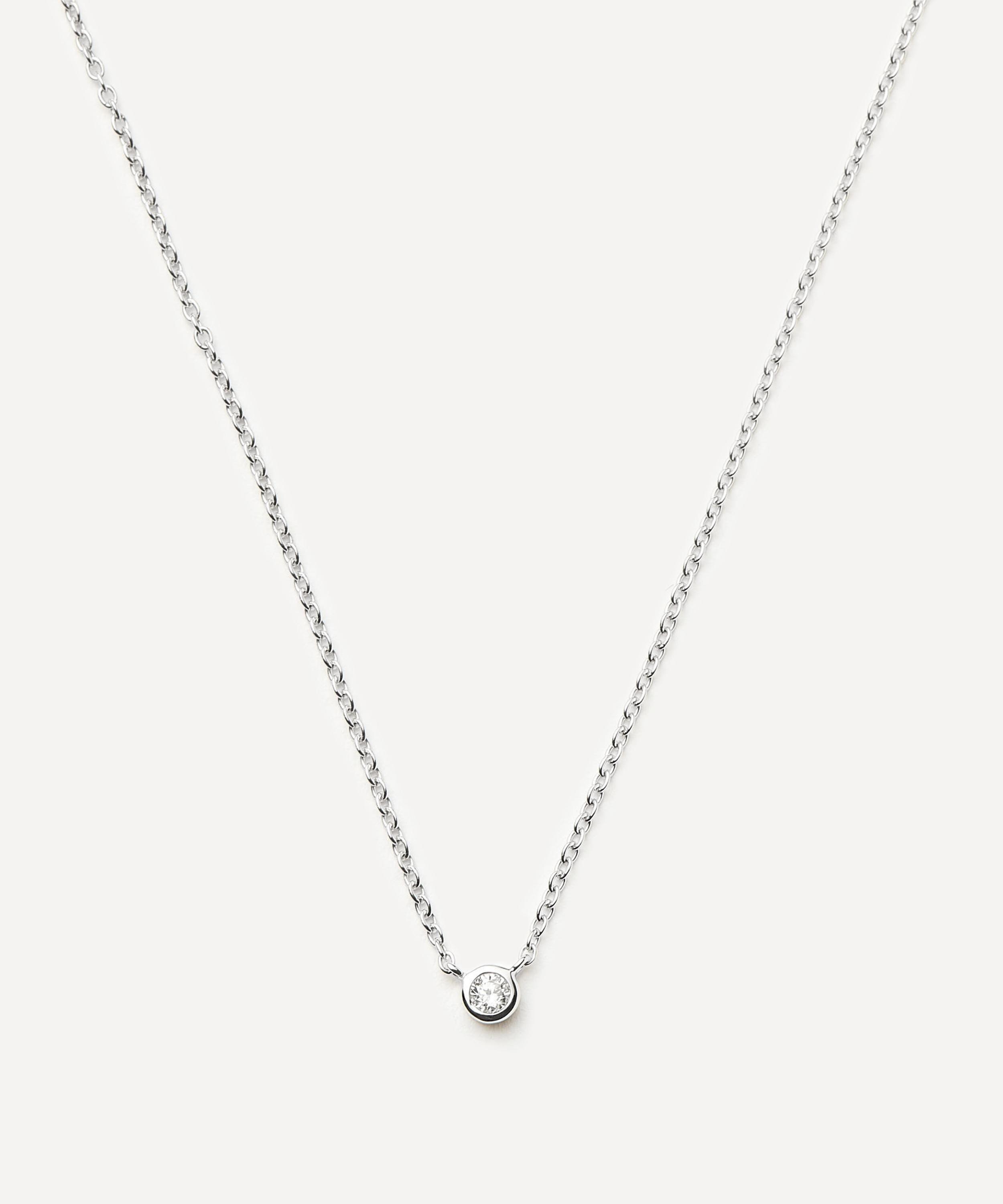 Make every day dressing feel effortless with this subtly elevating pendant necklace from Missoma. Crafted from solid 14ct white gold, it features a fine trace chain adorned with a bezel set diamond, perfect for any kind of stack curation. Style it with other gold necklaces or wear solo for a minimal look.