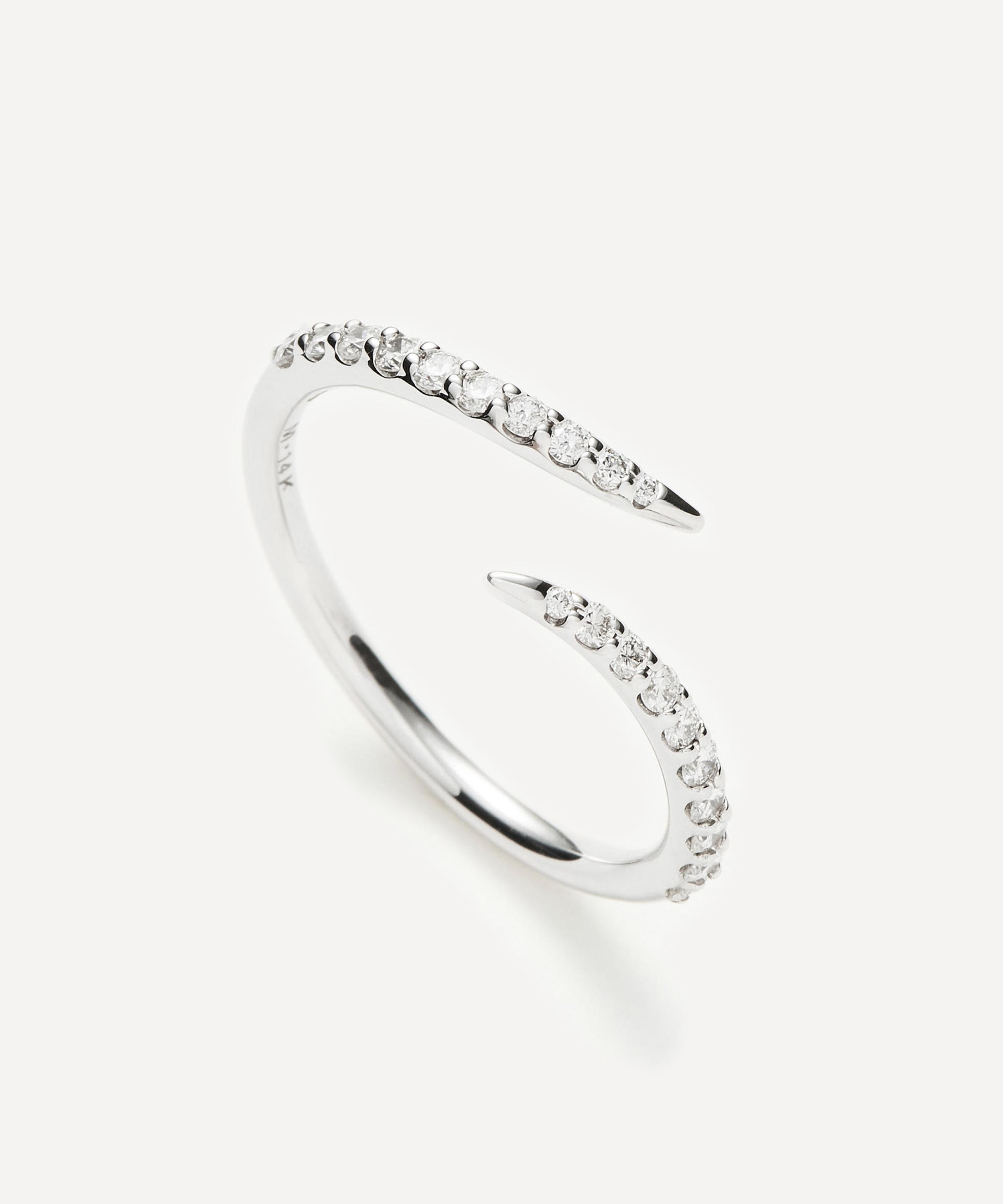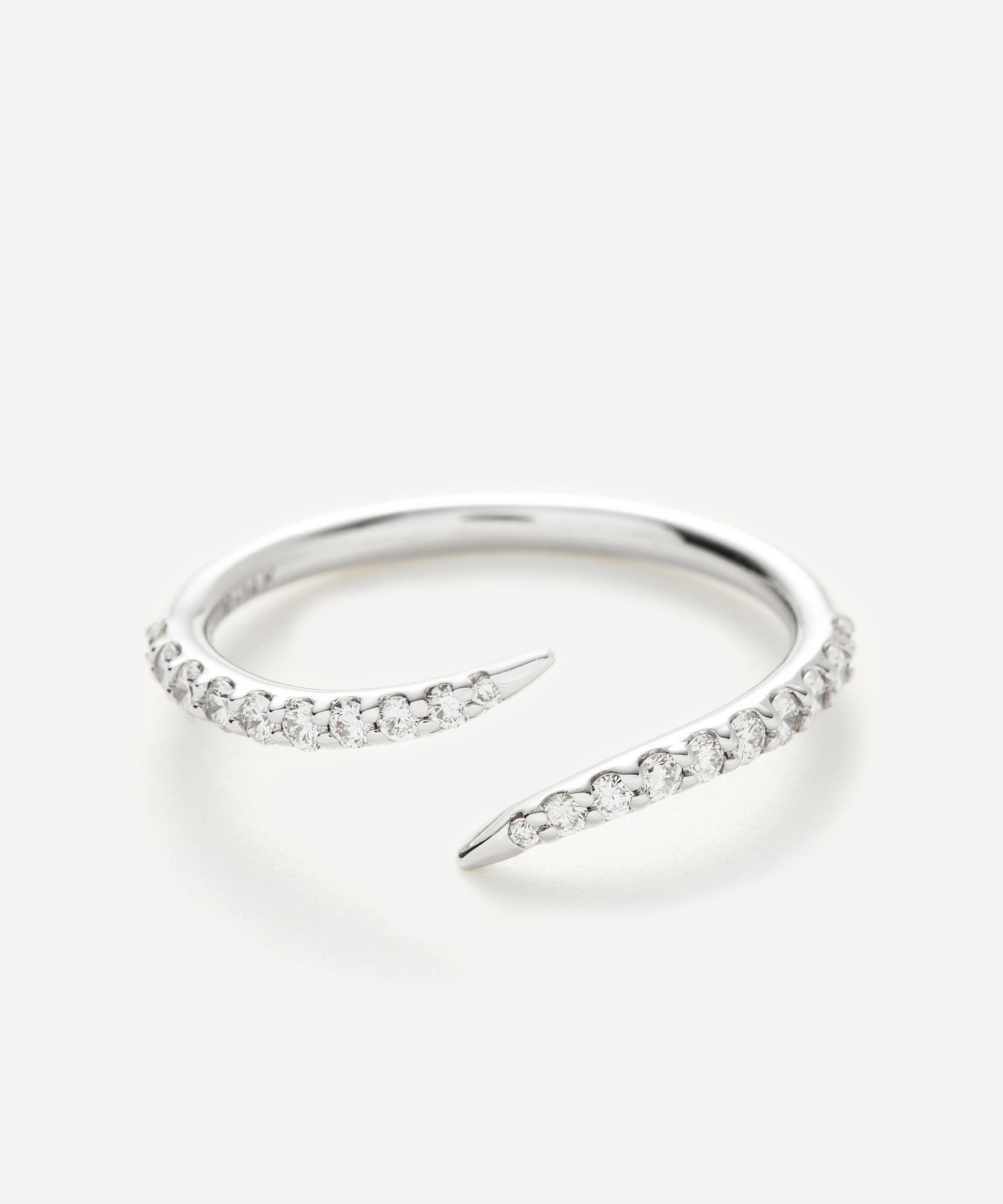 Make every day dressing feel effortless with this subtly elevating ring from Missoma. Crafted from solid 14ct white gold, it features an open silhouette, depicting a claw-inspired design lined with sparkling diamonds, perfect for any kind of ring stack curation. Style it with other white gold rings or wear solo for a minimal look.