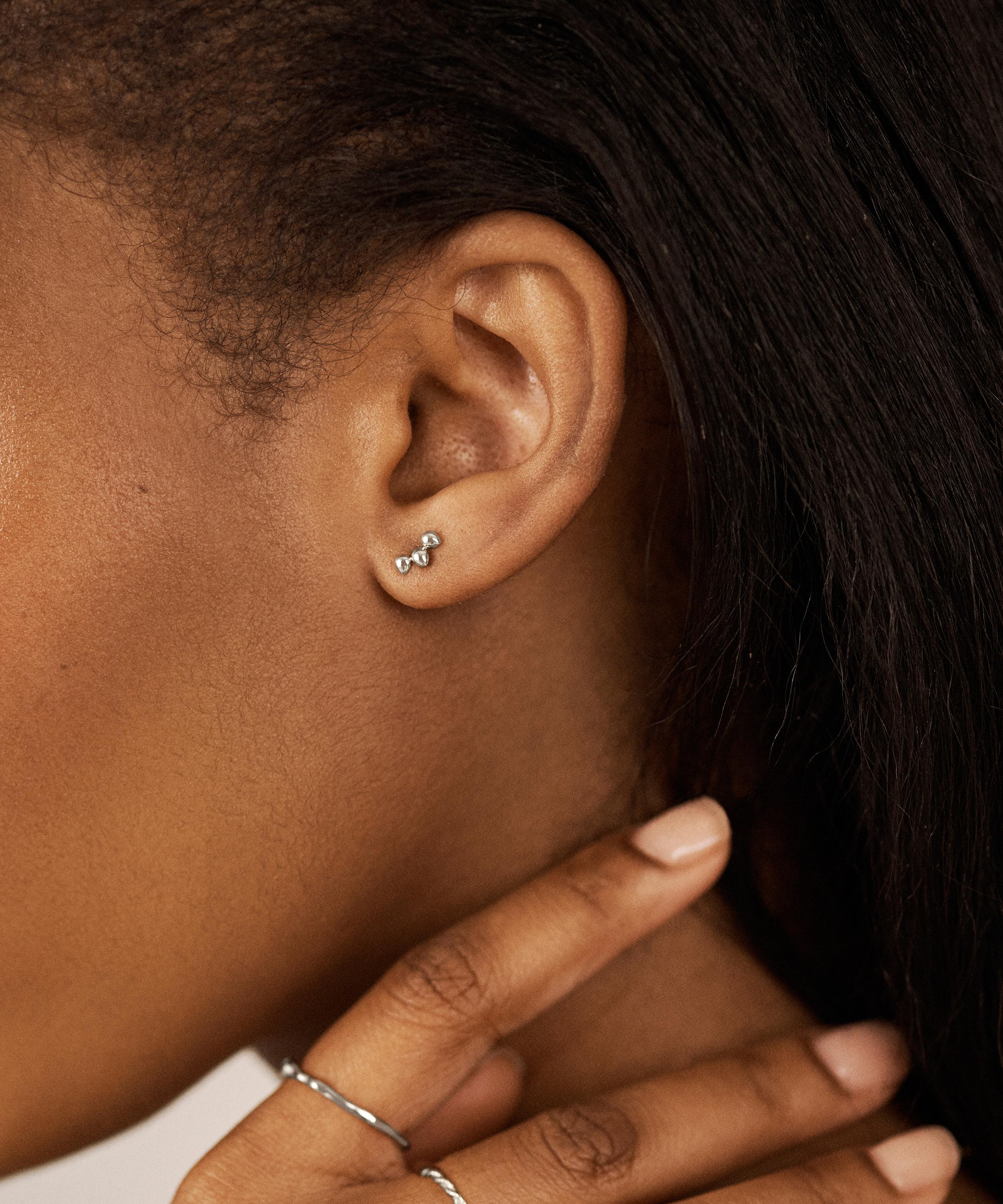 Part of the brand's Nura Collection, inspired by sea-tumbled pebbles, reef fragments and high-polished shells, this sleek earring has been crafted from 14 carat solid white gold for a pebble cluster design, and is complete with a flat back for ultimate comfort – mix and match with an array of other studs and hoops for your own unique curation.