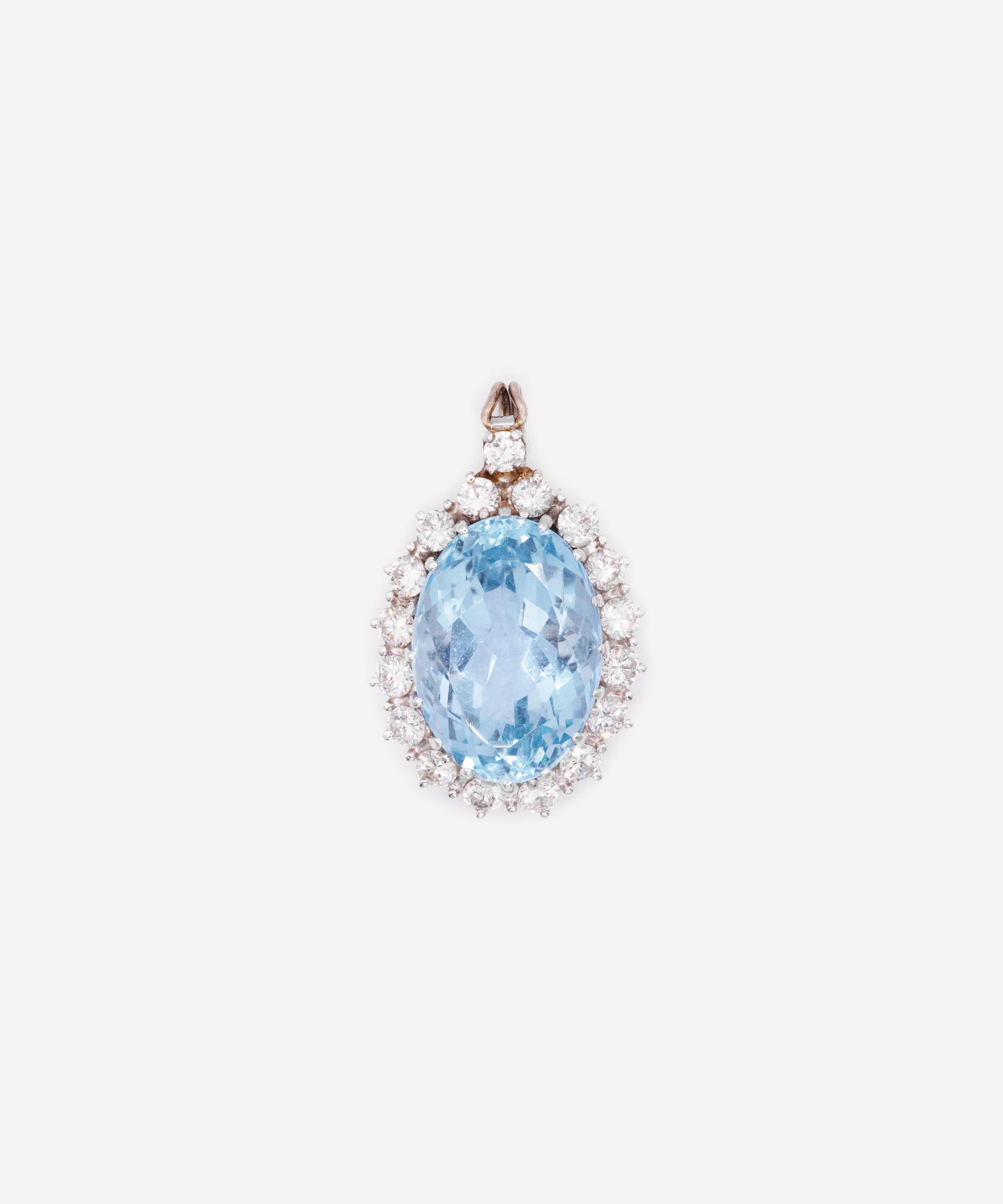 14ct White Gold Vintage Aquamarine and Diamond Pendant