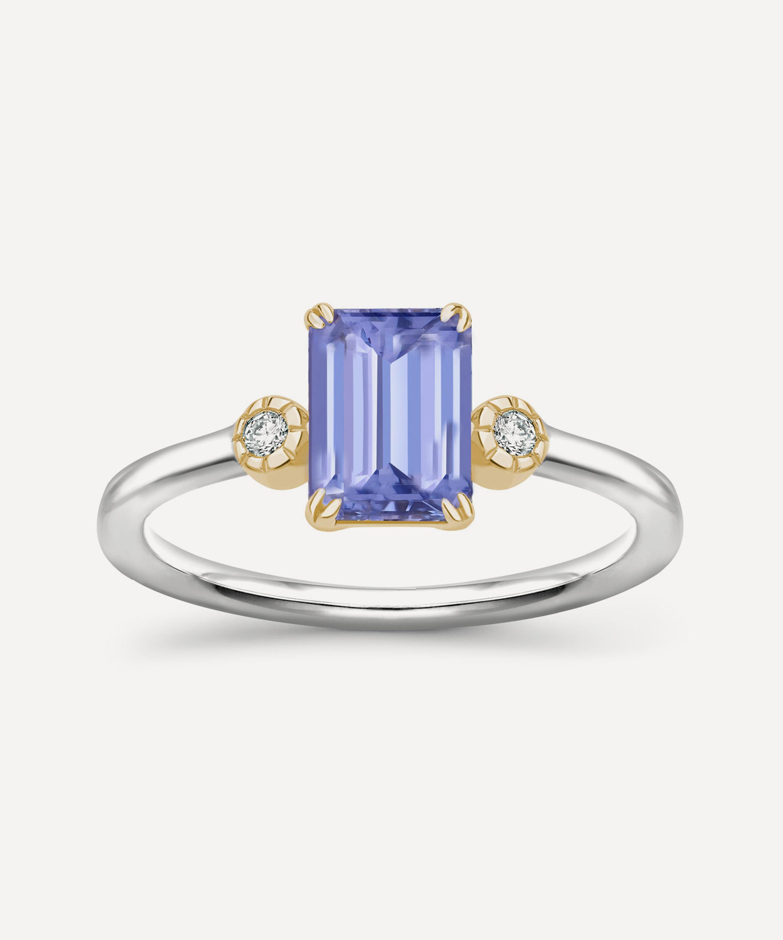 - Emerald-cut tanzanite centre stone