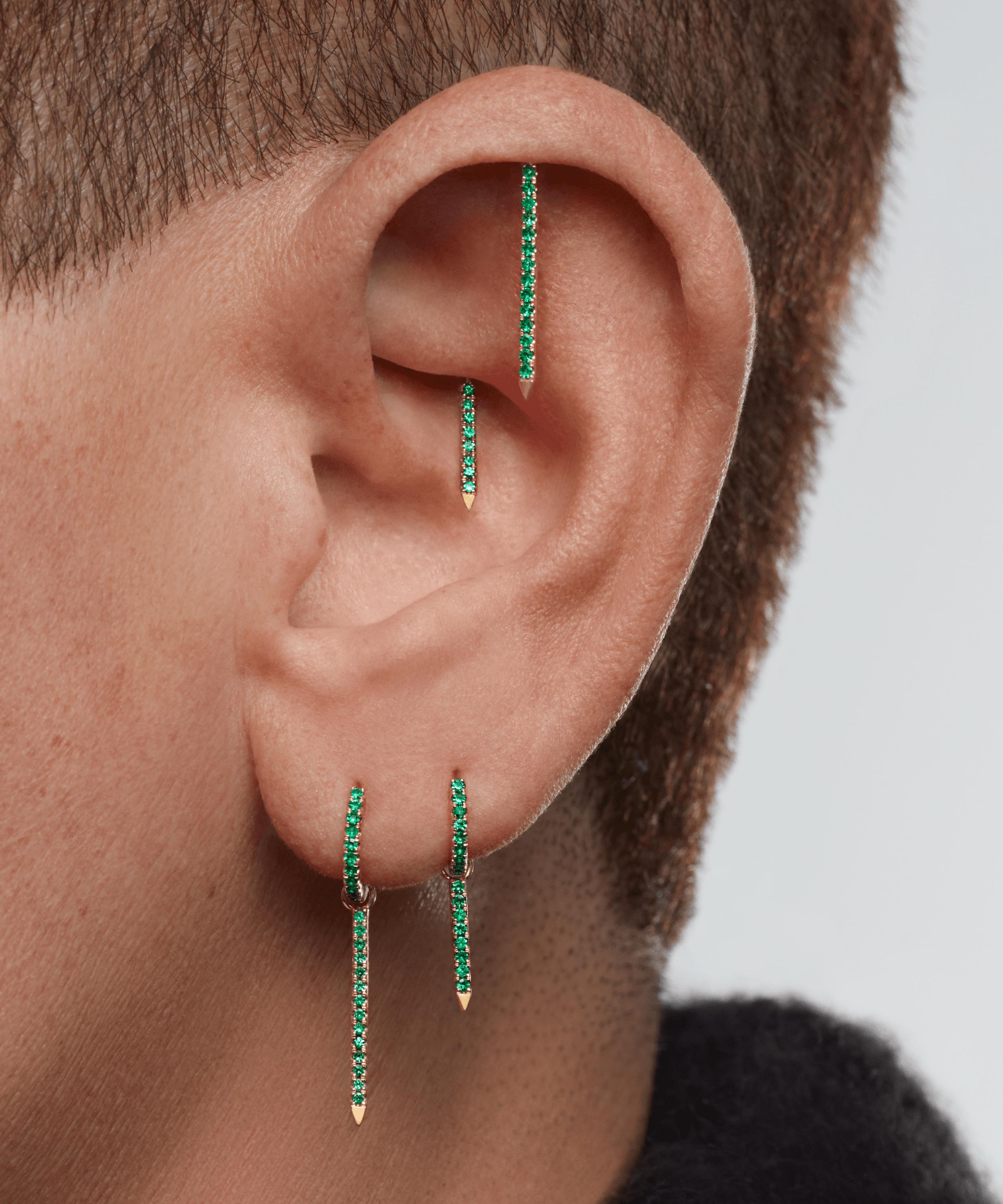 Part of the Emerald capsule collection, this bar charm showcases a colourful update on a signature Maria Tash design. Explore your favourite styles now available with dazzling green emeralds.
