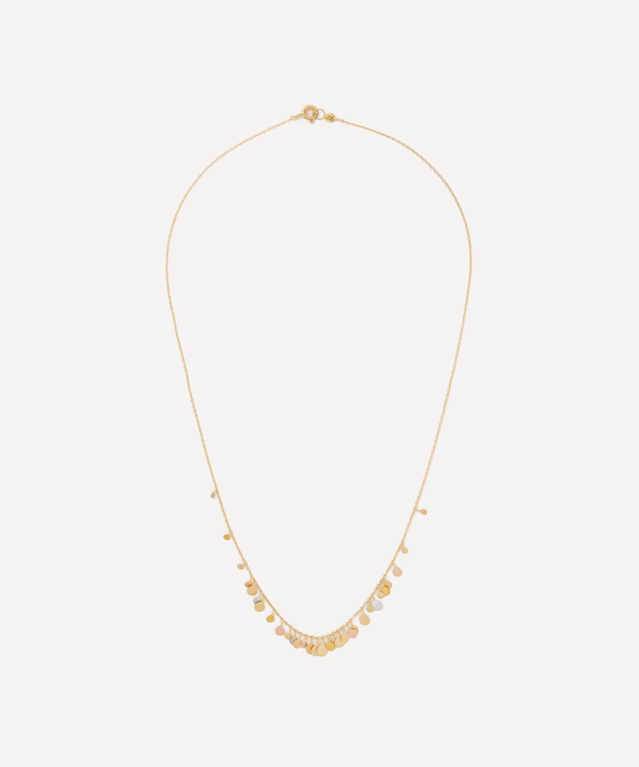 Sia Taylor's designs reflect a preoccupation with the natural world through her fresh interpretations of organic shapes and silhouettes. Handcrafted in the designer's London studio, this fine chain necklace is part of the brand's Songbird collection and features a cluster of tiny gold, rose gold, white gold and platinum dot charms. An understated addition to any jewellery curation, it styles beautifully alone or layered with other favourites.
