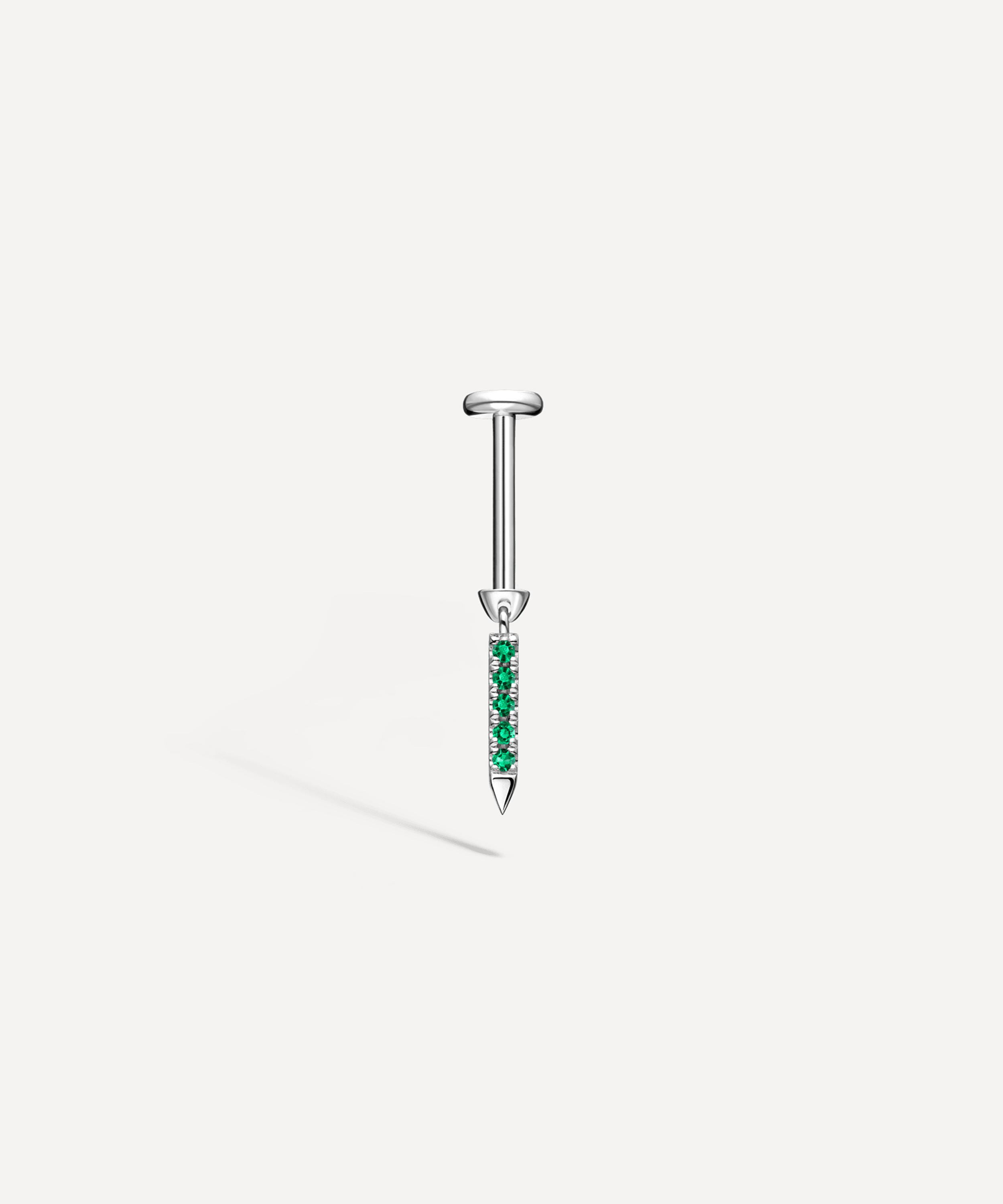 Part of the Emerald capsule collection, this bar charm stud earring showcases a colourful update on a signature Maria Tash design. Explore your favourite styles now available with dazzling green emeralds.