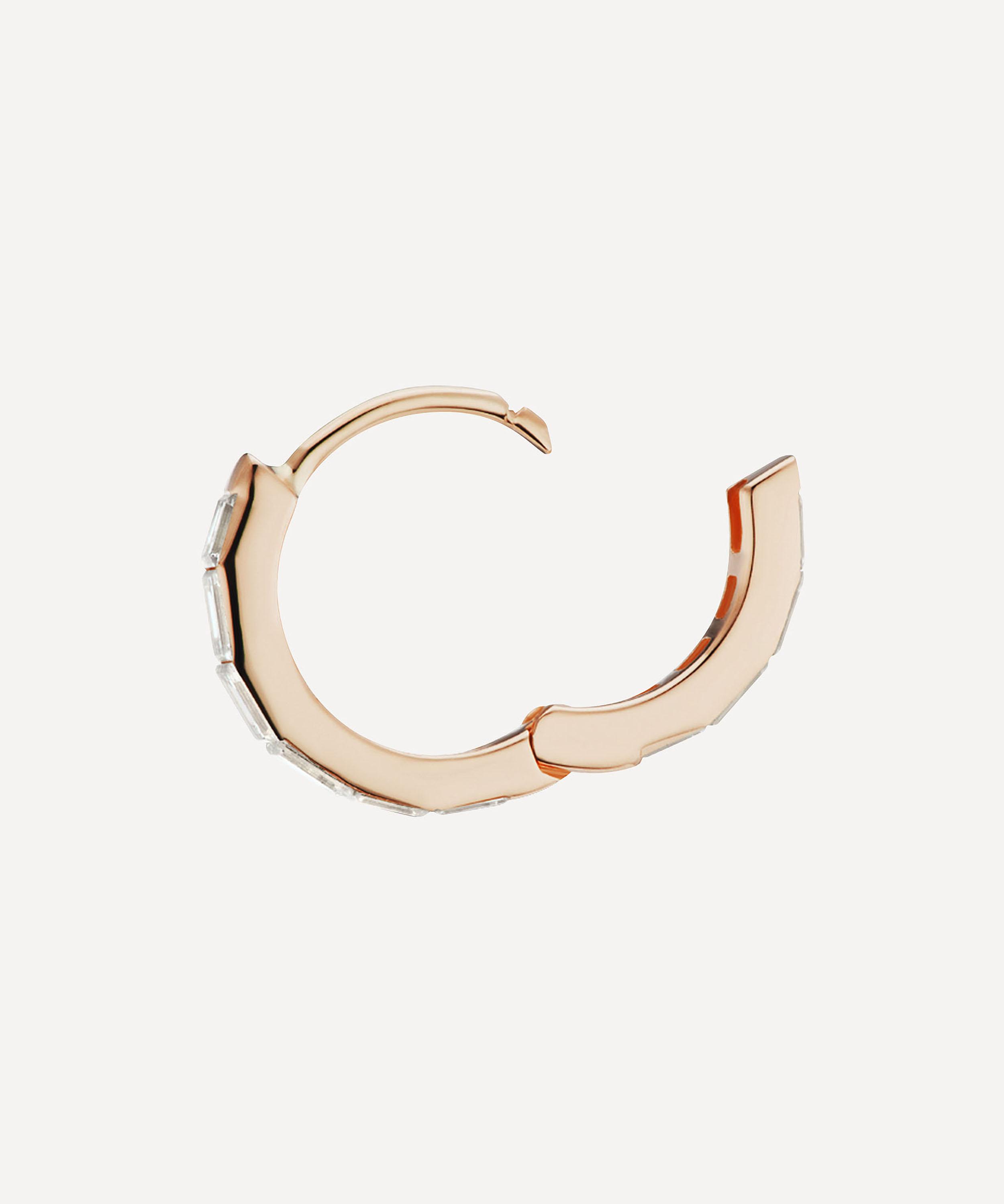 A sleek update on a signature Maria Tash design, this baguette diamond hoop earring is perfect for stacking or styling alone.
