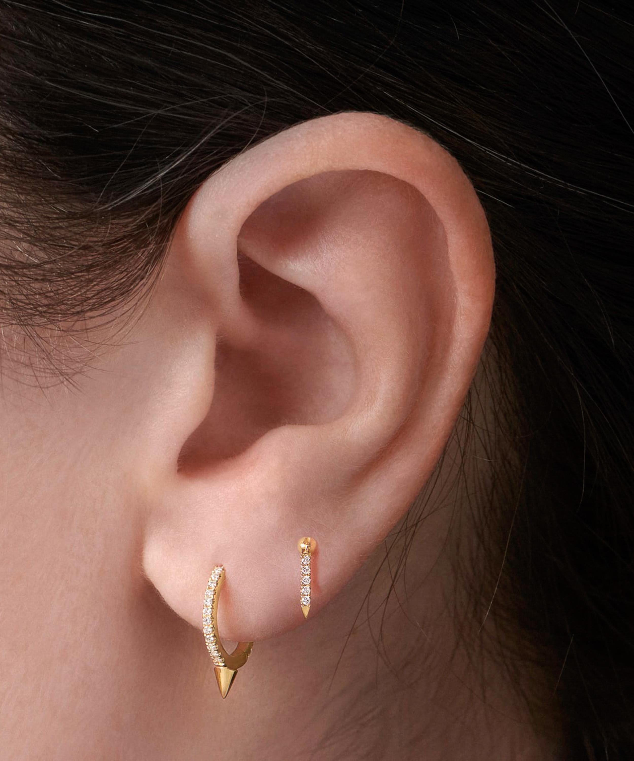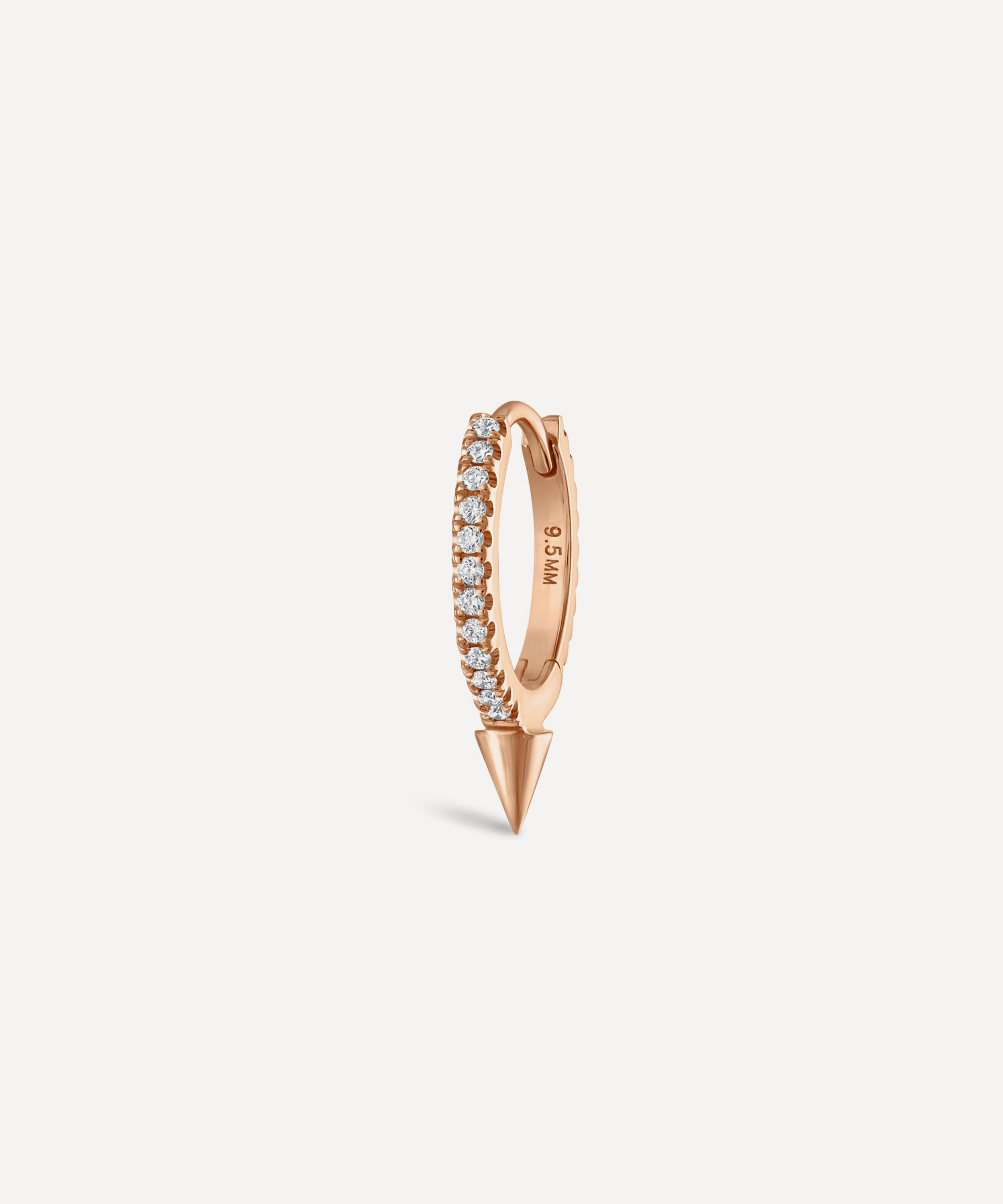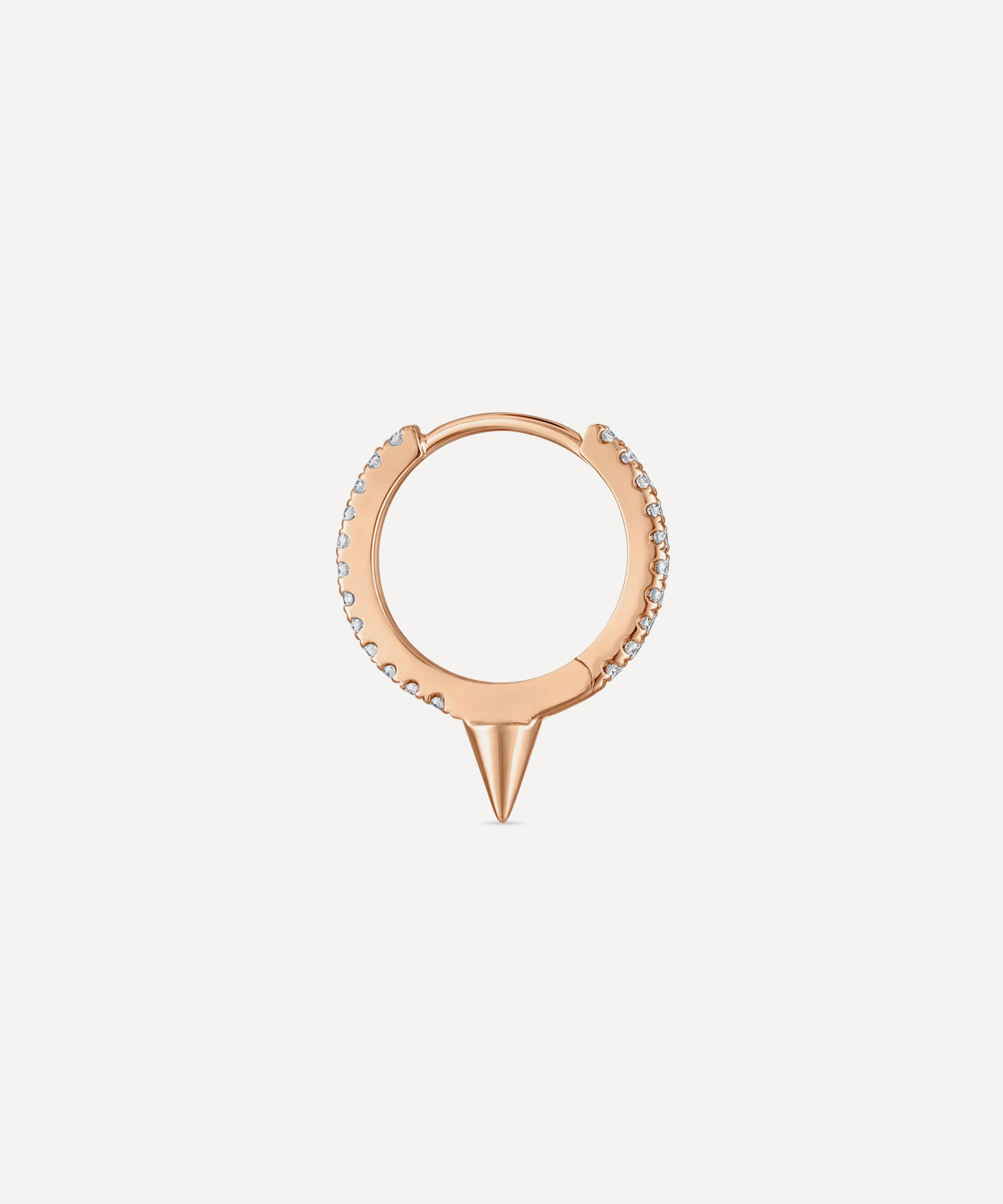 An elegant fusion of two signature Maria Tash designs, this diamond eternity hoop earring is adorned with a single pointed spike.