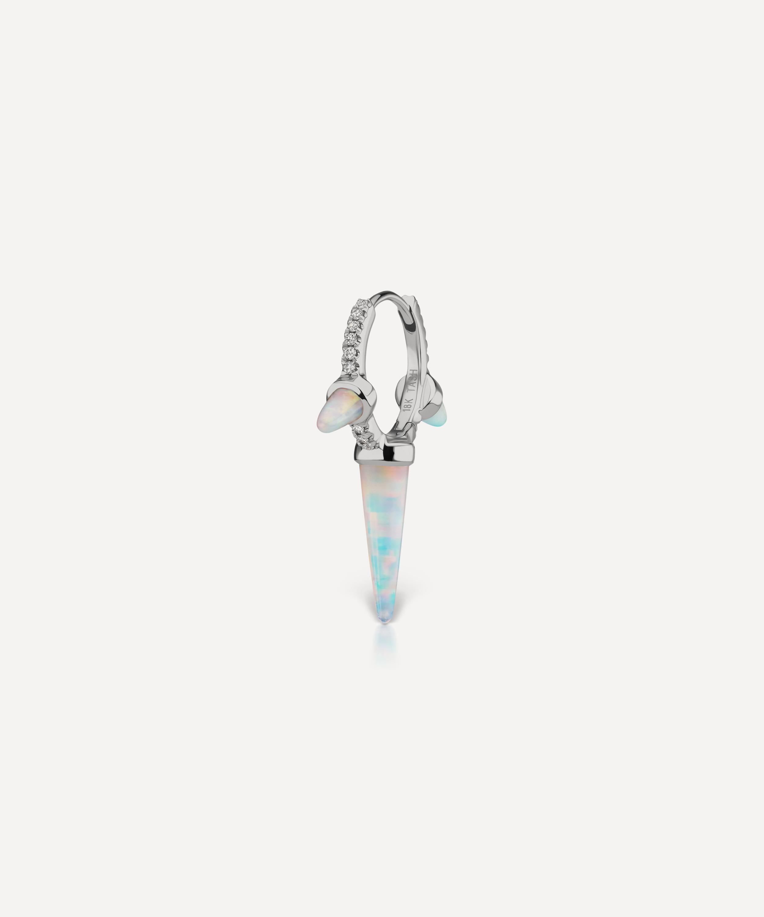 An elegant fusion of two signature Maria Tash designs, this diamond eternity hoop earring is adorned with three pointed opal spikes.