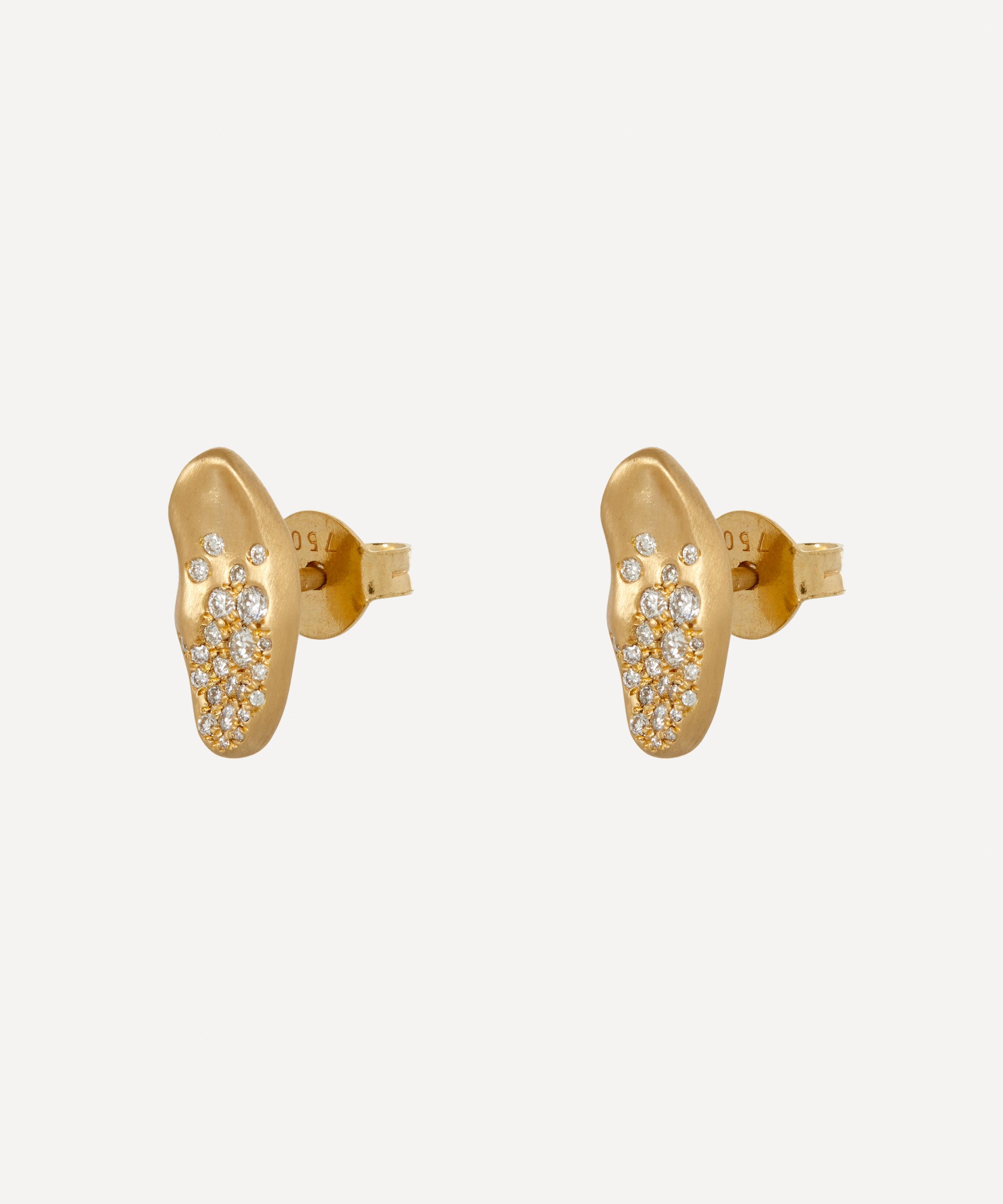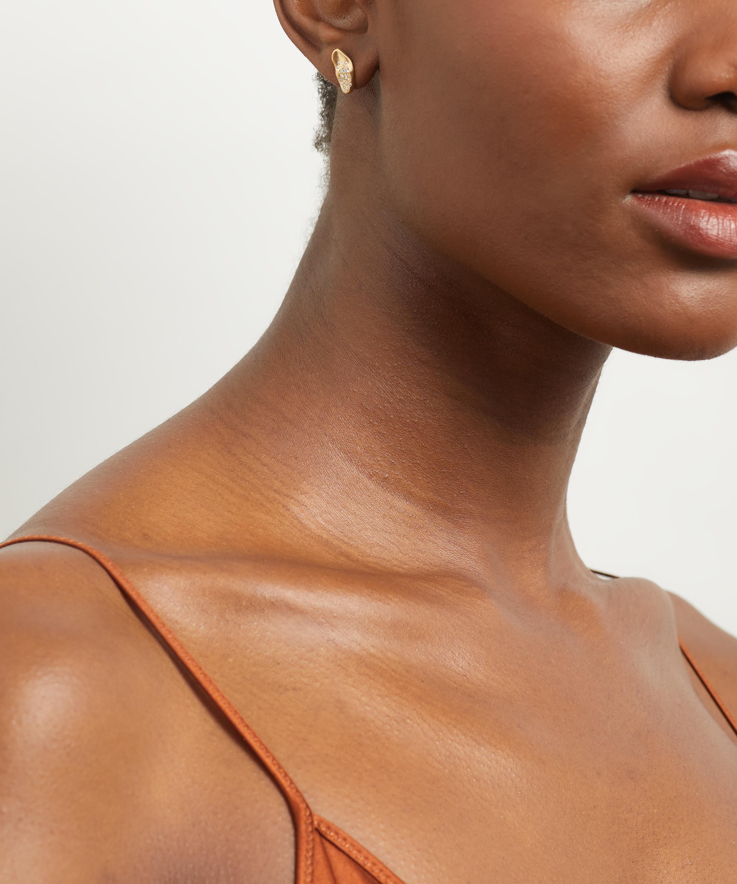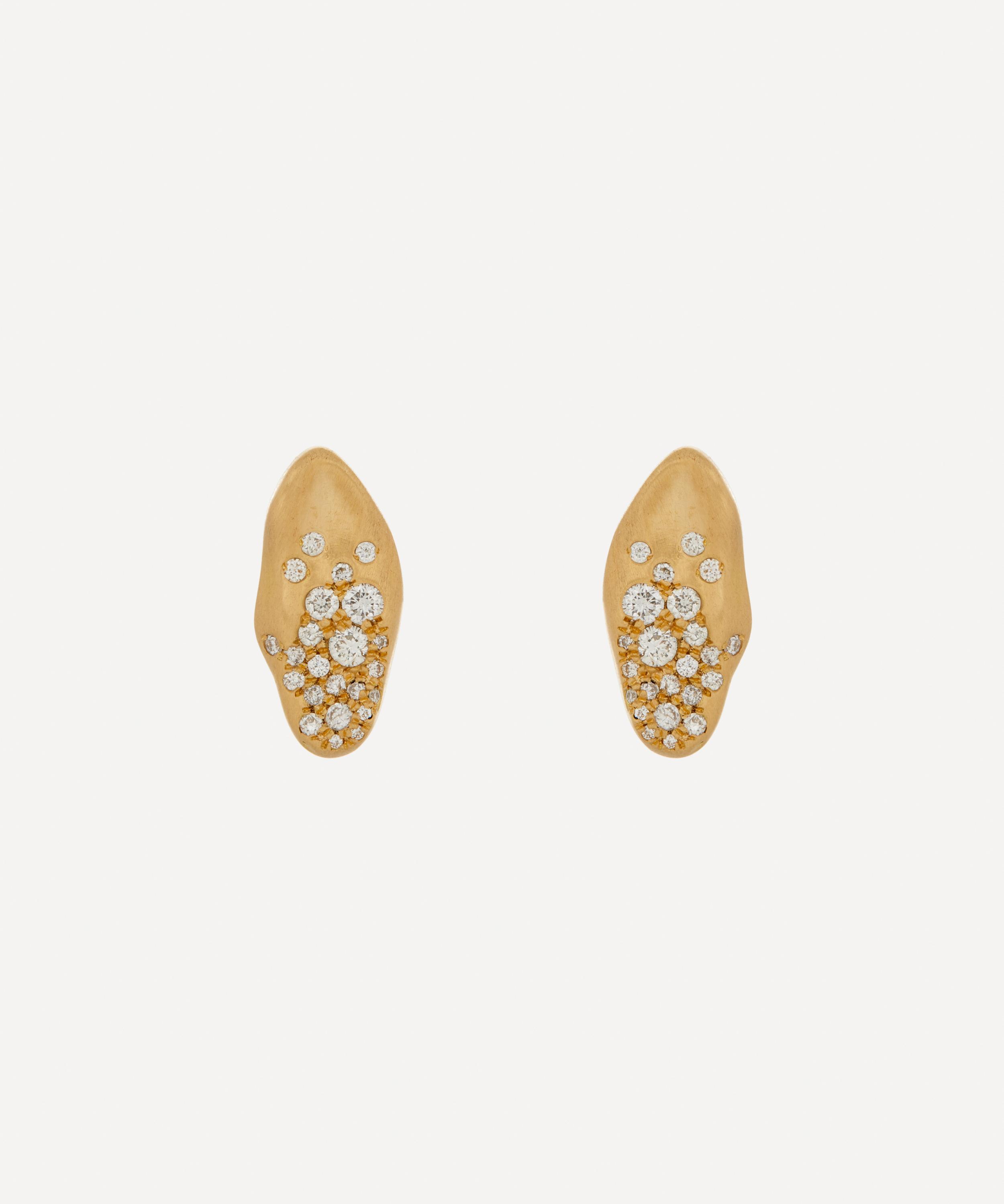 Intricately handcrafted from solid 18 carat gold, each of these earrings is shaped to an organic, marquise silhouette encrusted with a scattering of glittering white diamonds. Imbued with feelings, memories and experiences, each one of Nada Ghazal’s award-winning designs tells a universal story. Take style cues from the brand and layer the designer’s bold feminine pieces together to build on your own powerful narrative.