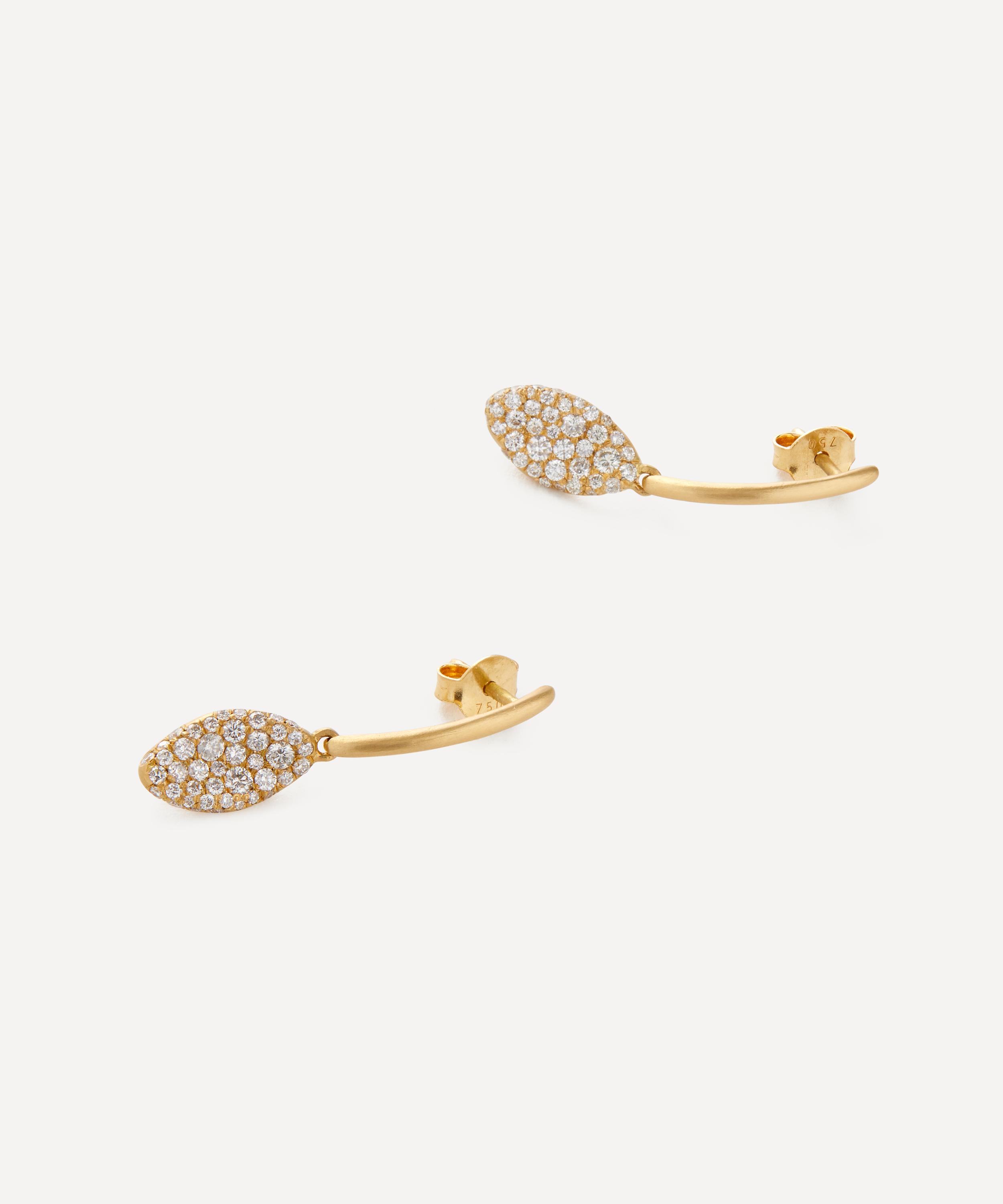 Intricately handcrafted from solid 18 carat gold, each of these earrings features a marquise drop encrusted with glittering white diamonds. Take style cues from the brand and layer the designer’s bold feminine pieces together to build on your own powerful narrative.