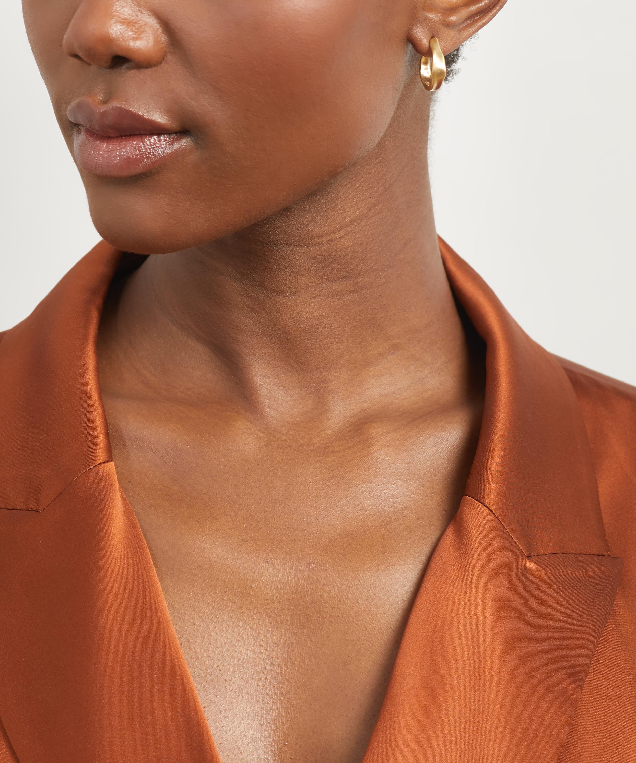 Intricately handcrafted from solid 18 carat gold, each of these hoop earrings is shaped to an organic silhouette with matte satin finishing. Imbued with feelings, memories and experiences, each one of Nada Ghazal’s award-winning designs tells a universal story. Take style cues from the brand and layer the designer’s bold feminine pieces together to build on your own powerful narrative.