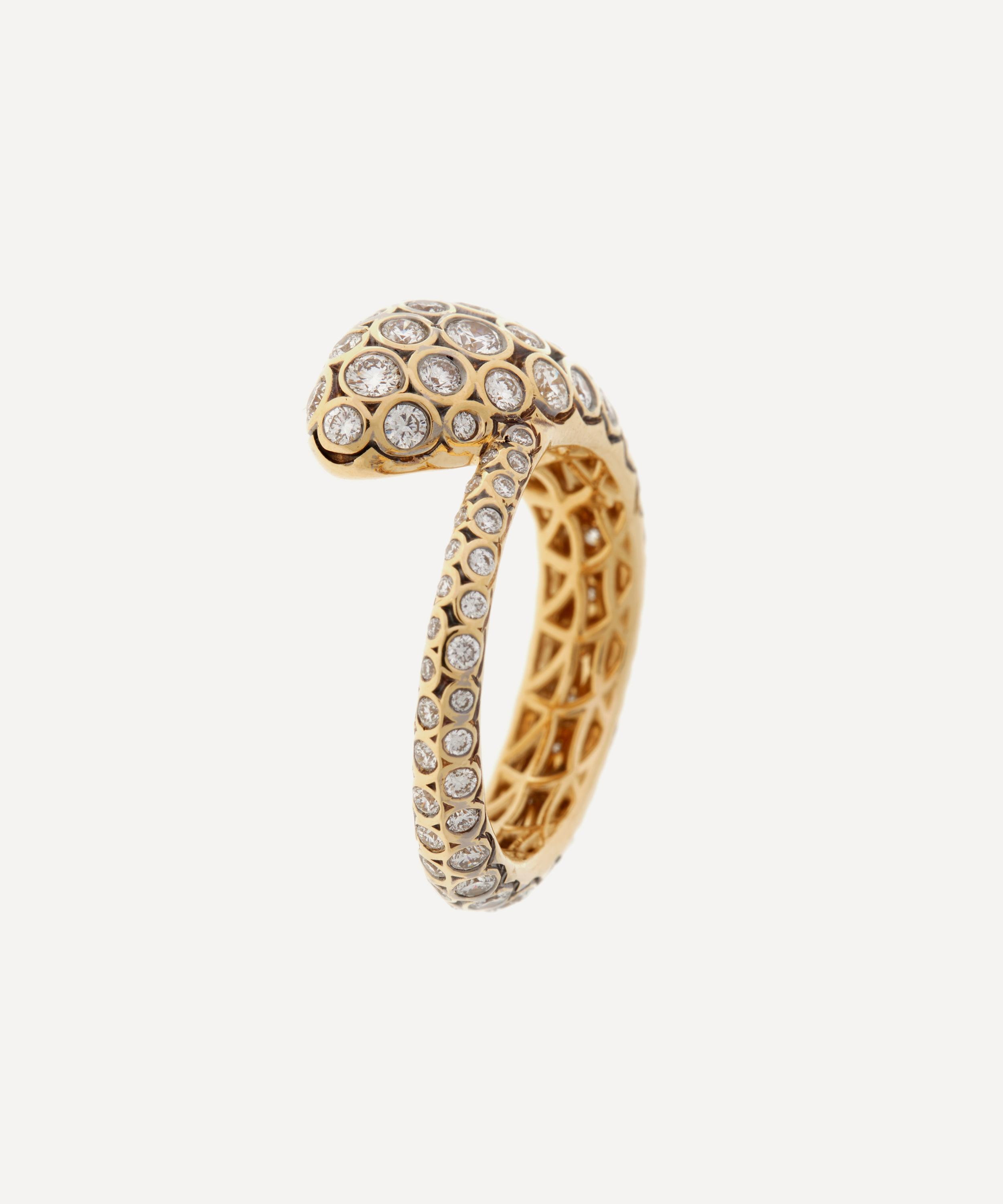 Designed in homage to the king of snakes, this Basilik ring from Selim Mouzannar is bound to enhance any ensemble with an opulent edge. Handcrafted from 18ct gold, the sleek serpent design is encrusted with rows of sparkling diamonds. Pair it with other pieces from the brand’s collections, or wear it solo for a striking statement look.