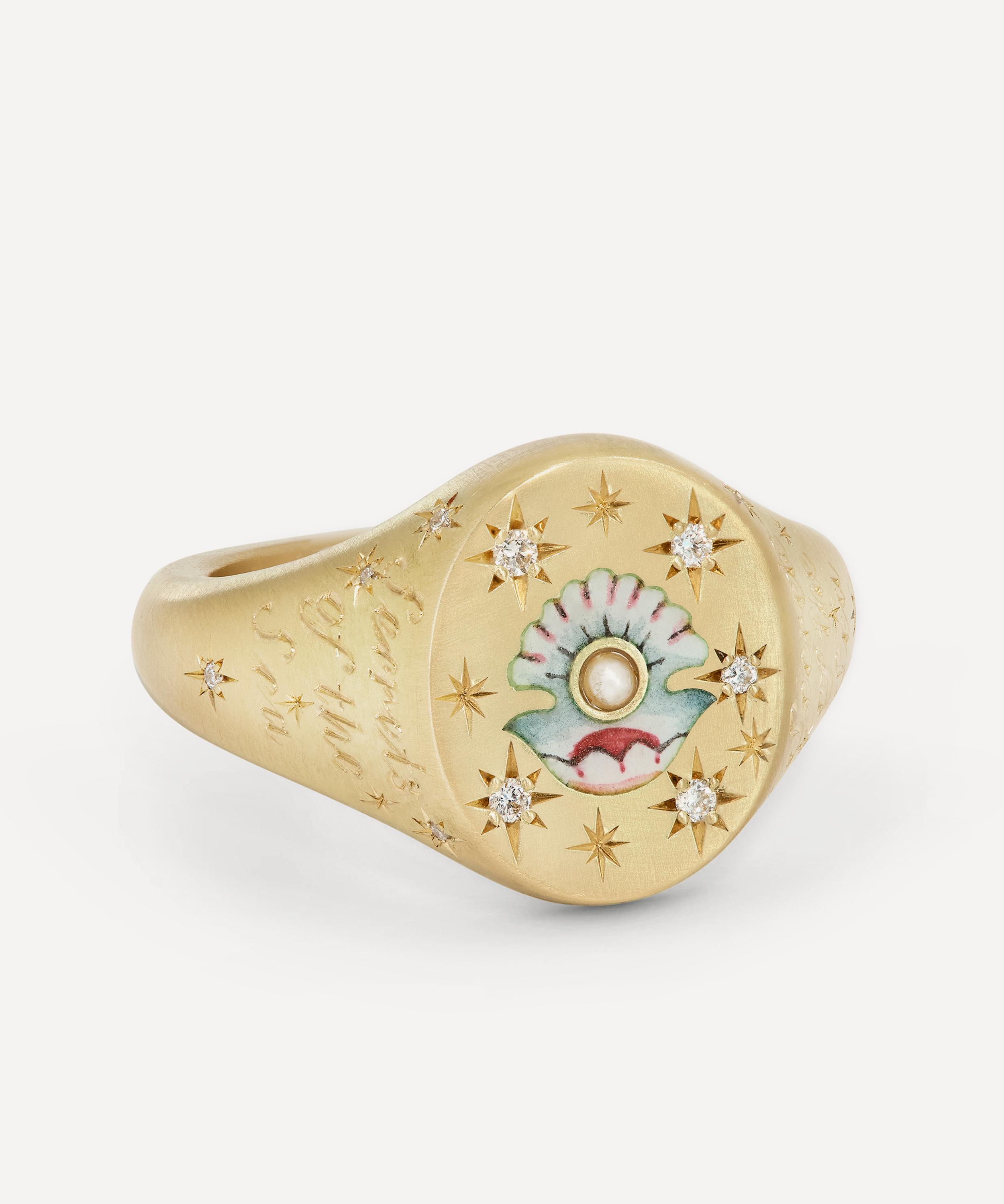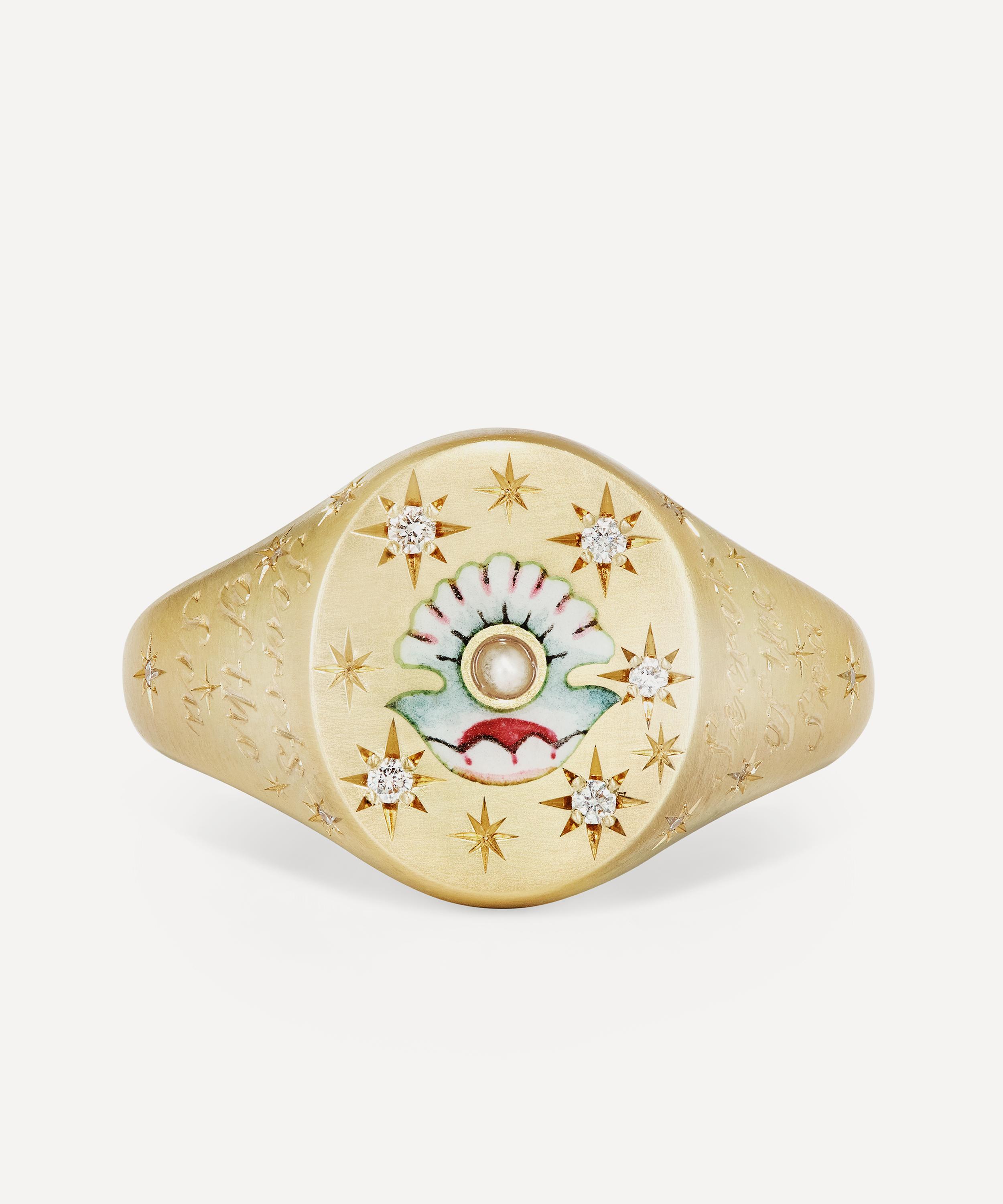 Inspired by the dreamy paradise inside Botticelli’s The Birth of Venus, the Clam and Pearl signet ring is a talisman of divinity and beauty from Cece - the art historian turned jeweller who draws on ancient stories and fairytales to create mystical heirloom jewellery.