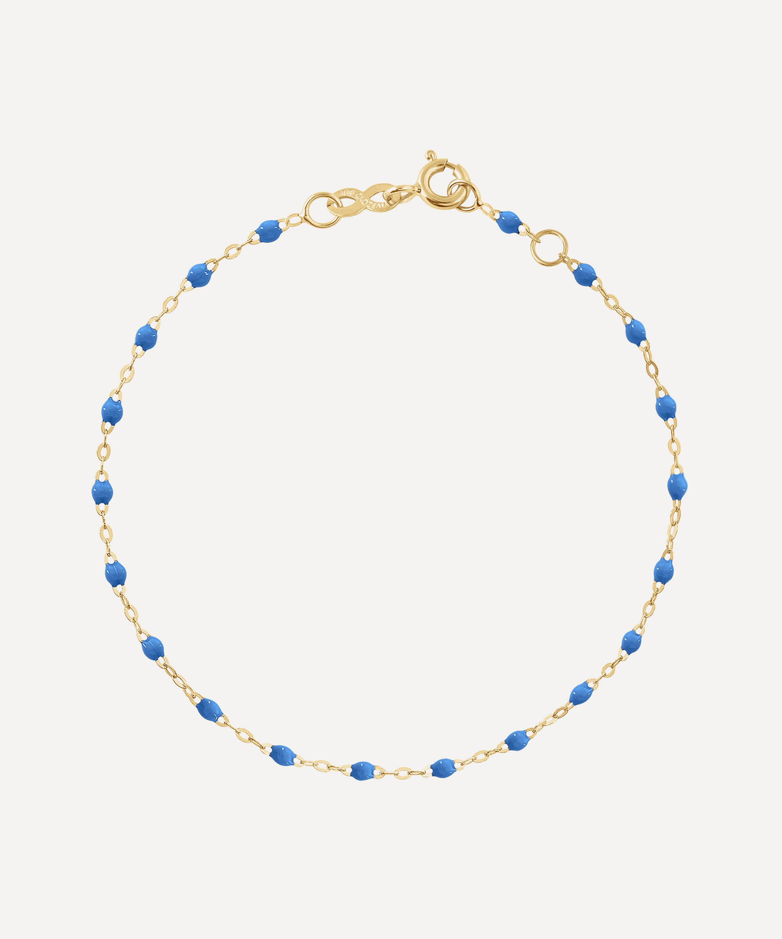 Exemplifying the brand’s signature style, this bracelet is artisanally made from 18ct gold in the family-owned workshop, featuring a classic link chain adorned with colourful resin beads – inspired by the bracelet Gigi was given at birth by her father. Available in a range of different shades, try layering multiple bracelets together for a striking wrist stack.