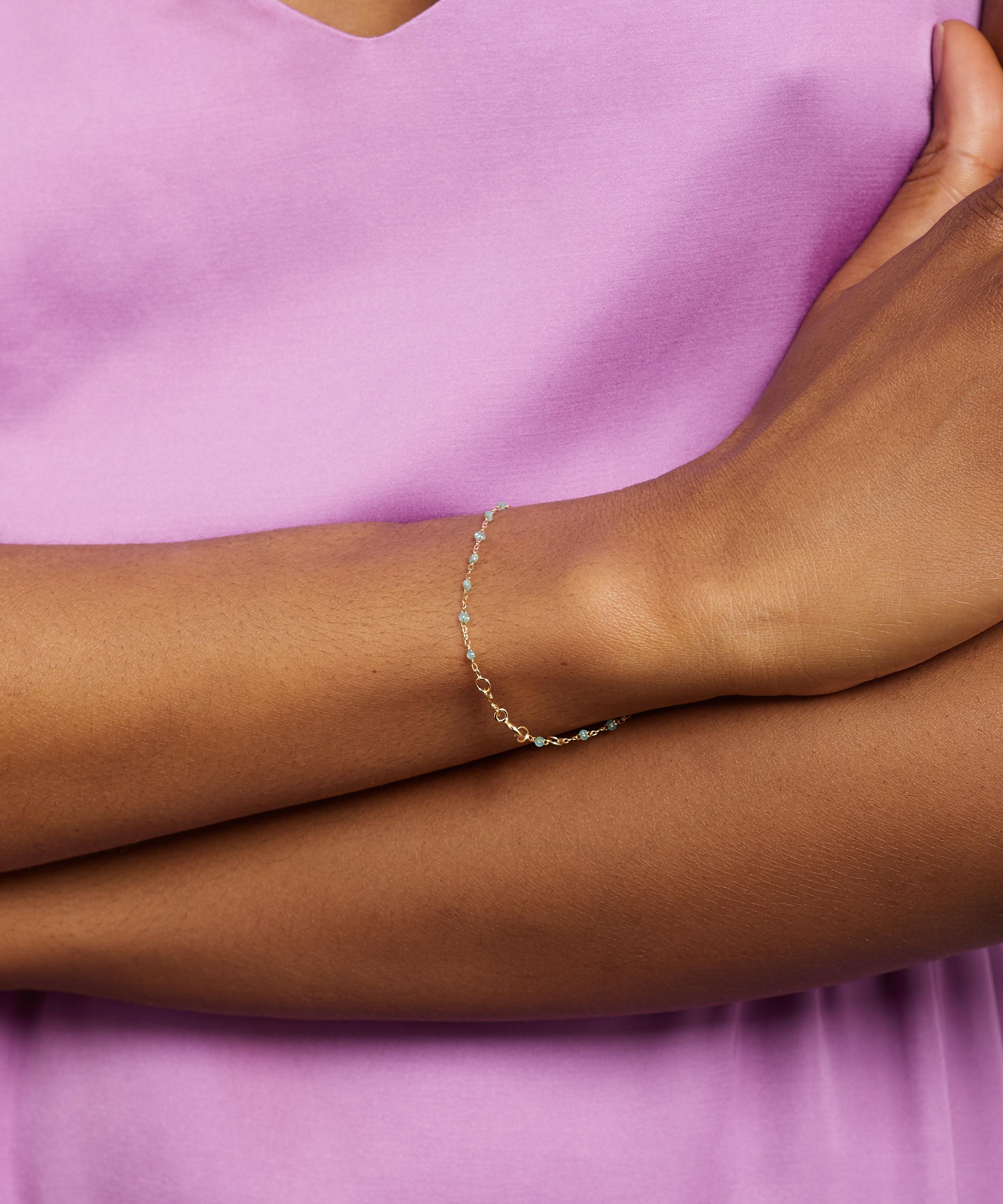 Exemplifying the brand’s signature style, this bracelet is crafted from 18ct gold, featuring a classic link chain adorned with light blue resin beads. Available in a range of different shades, try layering multiple bracelets together for a trend-led, yet beautifully simple edit.