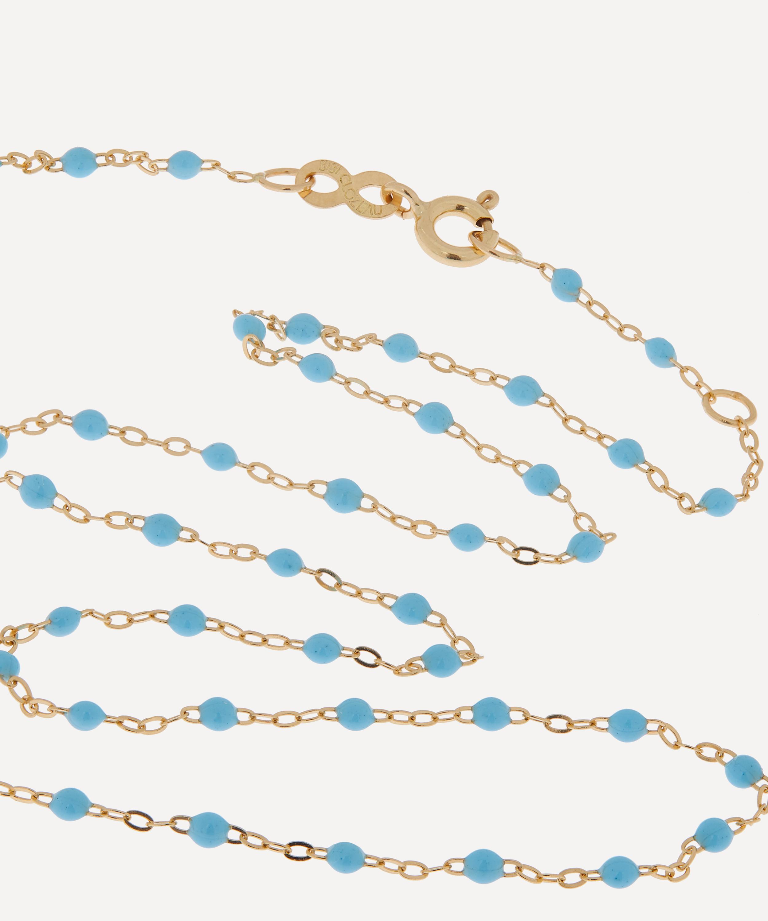 Exemplifying the brand’s signature style, this necklace is crafted from 18ct gold, featuring a classic link chain adorned with turquoise resin beads – inspired by the bracelet Gigi was given at birth by her father. Available in a range of different shades, try layering multiple necklaces from the brand for a trend-led, yet beautifully simple edit.