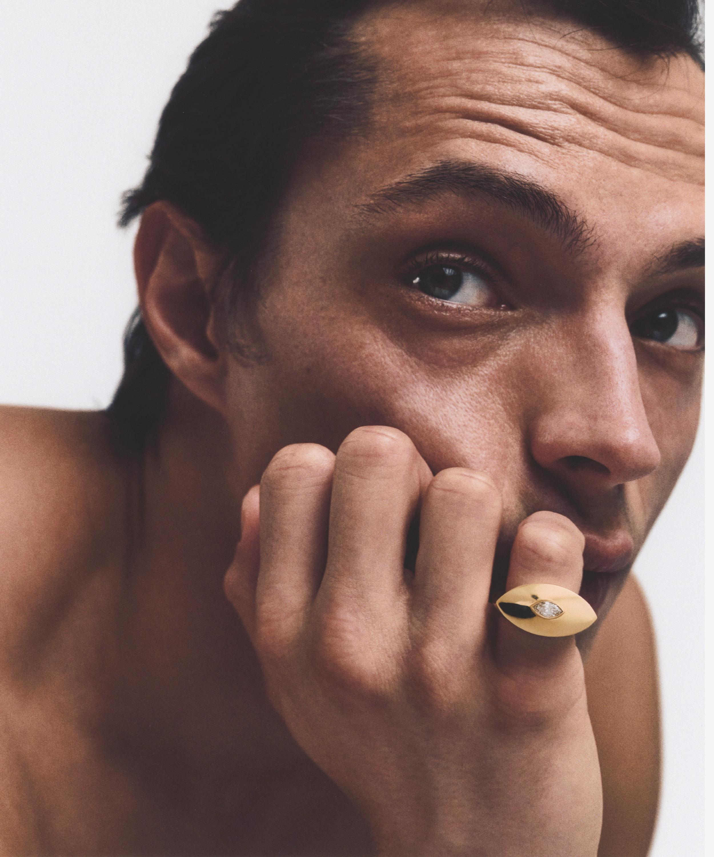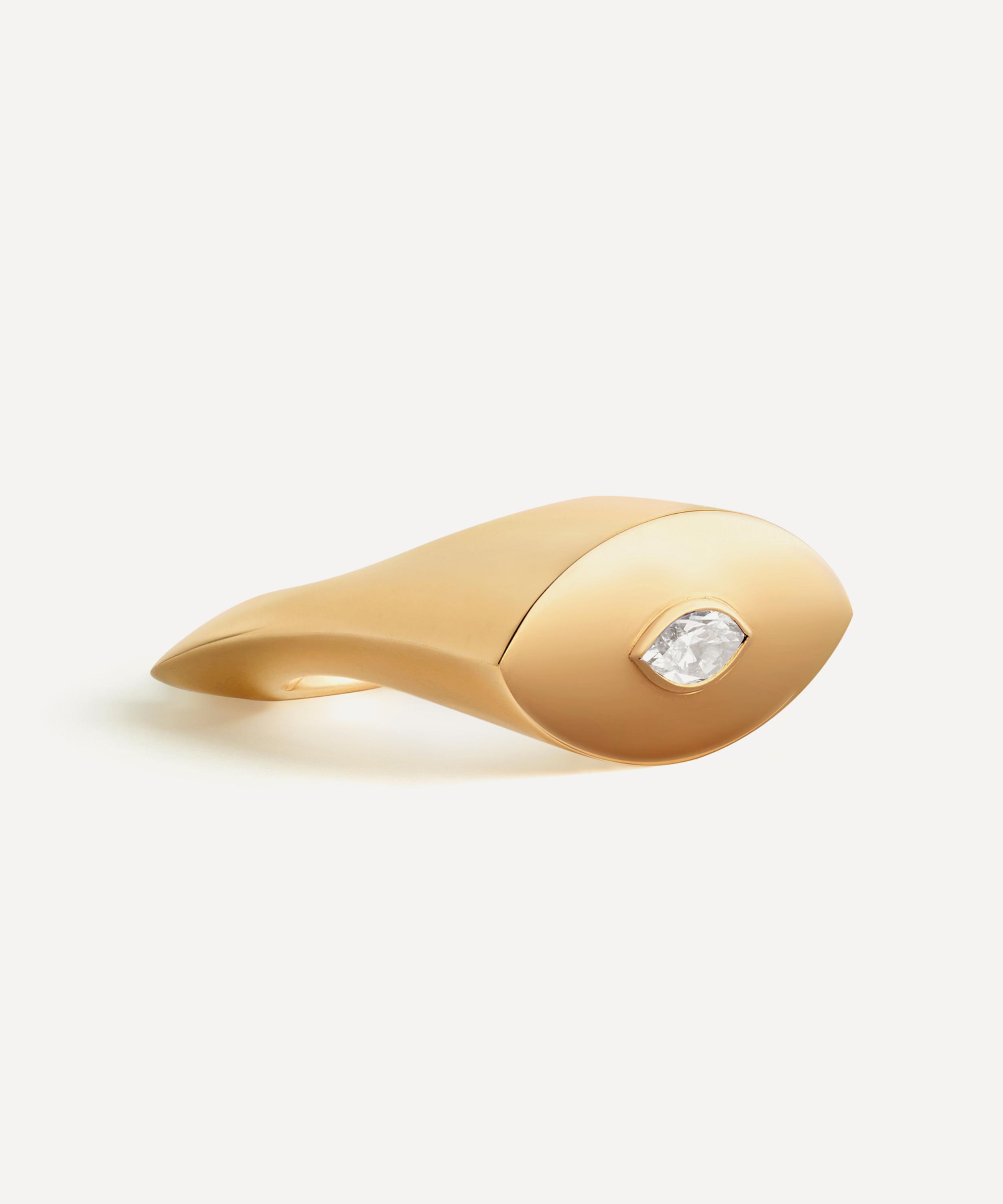 Crafted from 18ct gold, it features a signet-inspired silhouette and evil eye design with a diamond centre stone. Presenting a true statement piece, this ring shines bright on its own, but looks equally alluring when teamed with other pieces from the brand for a stand-out curation of modern heirlooms.