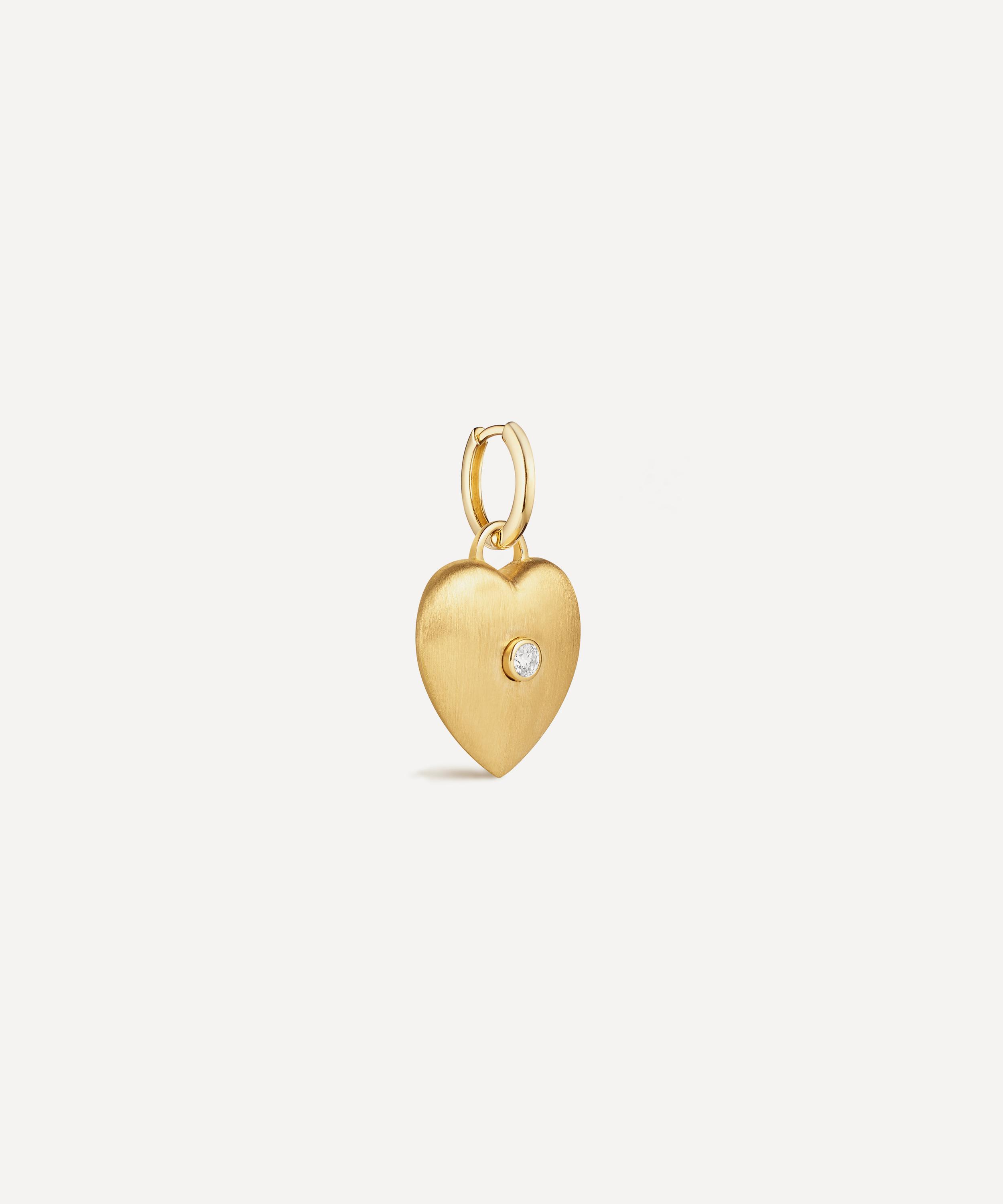 Adorn a plain necklace or hoop with this intricate charm from Marie Lichtenberg. Crafted from brushed 18ct gold, it features a heart adorned with a single white diamond. Complete with a bail clasp, it will effortlessly brighten up any jewellery edit with its playful spirit.