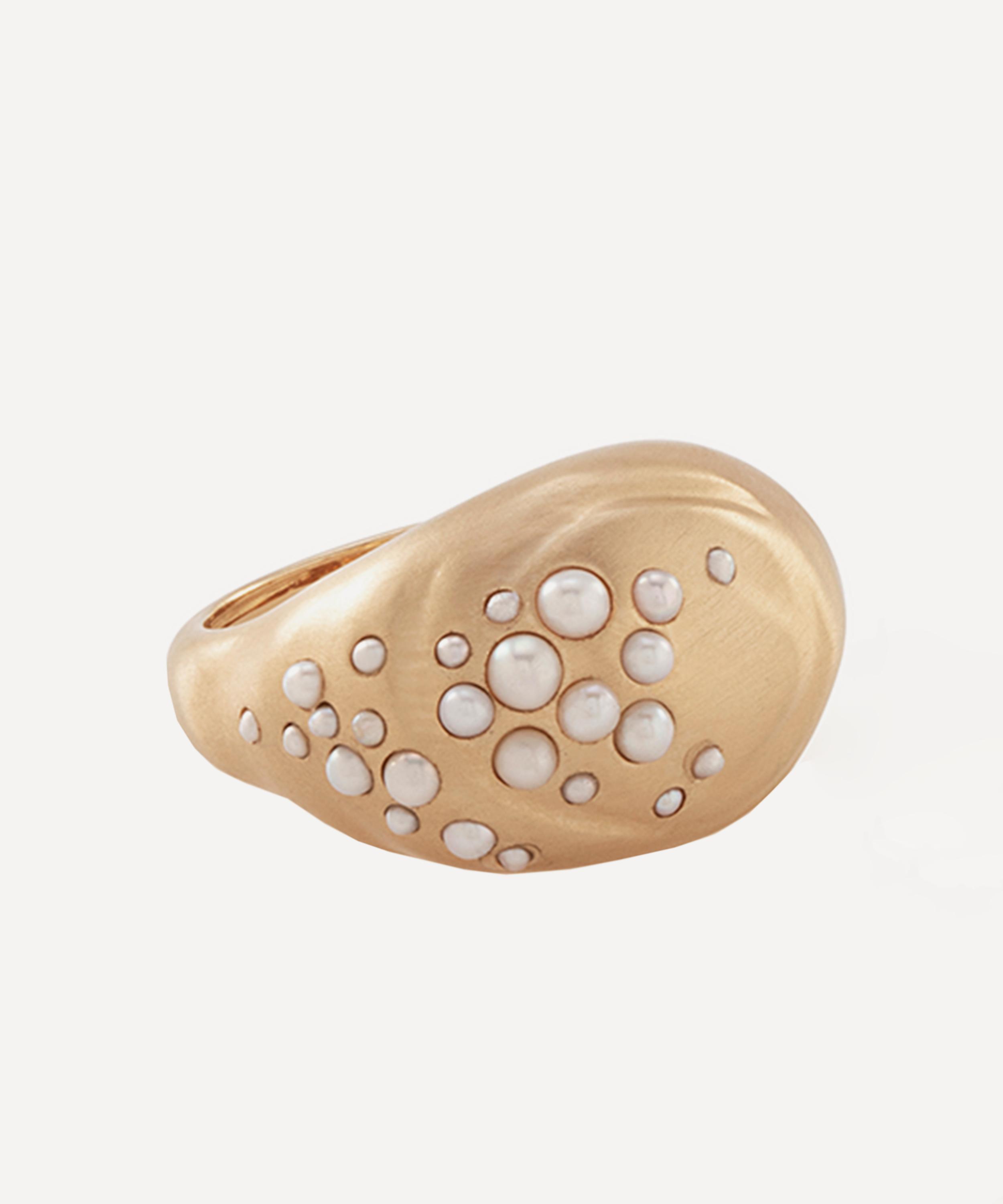 Infusing your look with a bold femininity, Nada Ghazal’s Drop Pearl Oval ring will become a staple in your collection. Crafted from 18ct gold, it features a tapered band and oval, domed silhouette adorned with a scattering of opulent pearls. Take style cues from the brand and layer the designer’s bold feminine pieces together to build on your own powerful narrative.