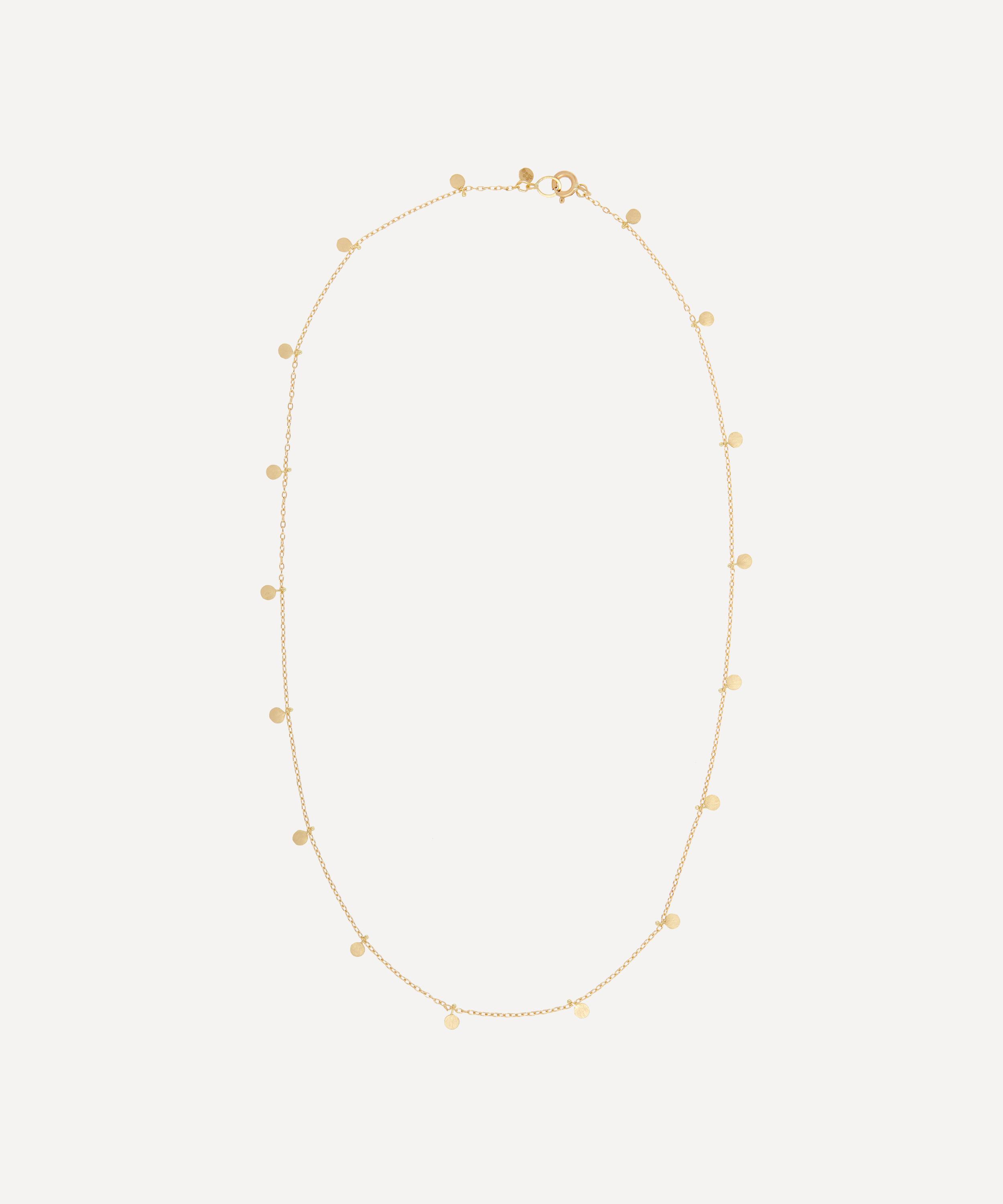Sia Taylor's designs reflect a preoccupation with the natural world through her fresh interpretations of organic shapes and silhouettes. Handcrafted in the designer's London studio, this necklace features a fine trace chain with tiny gold dot charms spaced evenly along its length. An understated addition to any jewellery curation, it styles beautifully alone or layered with other favourites.