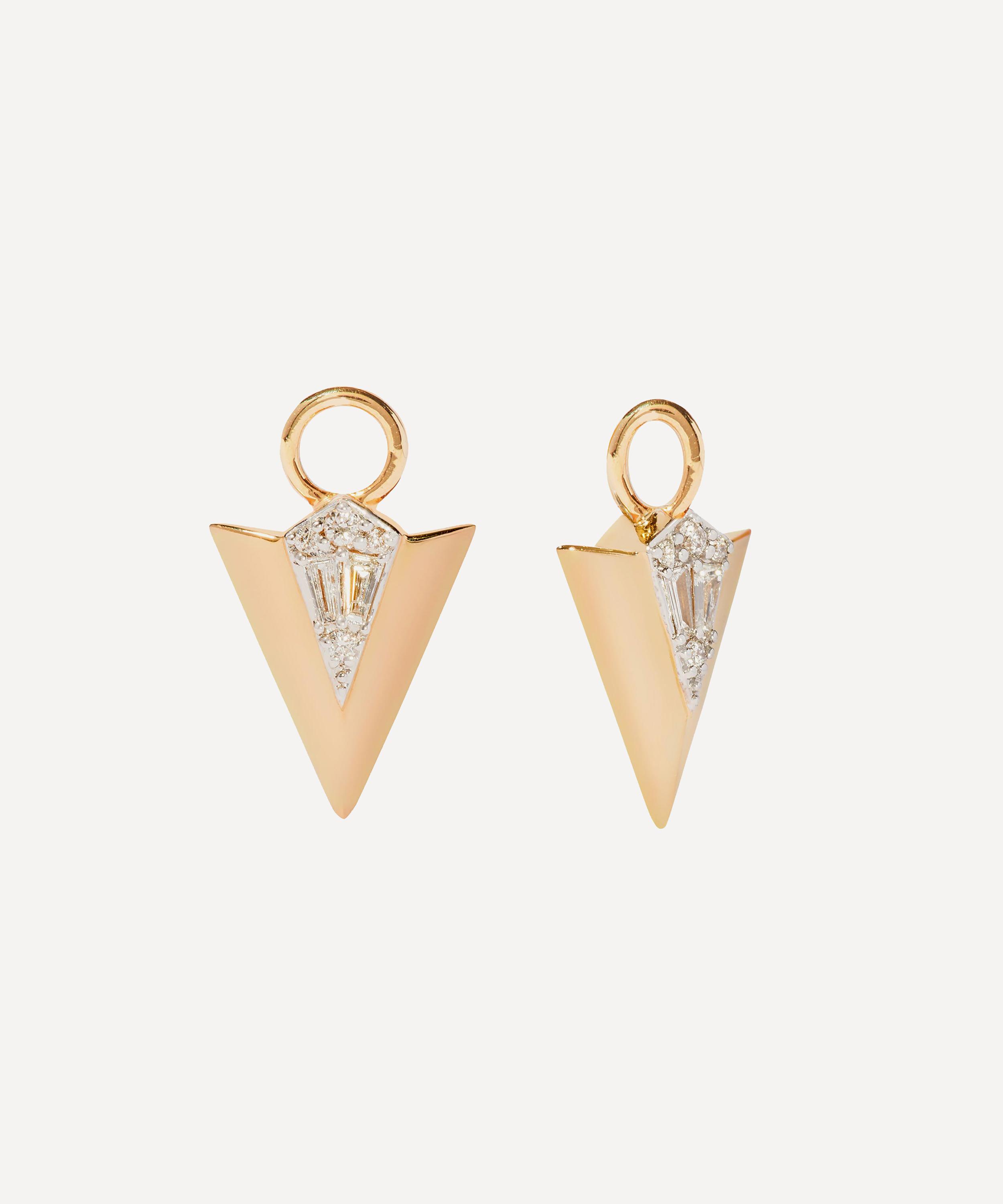 Embrace self-empowerment with these earring drops from Annoushka’s Flight collection – a spirited series of arrows and featherheads inspired by the design of the Art Deco period. Crafted from 18ct gold, each of these drops feature a sculpted, high-polished arrow adorned with twelve, hand-set diamonds – symbolising courage, protection, and peace. Complete with classic top rings, they style beautifully on any Annoushka hoops.