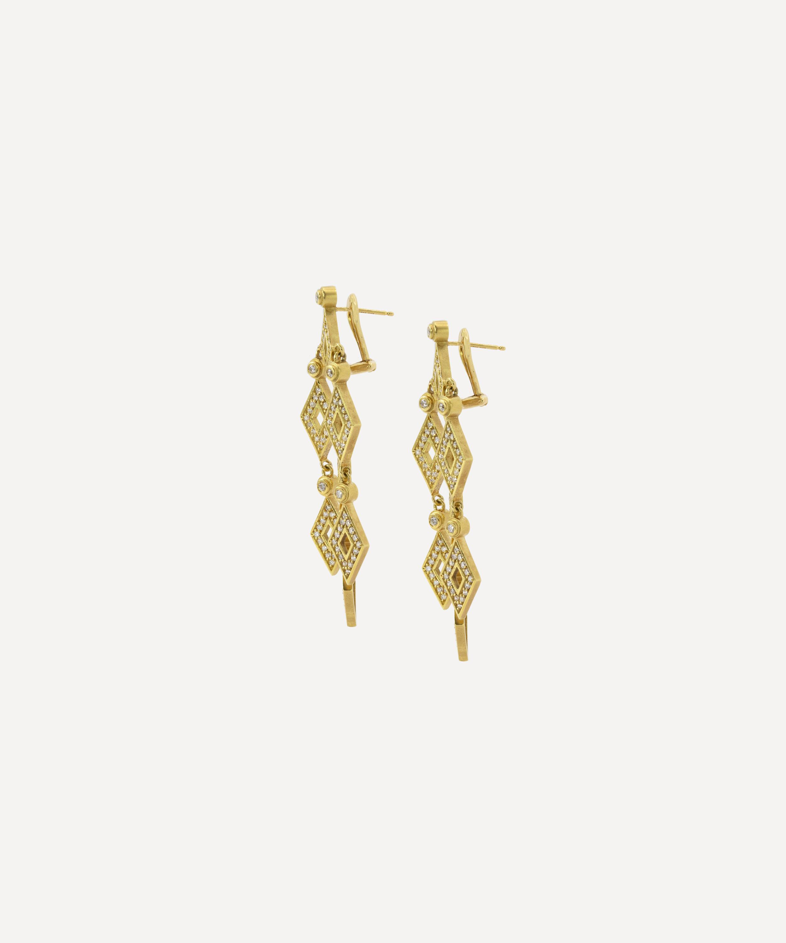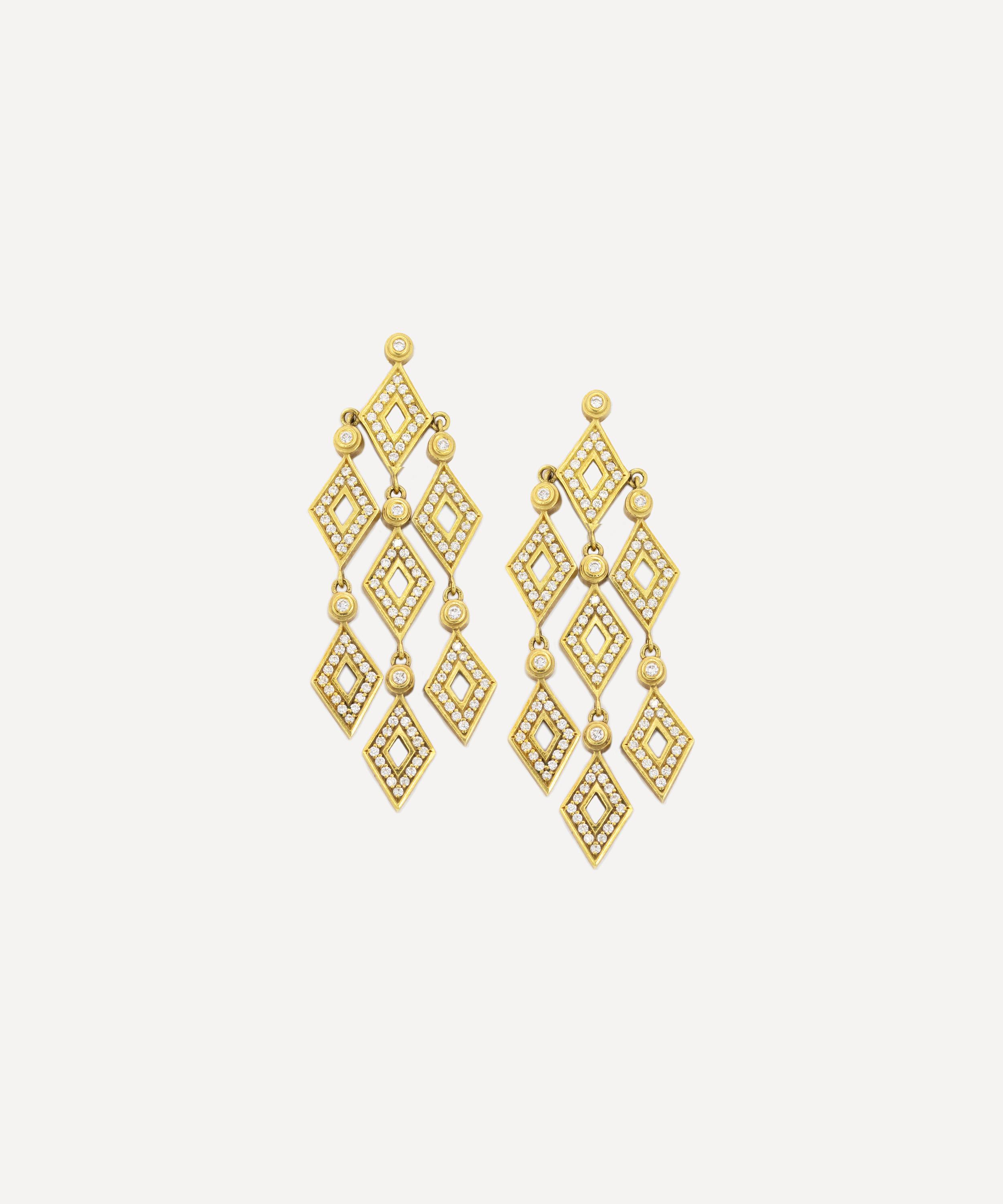 18ct Gold Geometric Diamond Chandelier Drop Earrings