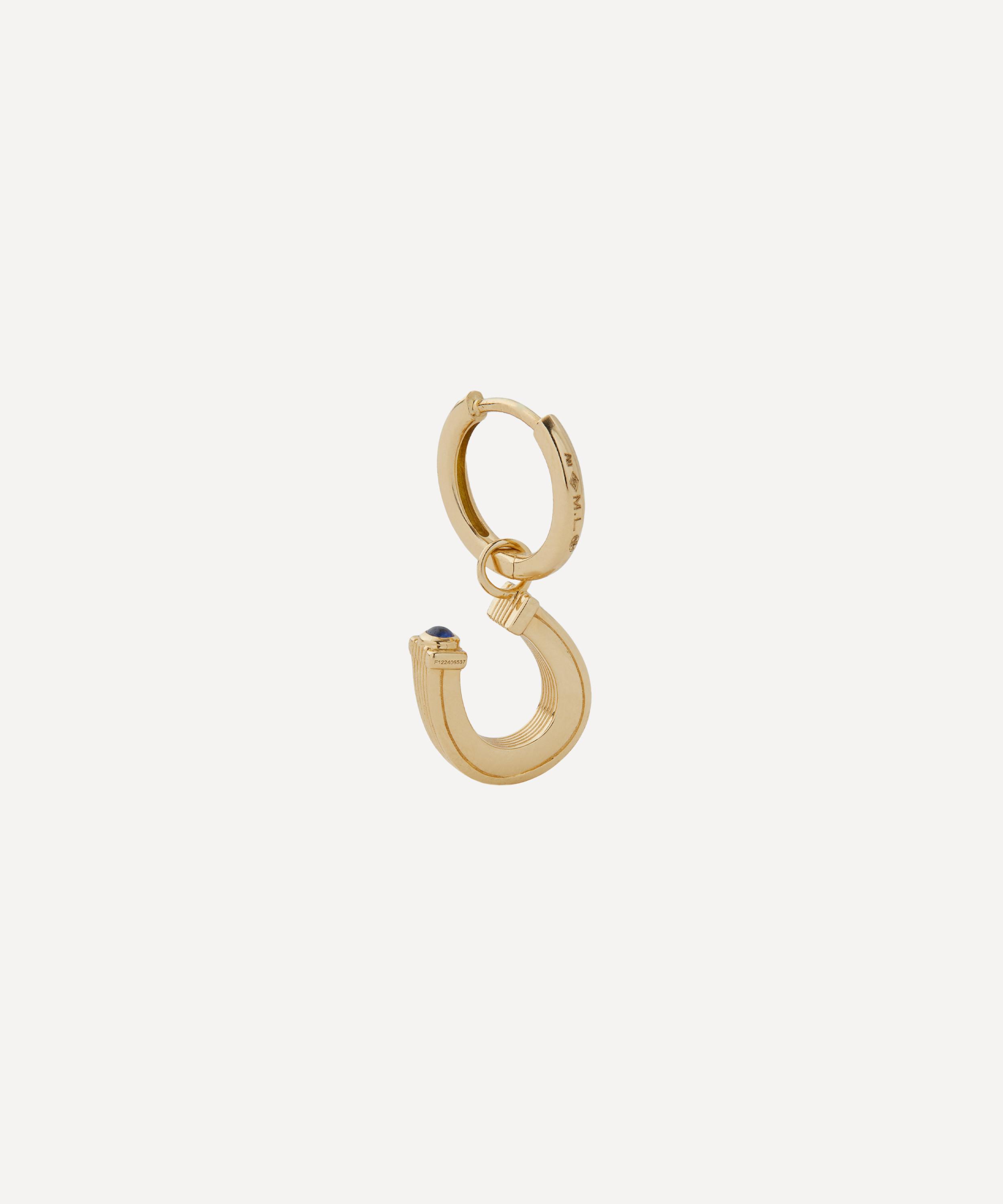 Bring a touch of whimsy to your edit with this single hoop earring from Marie Lichtenberg. Expertly crafted from 18ct gold, it features a horseshoe design accented with a deep blue sapphire. Incorporate into a curated ear stack, or get two for a matching pair.
