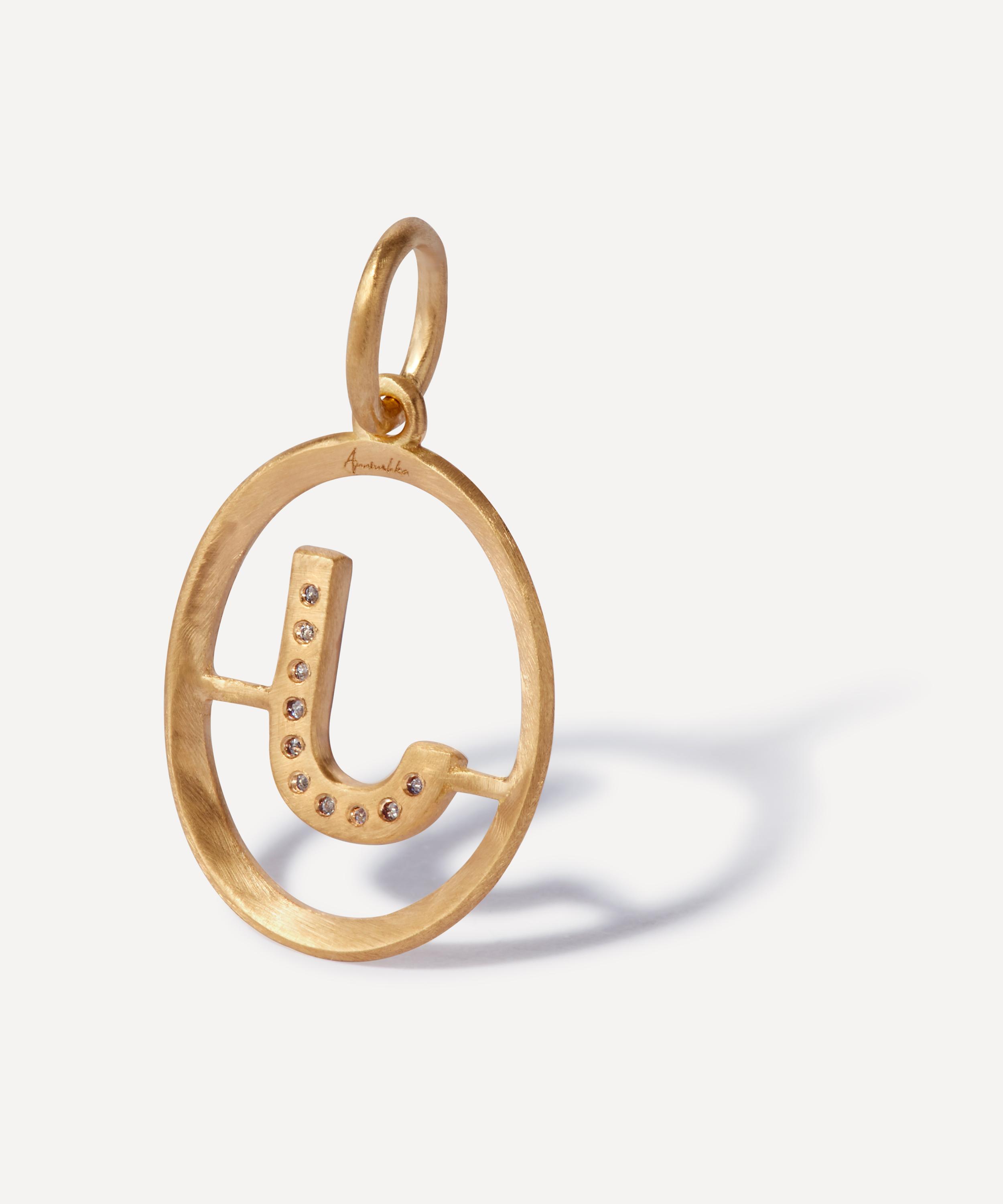 Annoushka offers its signature sophisticated take on alphabet jewellery with the gold Initial pendant – featuring a silver diamond pavé letter fixed inside a gold oval with a soft satin finish.