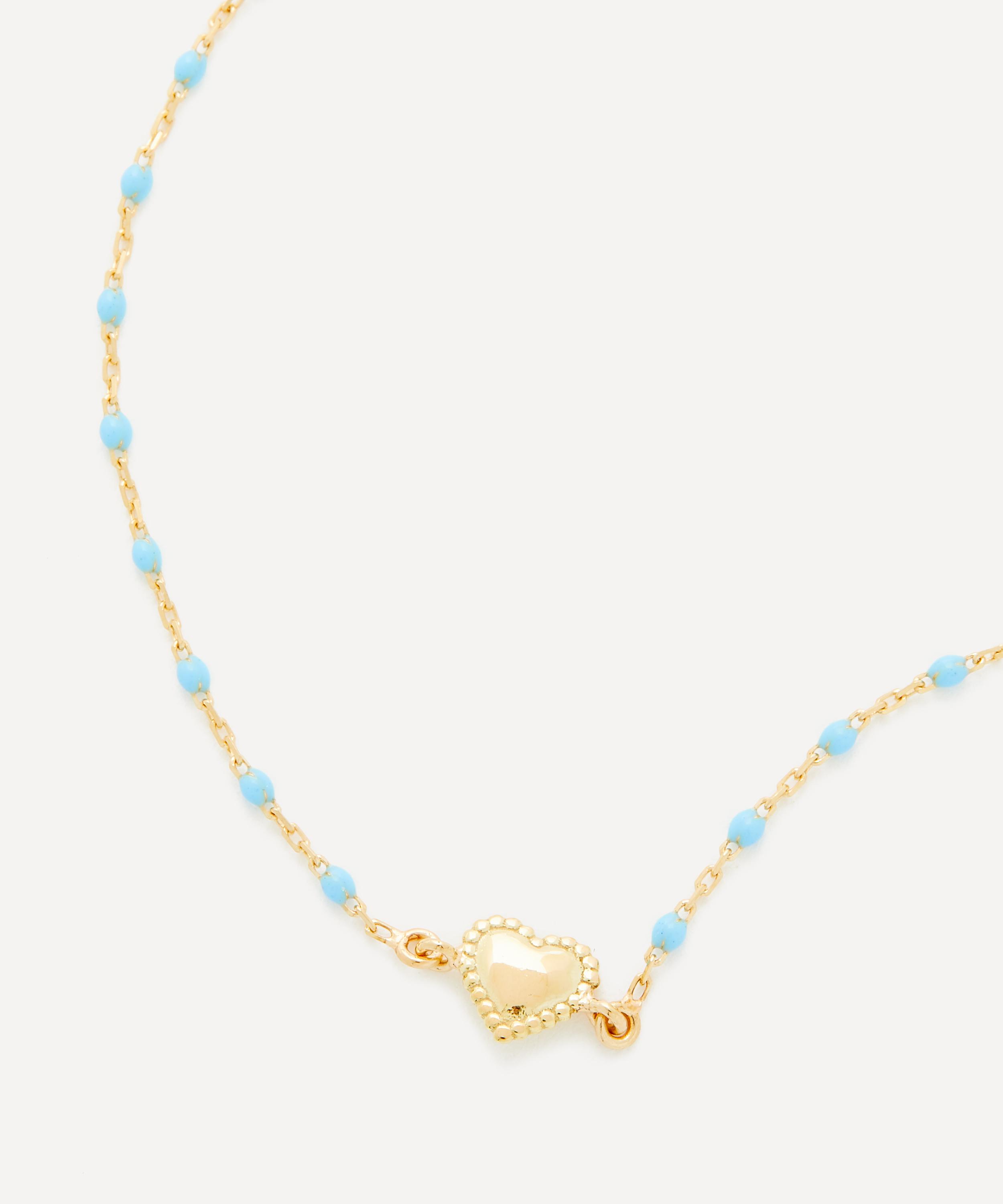 Exemplifying the brand’s signature style, this bracelet is crafted from 18ct gold, featuring a classic link chain adorned with turquoise resin beads and an intricate heart pendant. Designed to be layered, wear this piece with additional bracelets from the brand for a trend-led, yet beautifully simple edit.