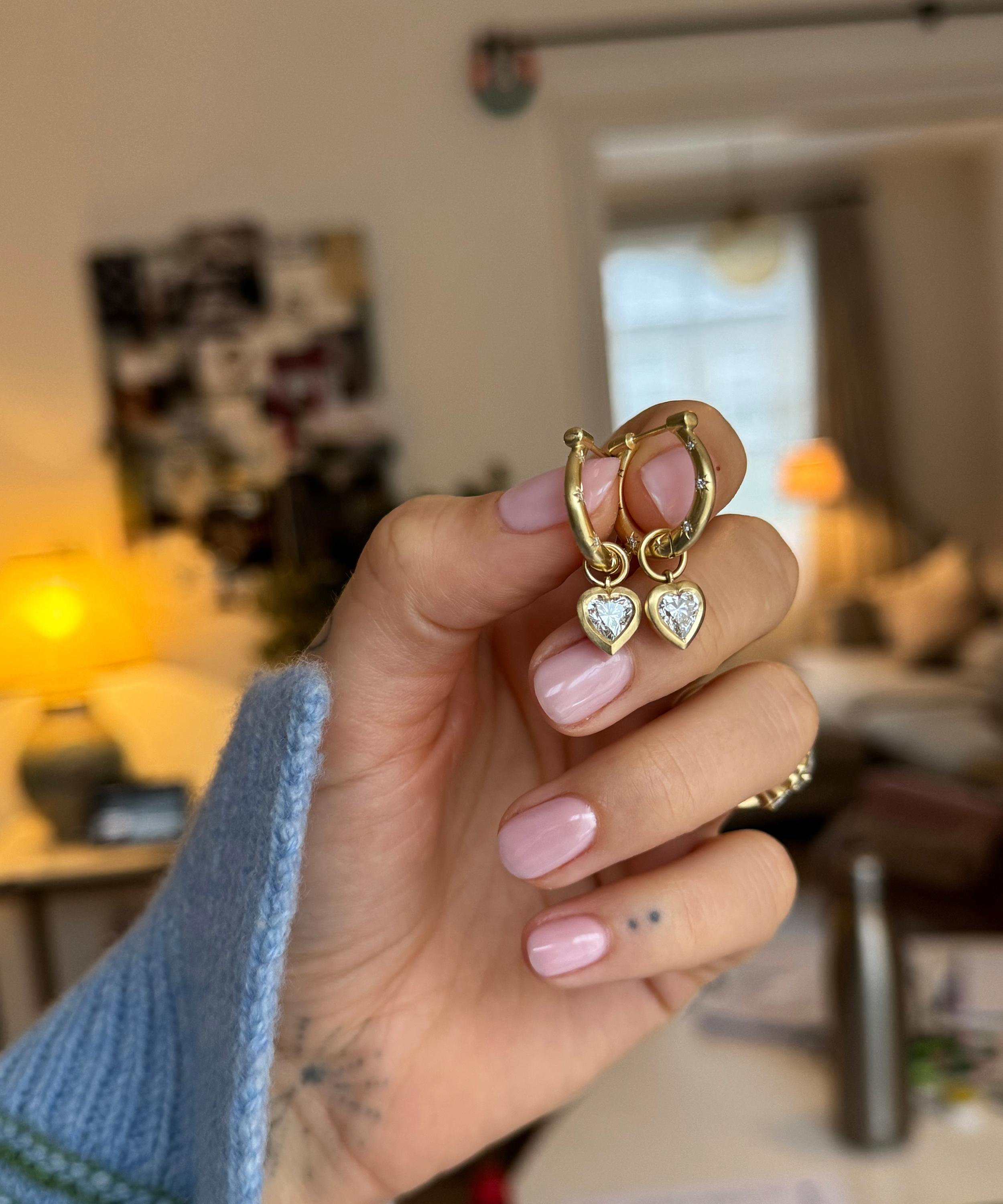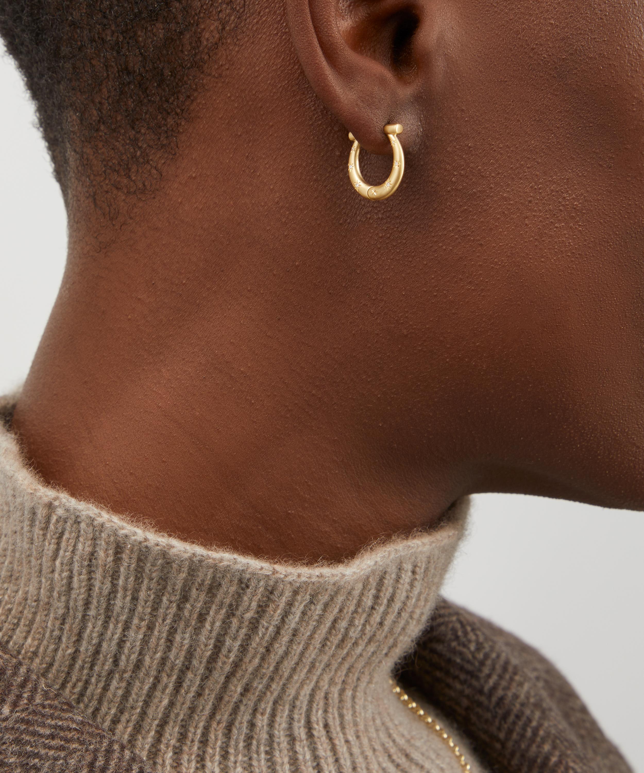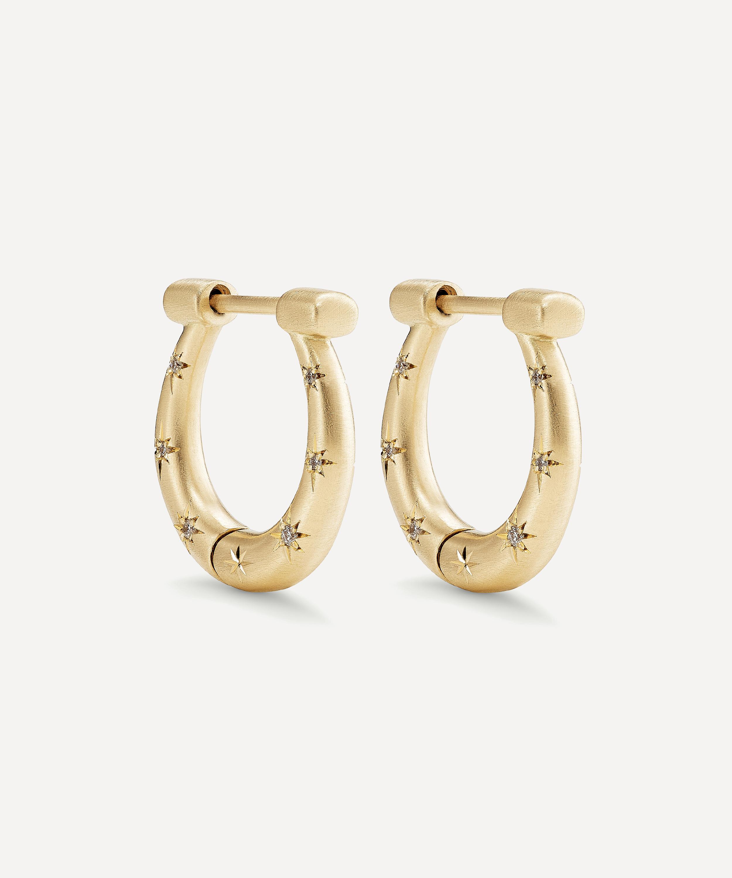 Handmade from 18ct gold, this empowering pair feature a frosted horseshoe design studded with seven star-set, brilliant-cut diamonds – a nod to the age-old Irish proverb that seven iron nails wards off evil spirits. Boasting a symbol of luck and protection, wear your versatile Horseshoe Hoops as they are, incorporate them into an ears stack, or add charms for a personal twist.