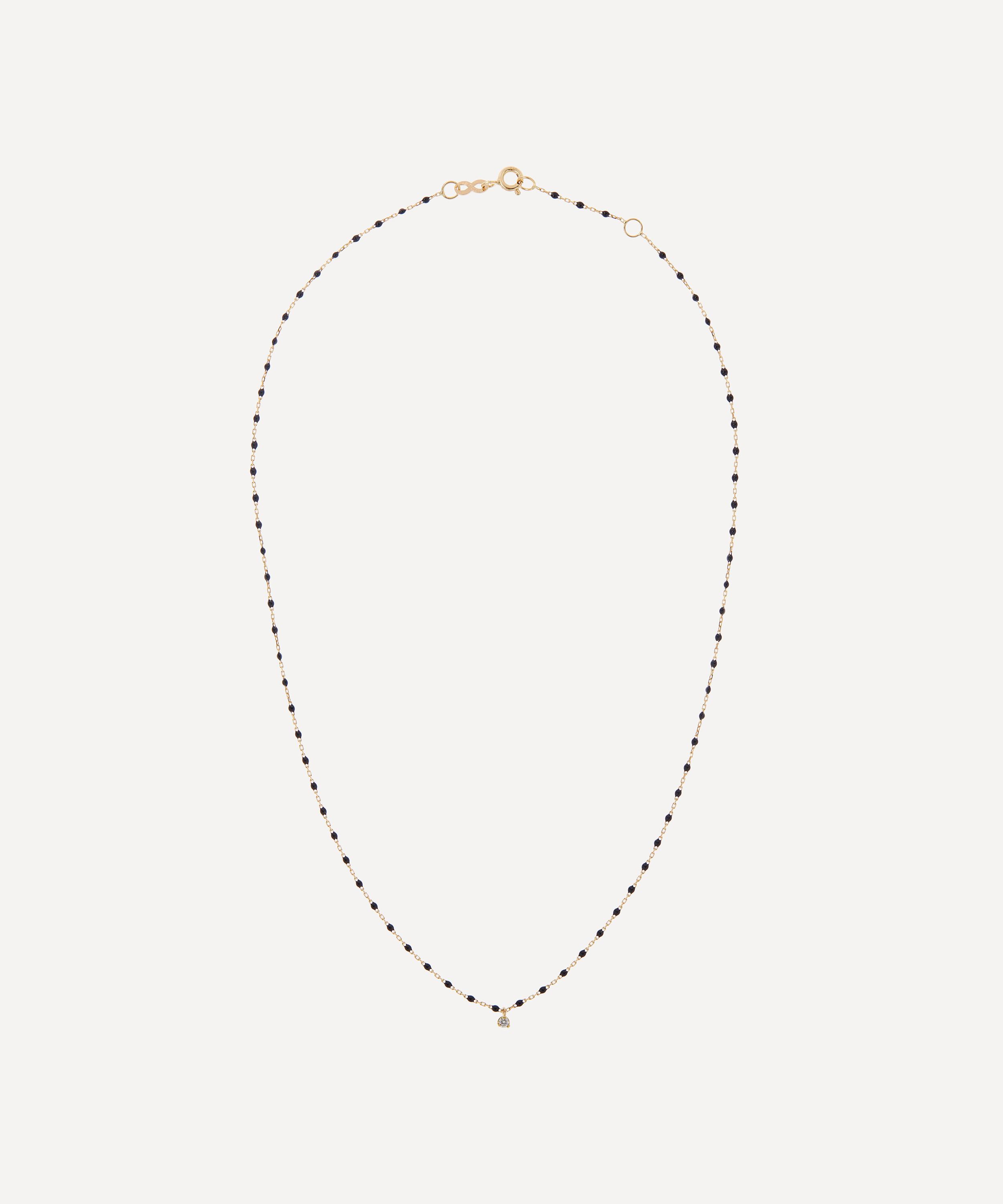 Exemplifying the brand’s signature style, this necklace is crafted from 18ct gold, featuring a classic link chain adorned with mini black resin beads and a small diamond accent – inspired by the bracelet Gigi was given at birth by her father. Available in a range of different shades, try layering multiple necklaces from the brand for a trend-led, yet beautifully simple edit.