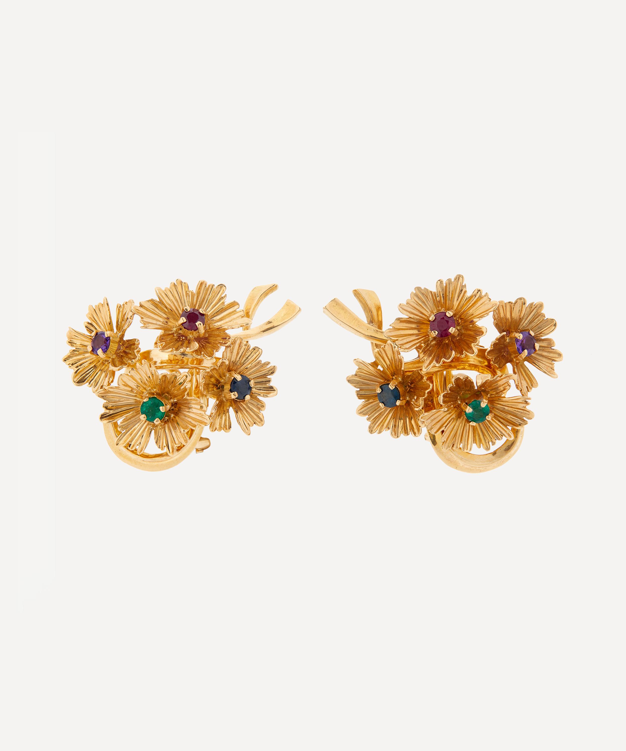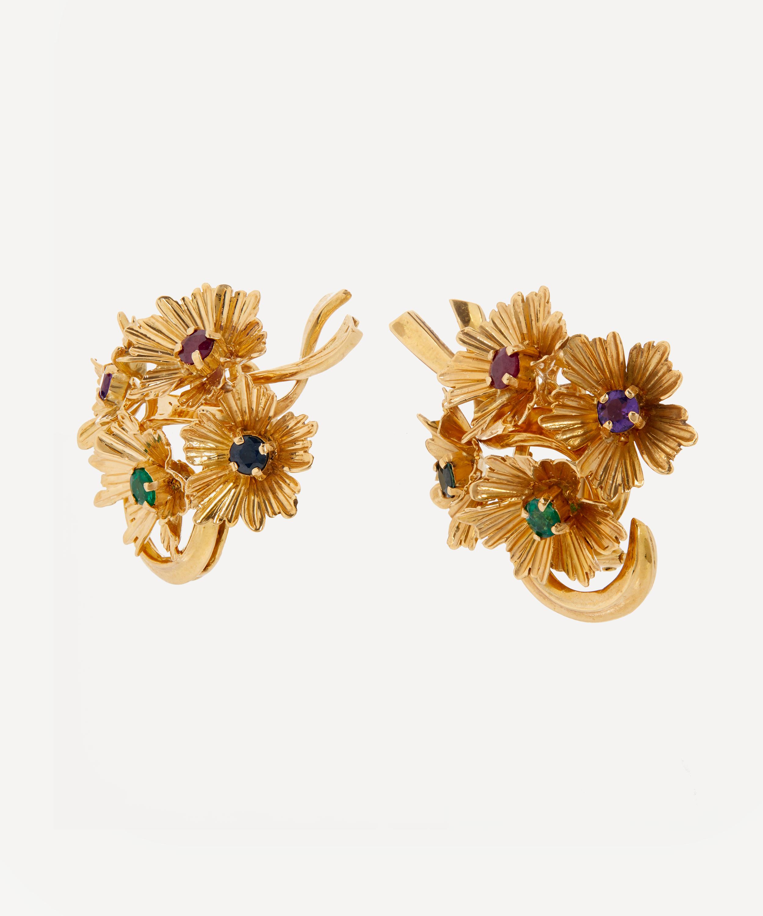 18ct Gold Multi-Gem Bouquet Stud Earrings